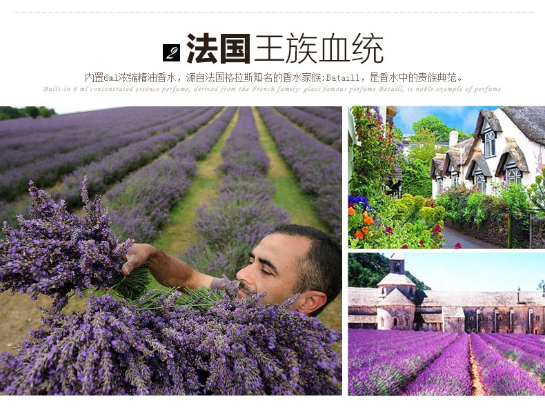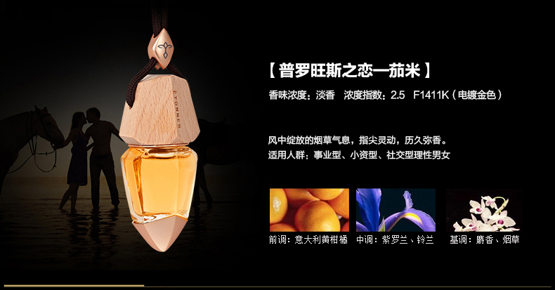 普罗旺斯之恋造型灵感源自普罗旺斯骑士,瓶身晶莹剔透,犹如身着铠甲的勇士,英俊潇洒,充满阳刚之气 设计:法国设计师曾获红点设计大奖设计师设计 香料:法国格拉斯PE集团直供优质香料 6种可选香型: 古龙、海洋、真我、 绿茶、茄米、一生之水 一瓶精油6ml,大约可用1.5-2个月