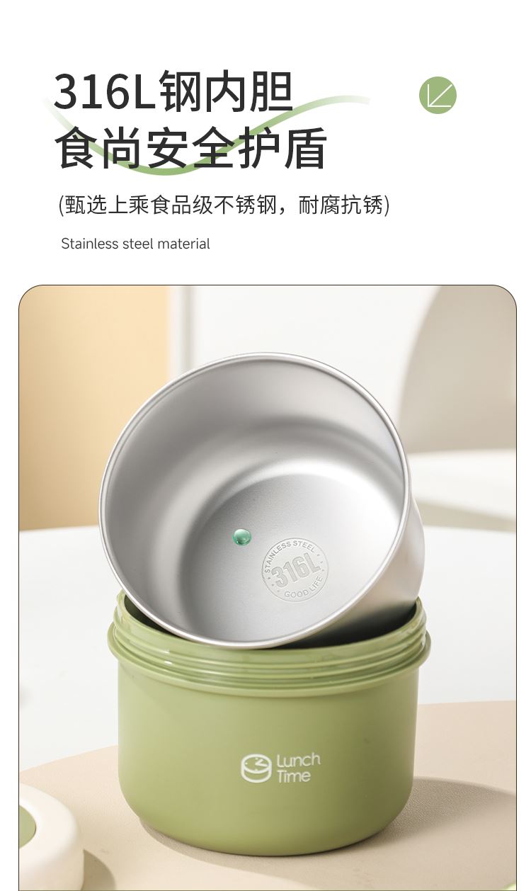 产品容量:四层2600ML 产品材质:316L不锈钢 装 箱 数:四层12套 医用316L不锈钢内碗,健康安心每一餐; 一格一味,自由搭配,营养分隔不串味; 内外层分离设计,端拿防烫,保温效果更佳; 硅胶密封圈双重保护,有效防止汤水撒漏,搭配保温袋,户外露营/学生/上班族外出带餐更方便;
