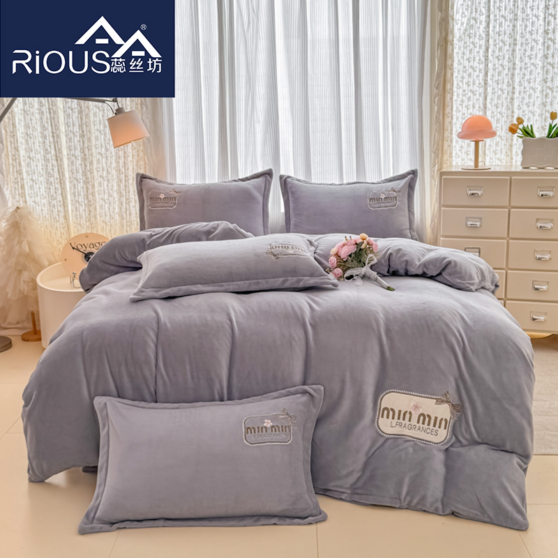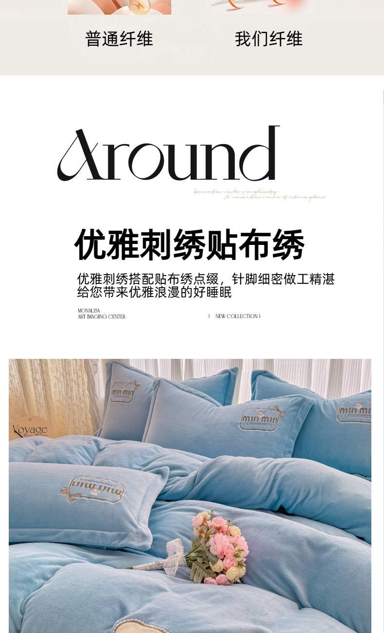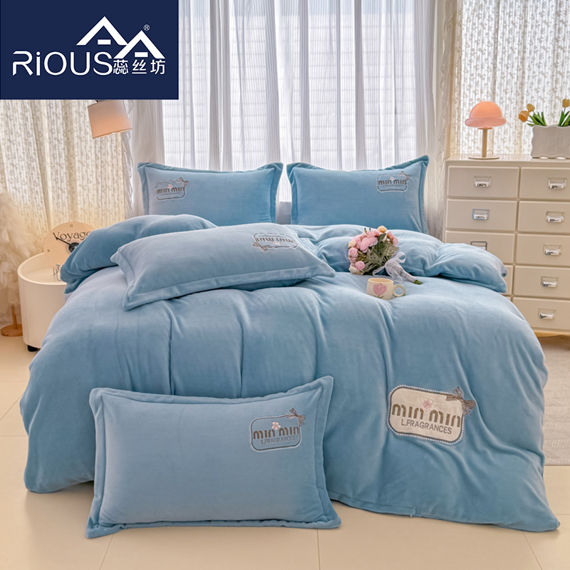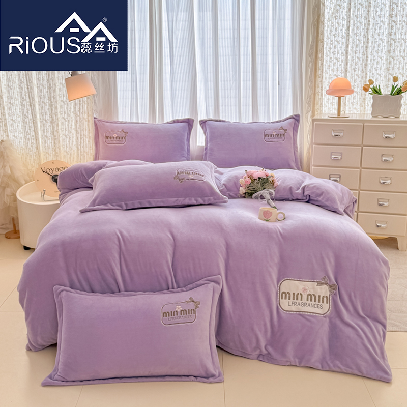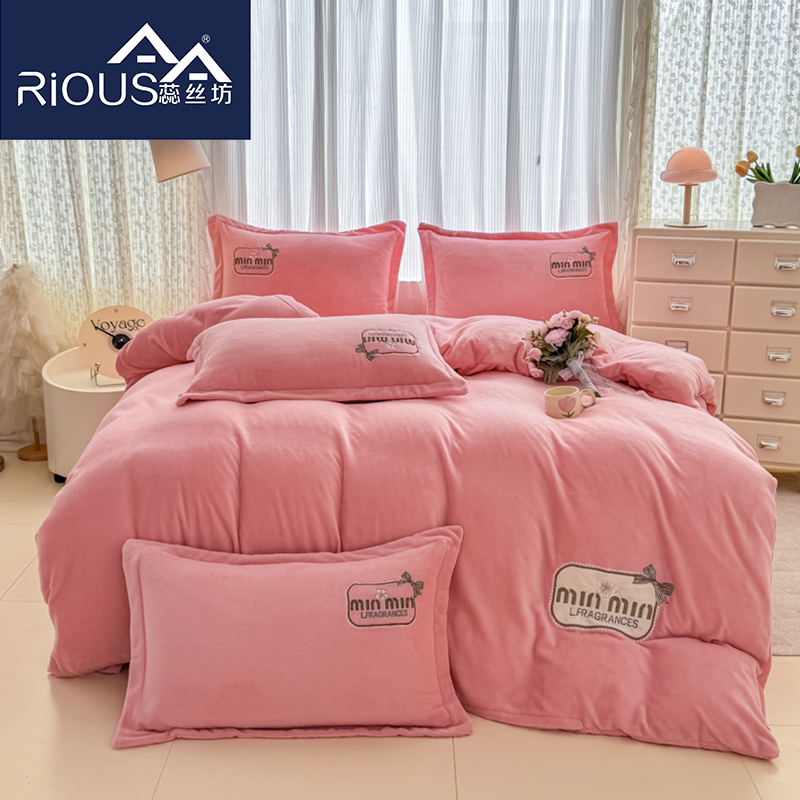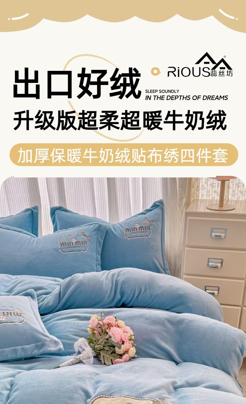 蕊丝坊家纺心动牛奶绒贴布绣花四件套