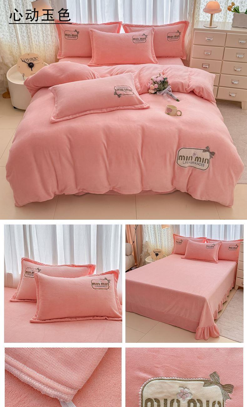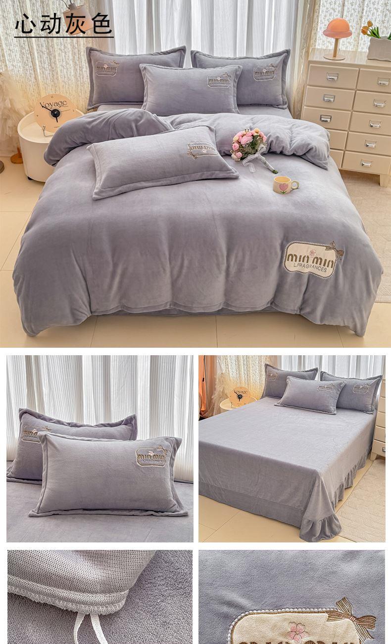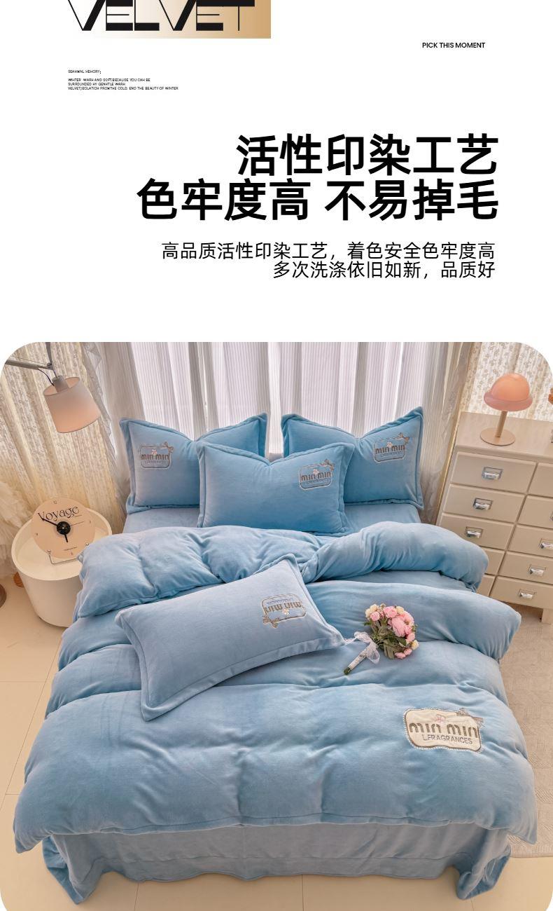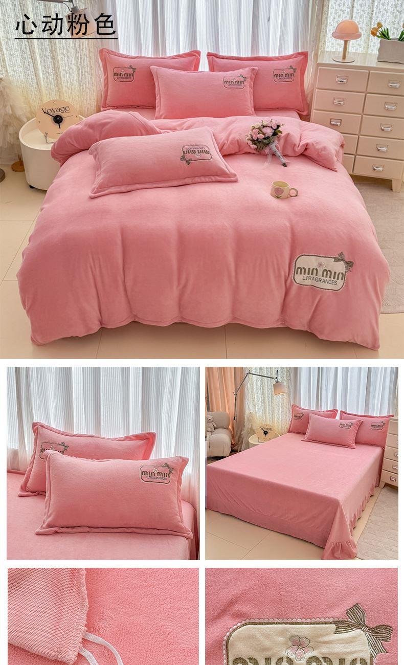 蕊丝坊家纺心动牛奶绒贴布绣花四件套