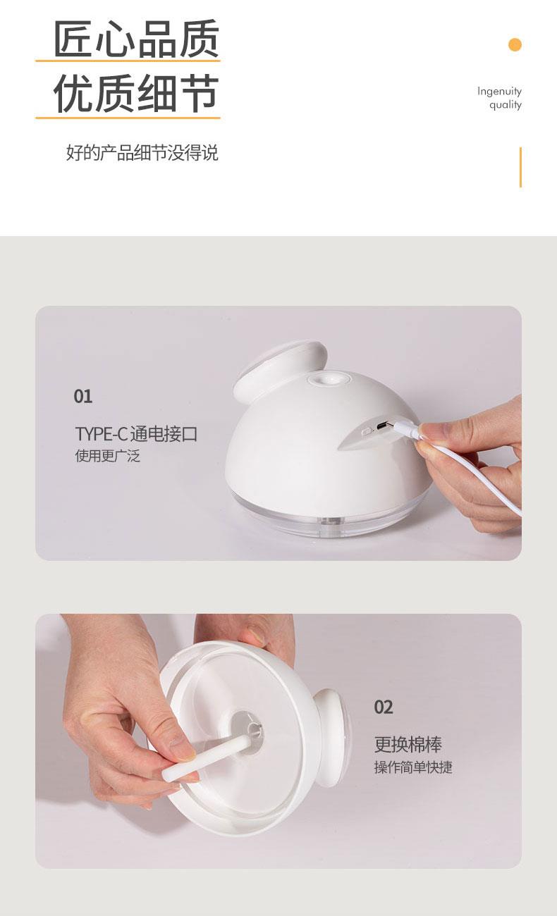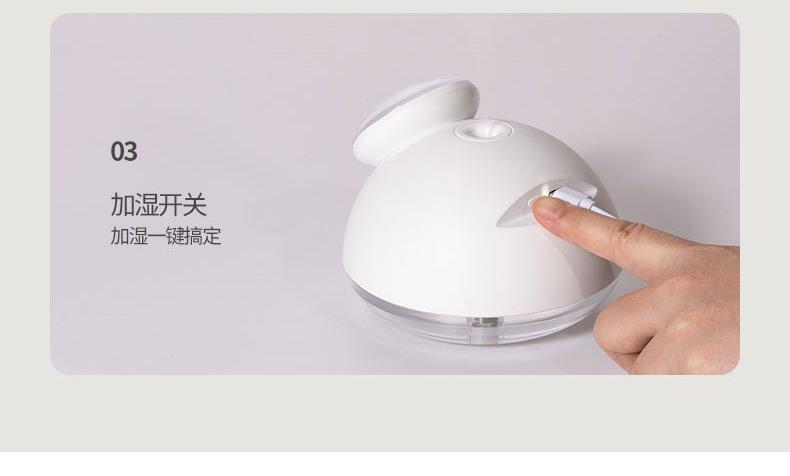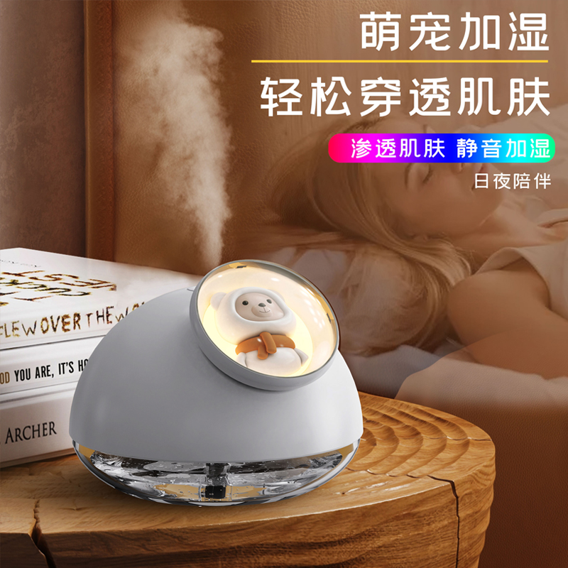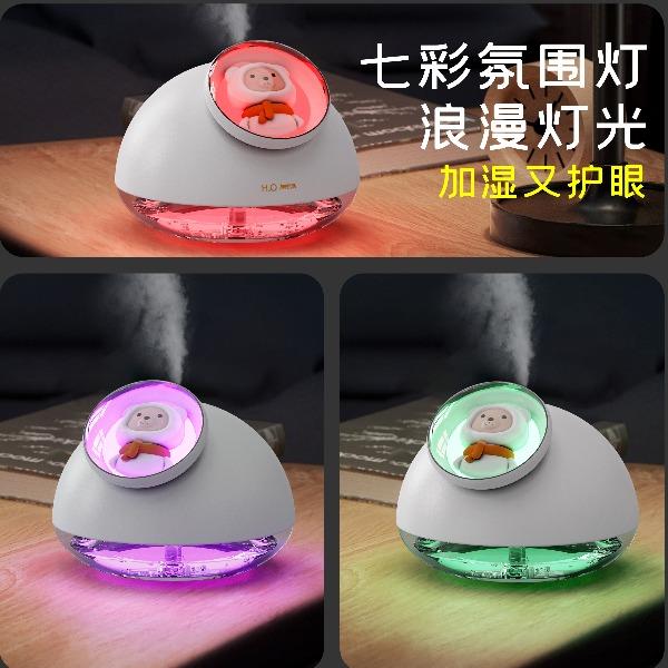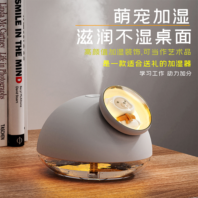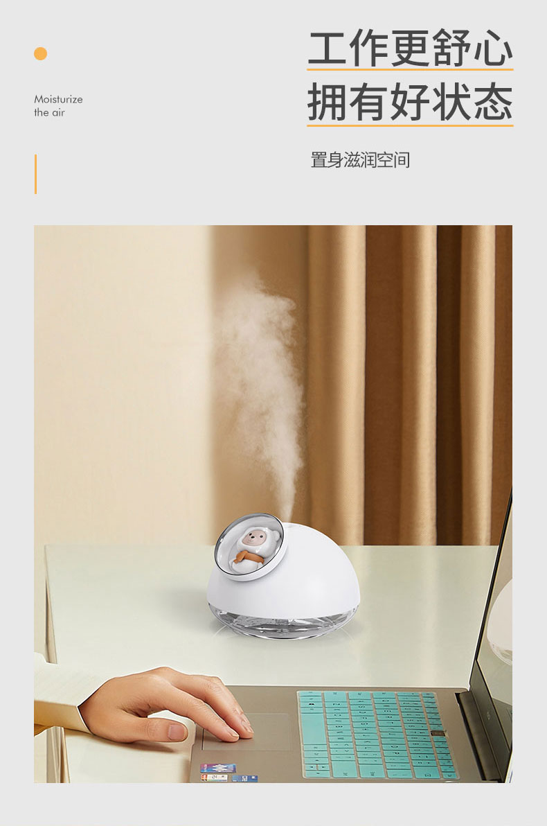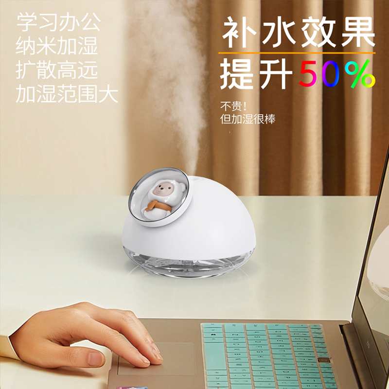 笨笨熊A 桌面喷雾加湿器 颜色:象牙白 材质:ABS 尺寸:119*125*94mm 容量:160mL 包装:彩盒包装 【功能特点】: 笨笨熊可爱萌宠可添加香精 低噪风机润物细无声 持续/间歇 双模式 柔光温馨小夜灯 160mL容量加湿
