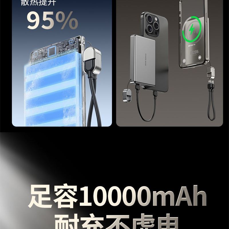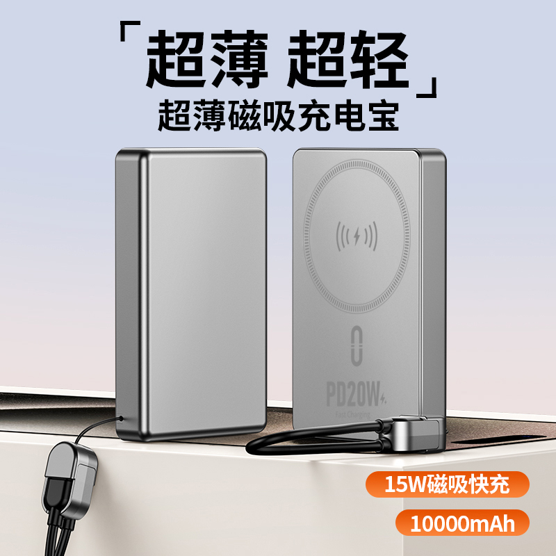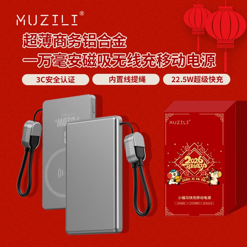 MUZILI·小福马超薄商务铝合金磁吸自带线移动电源