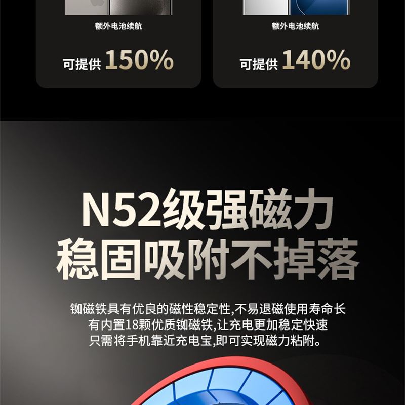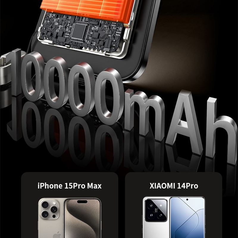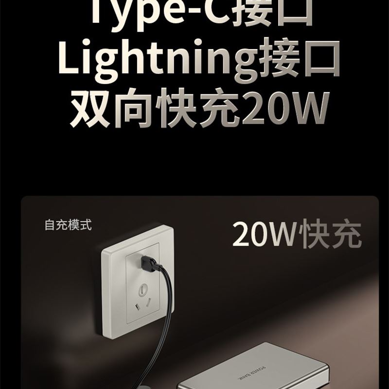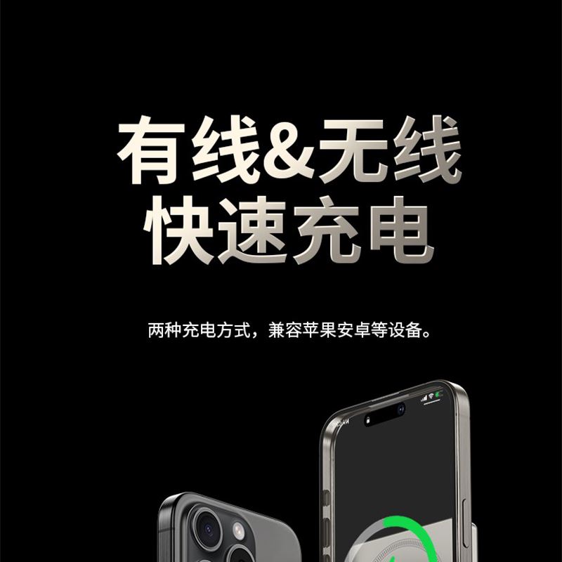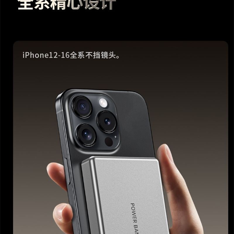 10000毫安22.5W双向超级快充 15W超强磁吸无线充电 铝合金超薄机身 自带双向快充数据线 符合民航局标准,可随身携带 颜色:枪灰色 材质:铝合金 容量:10000毫安 尺寸:103*65*15mm(10000毫安)