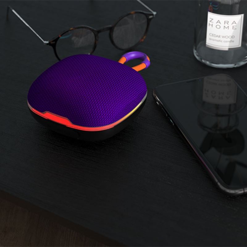布衣户外便携蓝牙音响 颜色:蓝色 迷彩色 黑色 红色 紫色 材质:ABS+布艺 尺寸:92*92*45mm 包装:彩盒包装 【功能特点】: 跑马灯多彩颜色音质一级棒 蓝牙连接/插卡播放 5.3蓝牙芯片连接稳定 户外手提特别便携