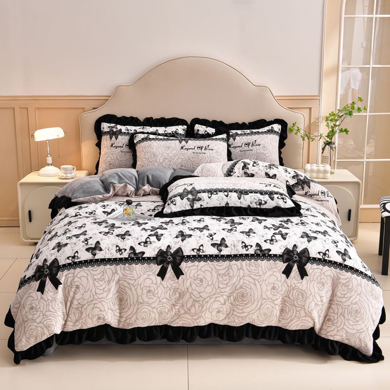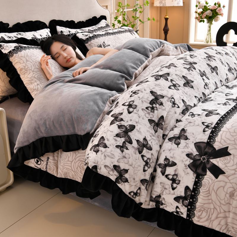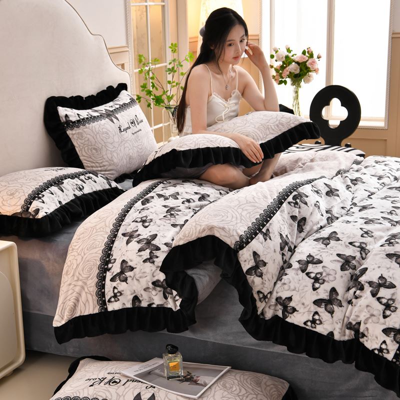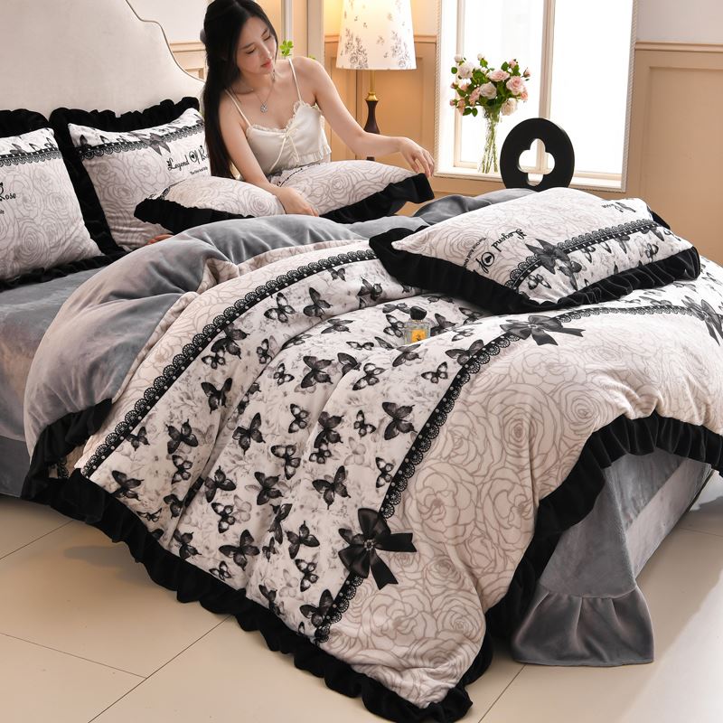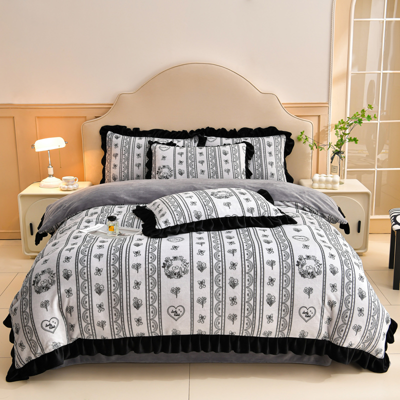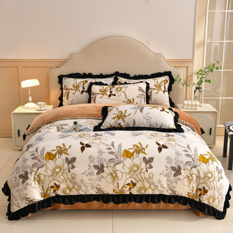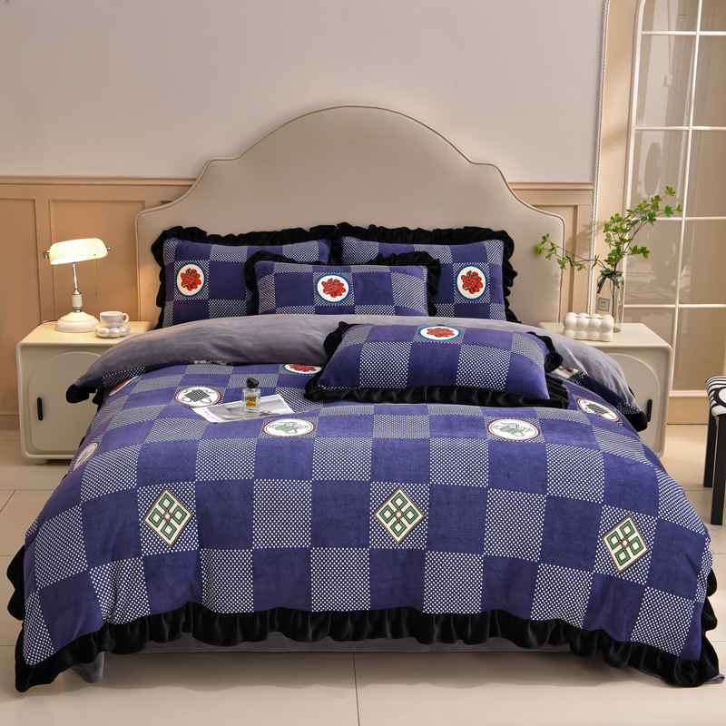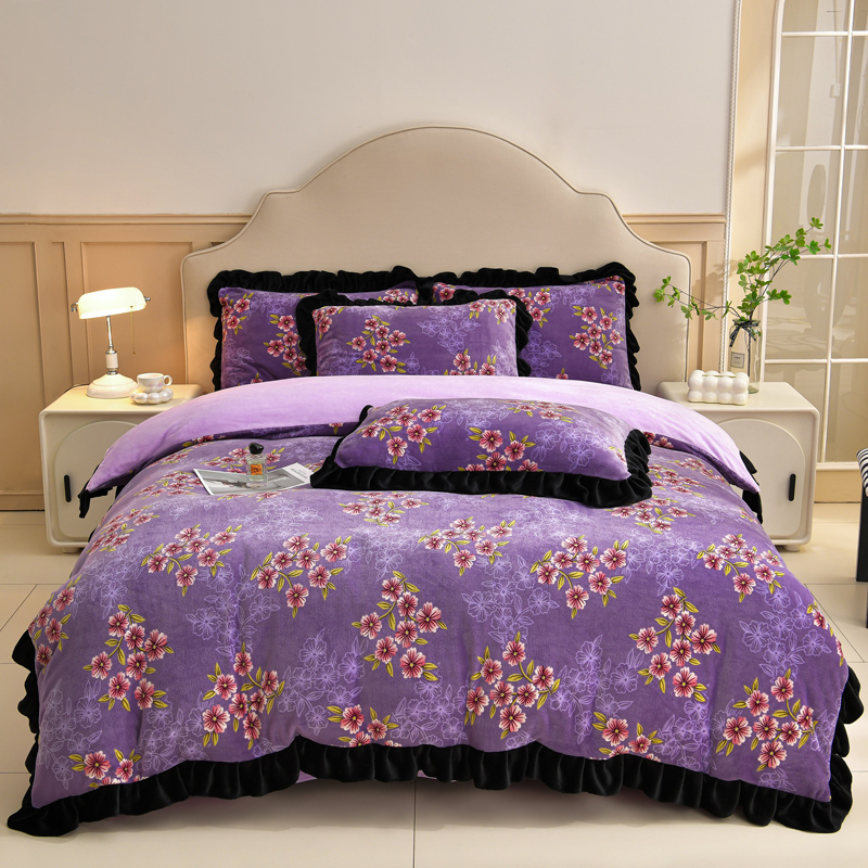 花花公子-家纺-韩版牛奶绒花边款秋冬保暖绒四件套