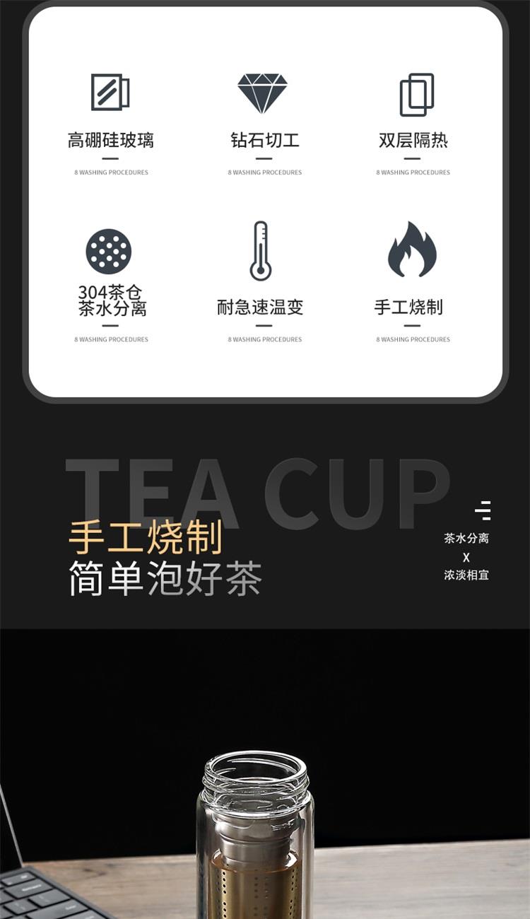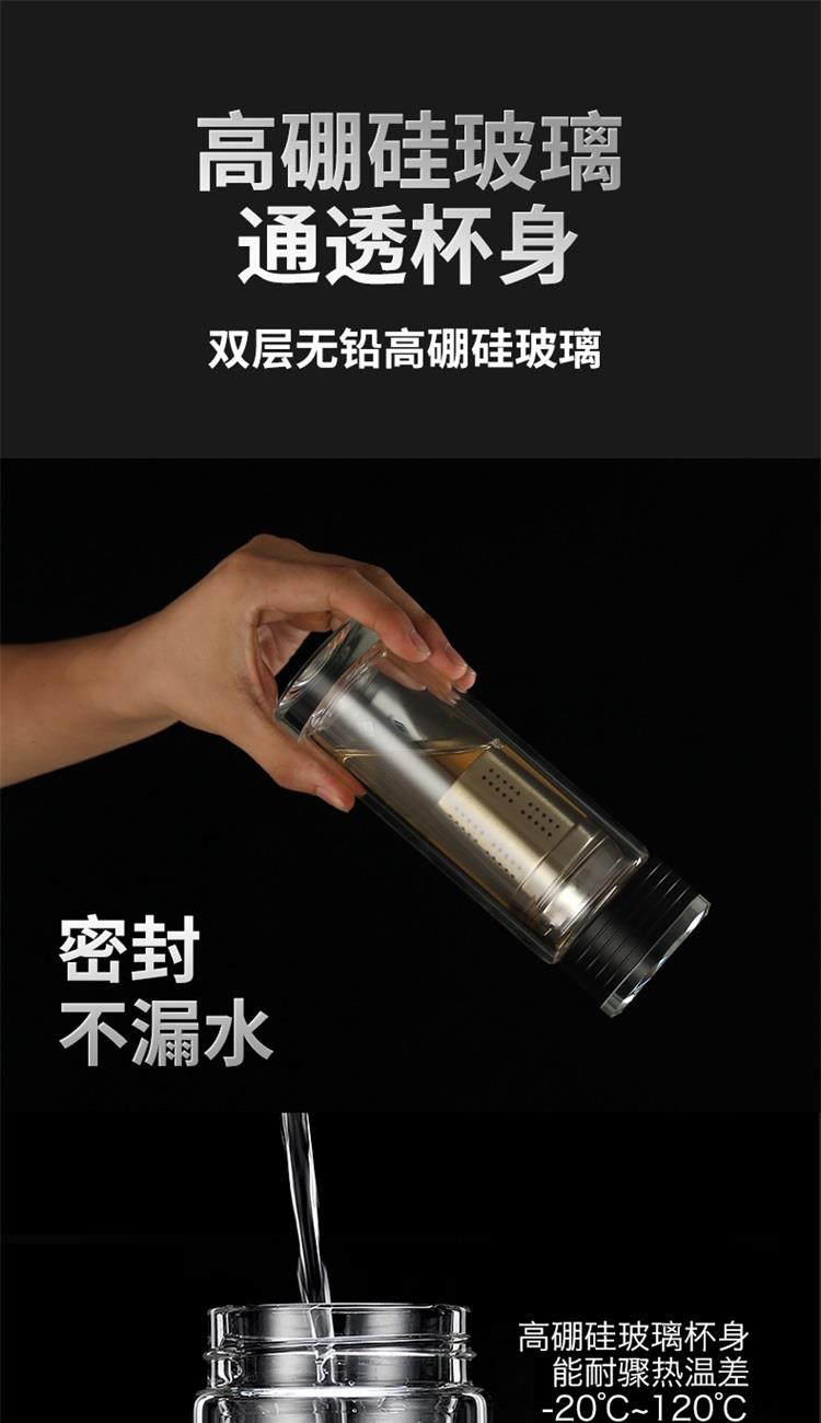 容量:280ml材质:杯体--高硼硅玻璃 、杯盖--PP密封圈--硅胶树脂、滤网-304不锈钢 包装方式:礼盒+礼袋包装 优势:高品质,低价位,样品支持,前端服务体系完善,售后无忧