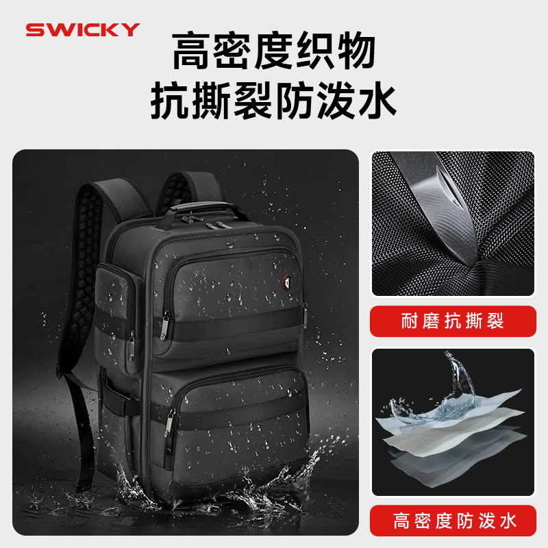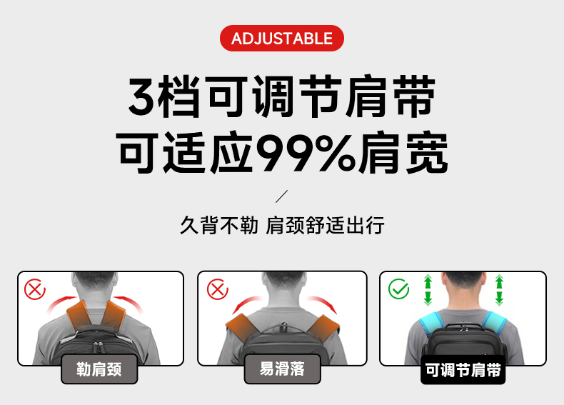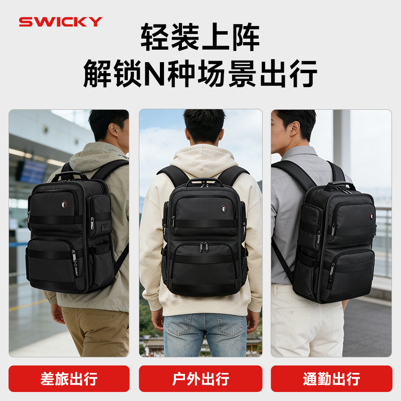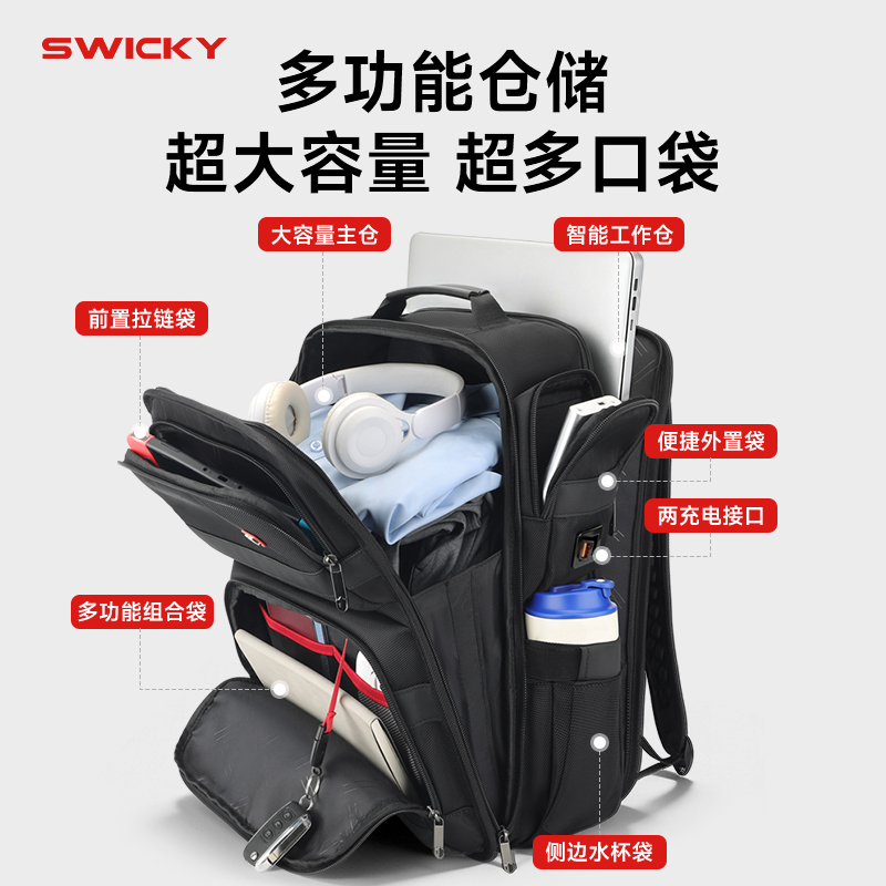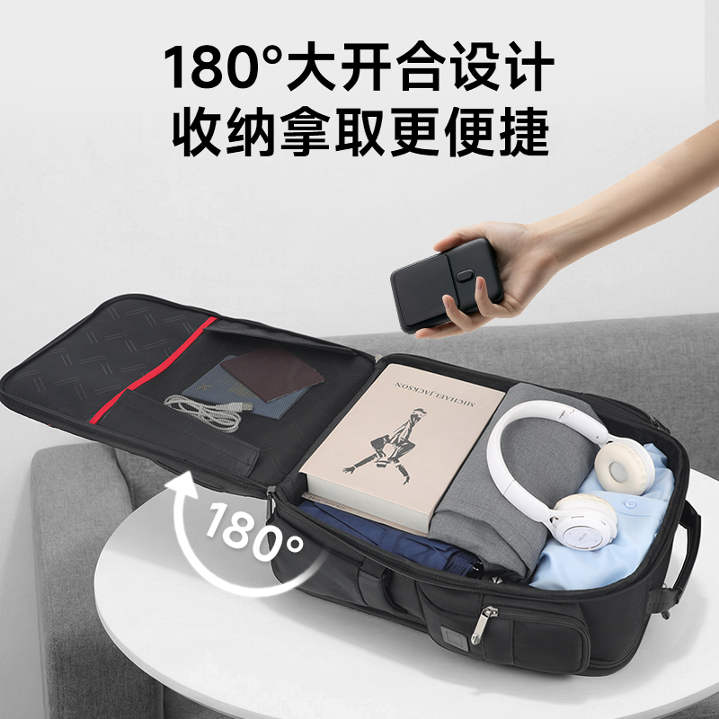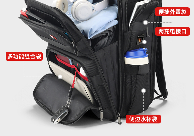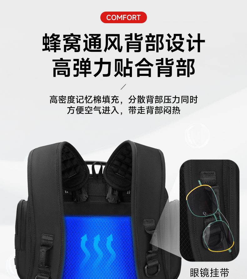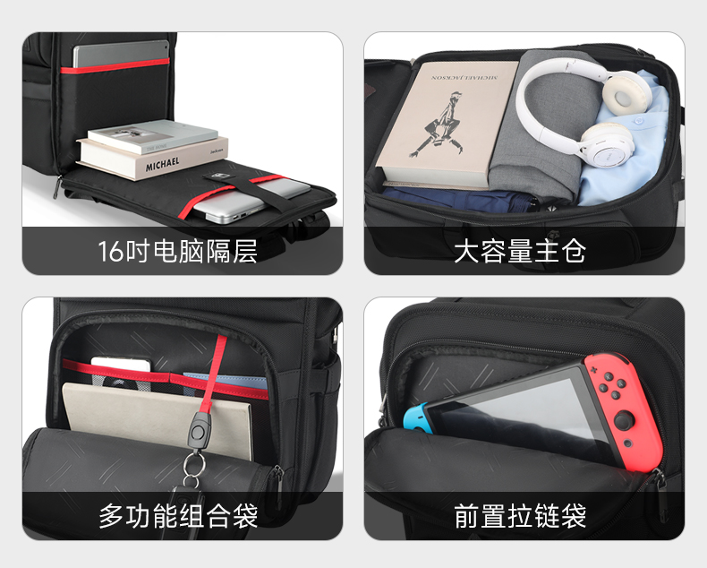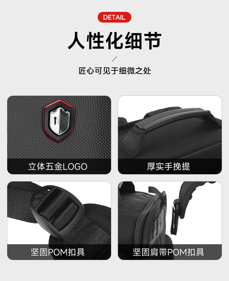 型号:82528 尺寸: 长35*宽23*高45cm 重量:1.2KG 材质: 涤纶(聚酯纤维) 颜色:黑色/蓝色/灰色 1.大容量主仓,180度大开口设计,箱式开合.. 2.高密度复合面料,防波水,防刮耐磨,防尘设计! 3.独立电脑仓,可放16寸以内电脑. 4.弹力背板、透气、缓压、减震 5.反重力减压肩带-高弹按摩颗粒平均分散压力减负更轻松 6.双侧自伸缩水杯袋-容量杯仓秒速回弹包包有型更有料 前幅拉链袋