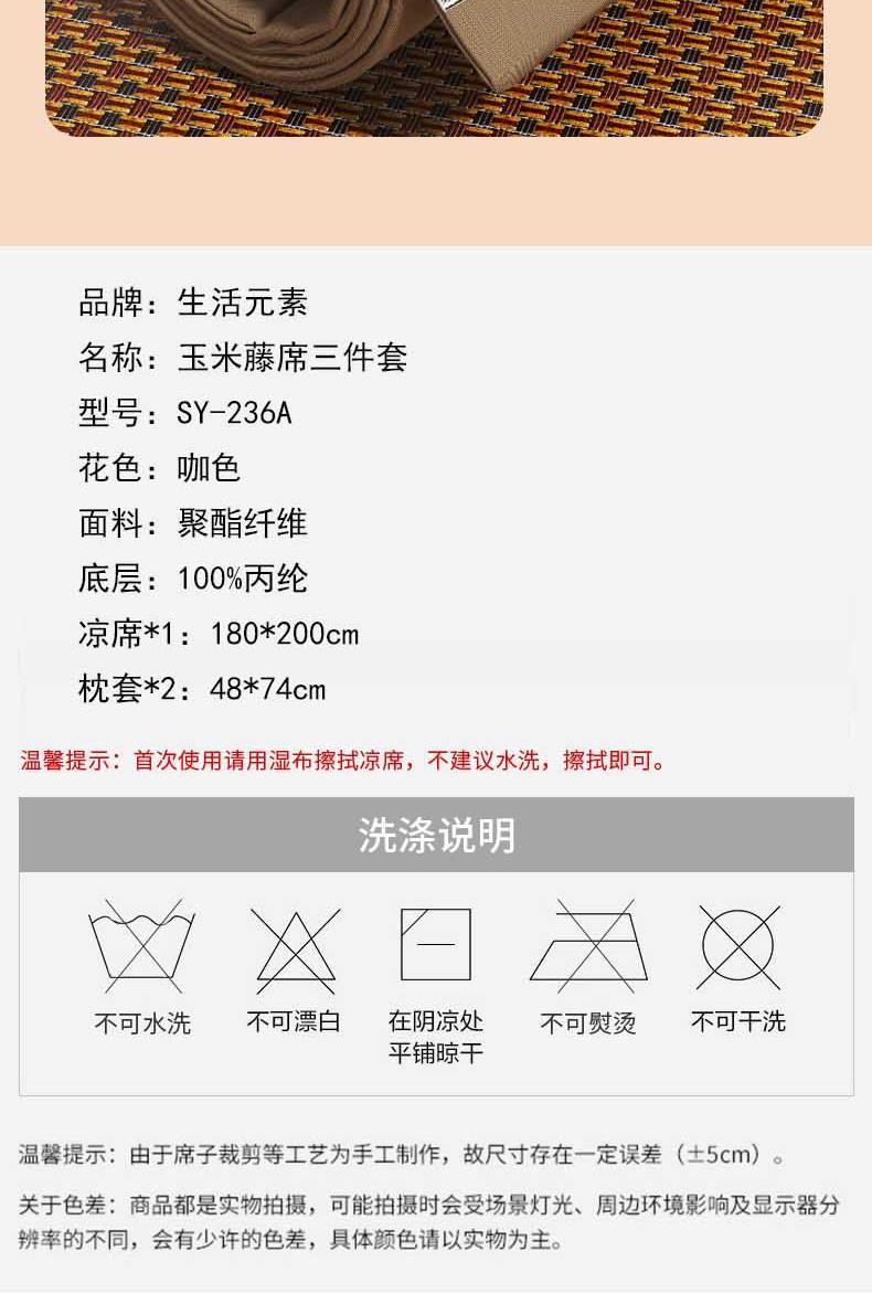 生活元素咖色玉米藤席三件套(1.8M)SY-236A