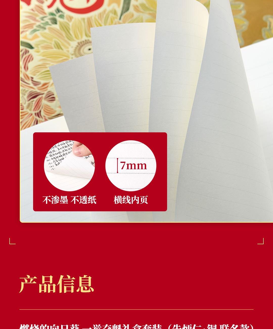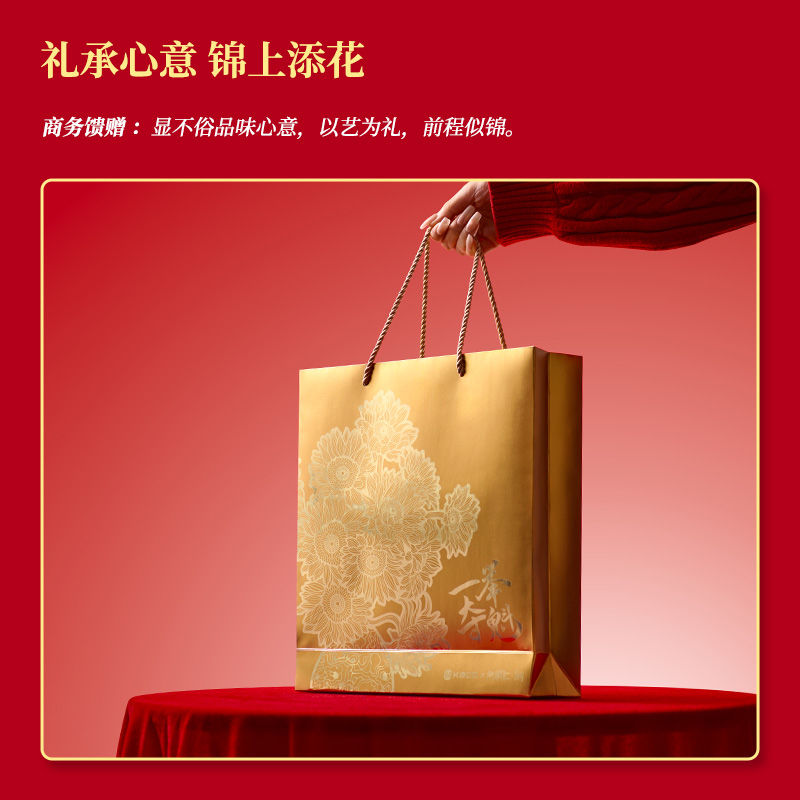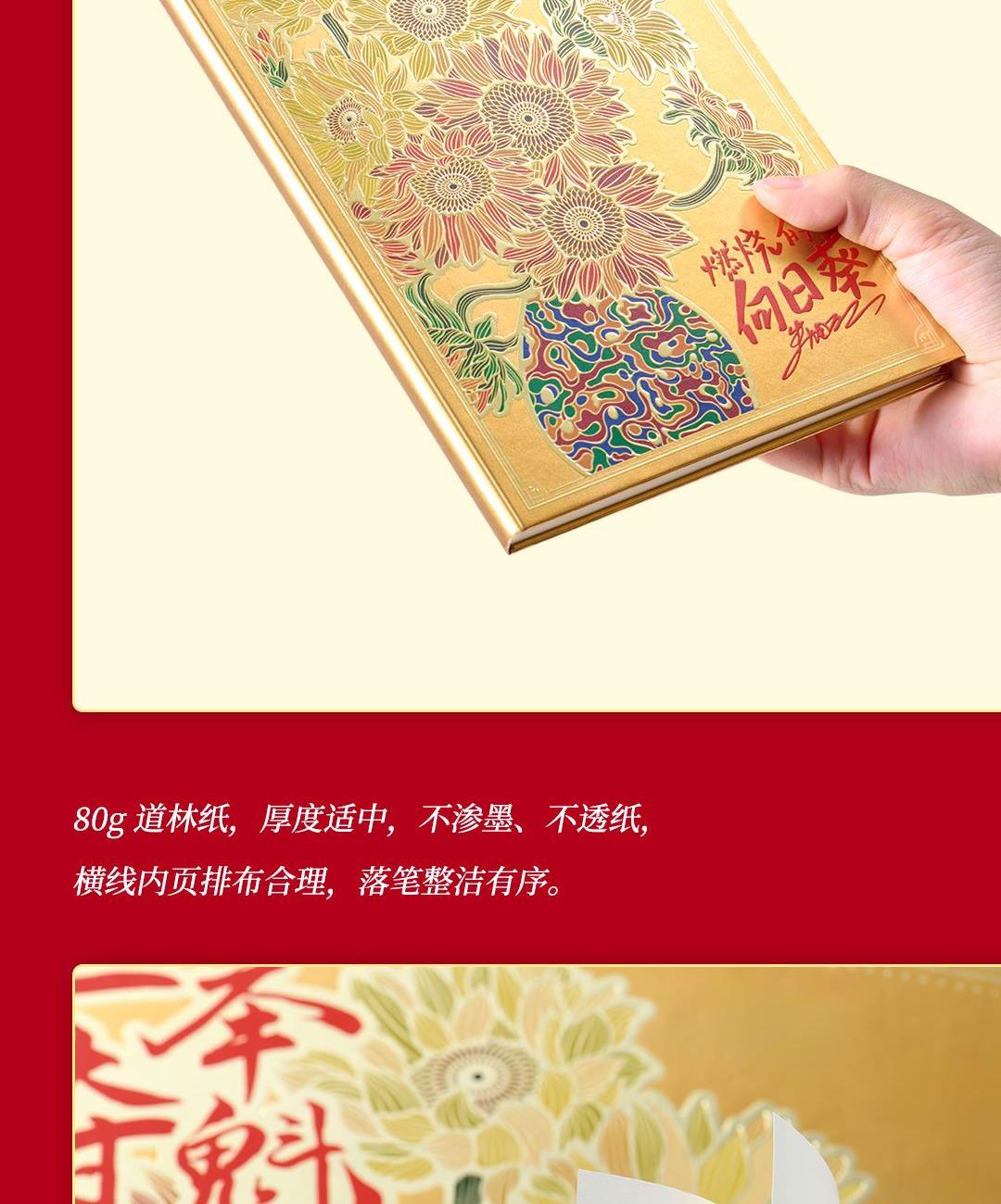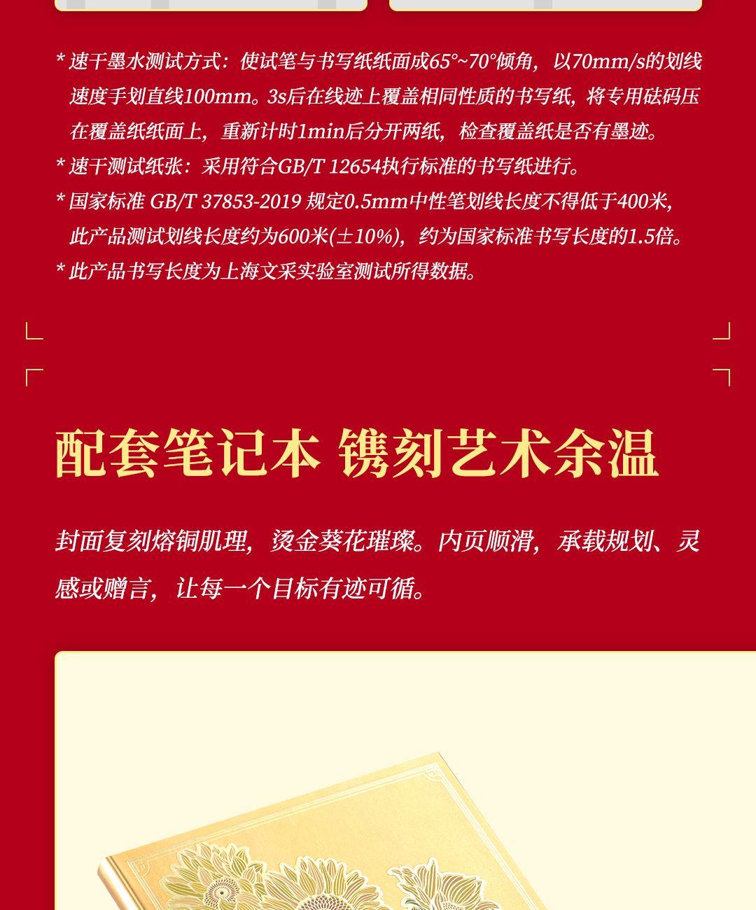 尺 寸:单套(含手提袋,约860g) 材 质:铜(笔杆、书签、出芯向日葵),纸卡·(笔记本封面),80g道林纸(内页) 外观颜色:金色 1、将《燃烧的向日葵》的艺术精髓与视觉意象,融入书写艺术。 2、内置礼盒,外附雅袋,节日送礼、商务馈赠的精致之选。 金葵书签*1,纯铜镂刻,勾勒向阳姿态。 3、FIRST 初心 签字笔*1,寓意金葵盛放 向阳而生而生。 4、配套笔记本*1,封面复刻熔铜肌理,烫金葵花璀璨。 包装方式:礼盒配一个手提袋