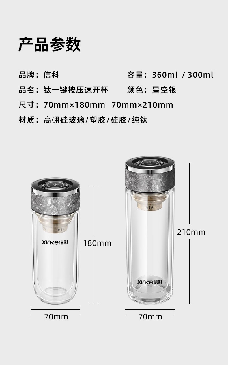 单个尺寸:7*7*21cm 外装尺寸:8*16*25.6cm 产品容量:360ml 净重:620g 颜色:银色
