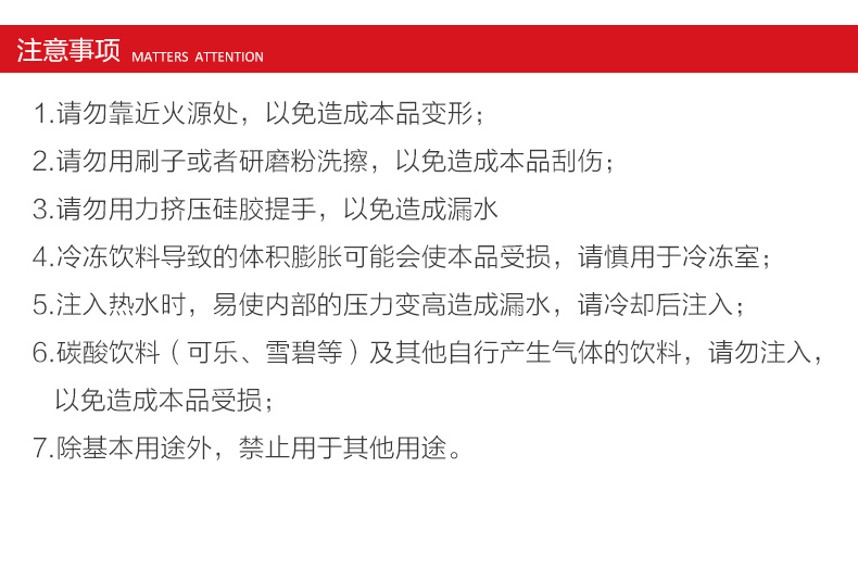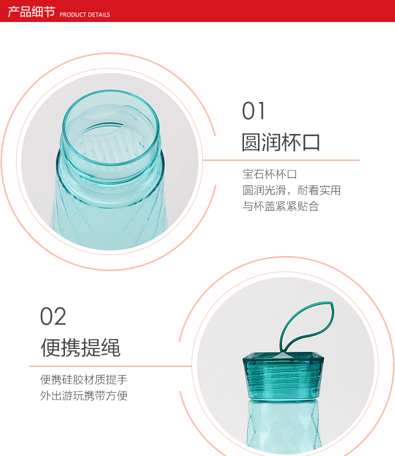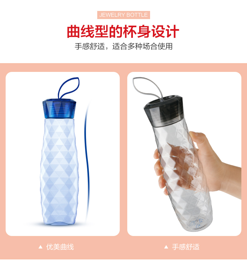 材质:瓶体-PC 毫升:550ml 产品颜色:红色 健康PC材质 宝石杯杯身采用了放心的PC材质,健康安心。 曲线杯身设计,手感舒适,适合多种场合使用。 可以拆卸食品用硅胶密封圈,采用的是硅胶成分,可以拆卸下来,方便清洗。 三款颜色多种选择