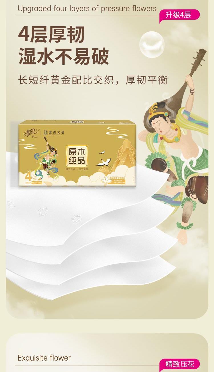 清风敦煌联名4层90抽/包*4包/提*6提抽取式面巾纸 清风敦煌联名4层90抽/包*4包/提*6提抽取式面巾纸