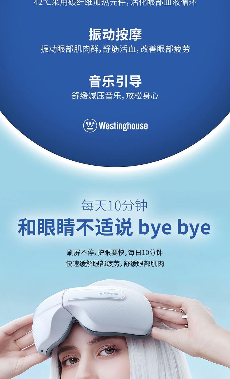 产品规格: 1、额定电压:3.7V 2、额定功率:4.5W 3、电池容量:800mAh 4、外壳材质:ABS 5、眼罩材质:PU皮 6、工作时长:10min 7、产品颜色:白色 产品特点: 1、可180°折叠,方便携带; 2、激光精雕碳纤维纹理工艺,凸显与众不同; 3、智能气压,疏通眼部神经系统,缓解疲劳; 4、42±3℃恒温热敷,活化眼部血液循环,缓解干涩; 5、内置舒缓减压音乐,按摩同时放松身心; 6、三档工作模式,多场合可用。