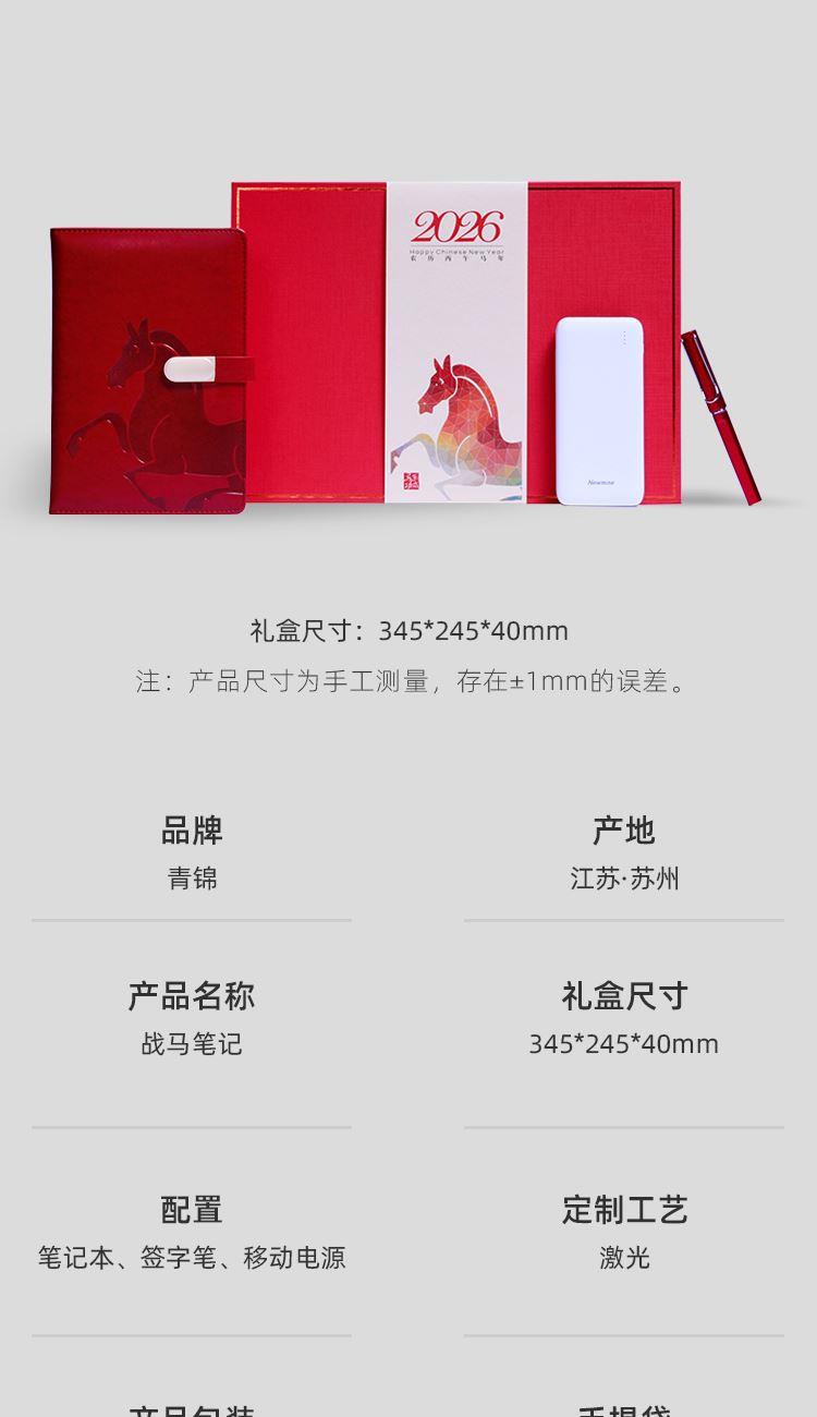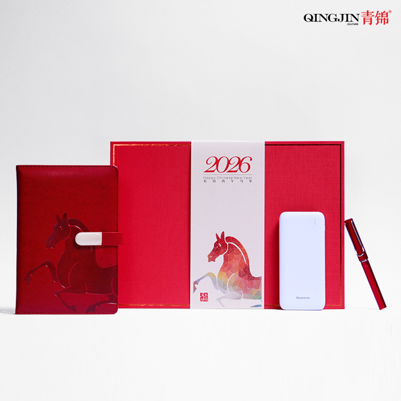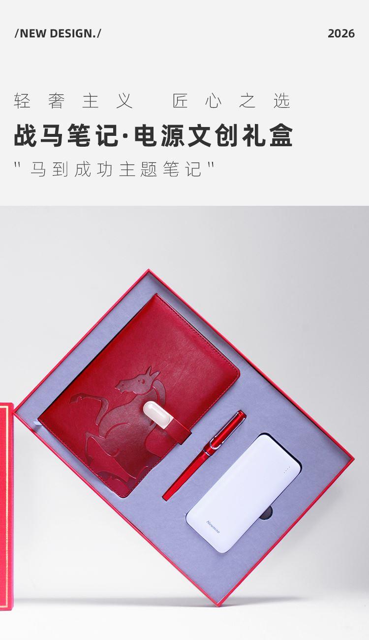 青锦2026【战马笔记】商务笔记本签字笔纽曼充电宝文创礼盒