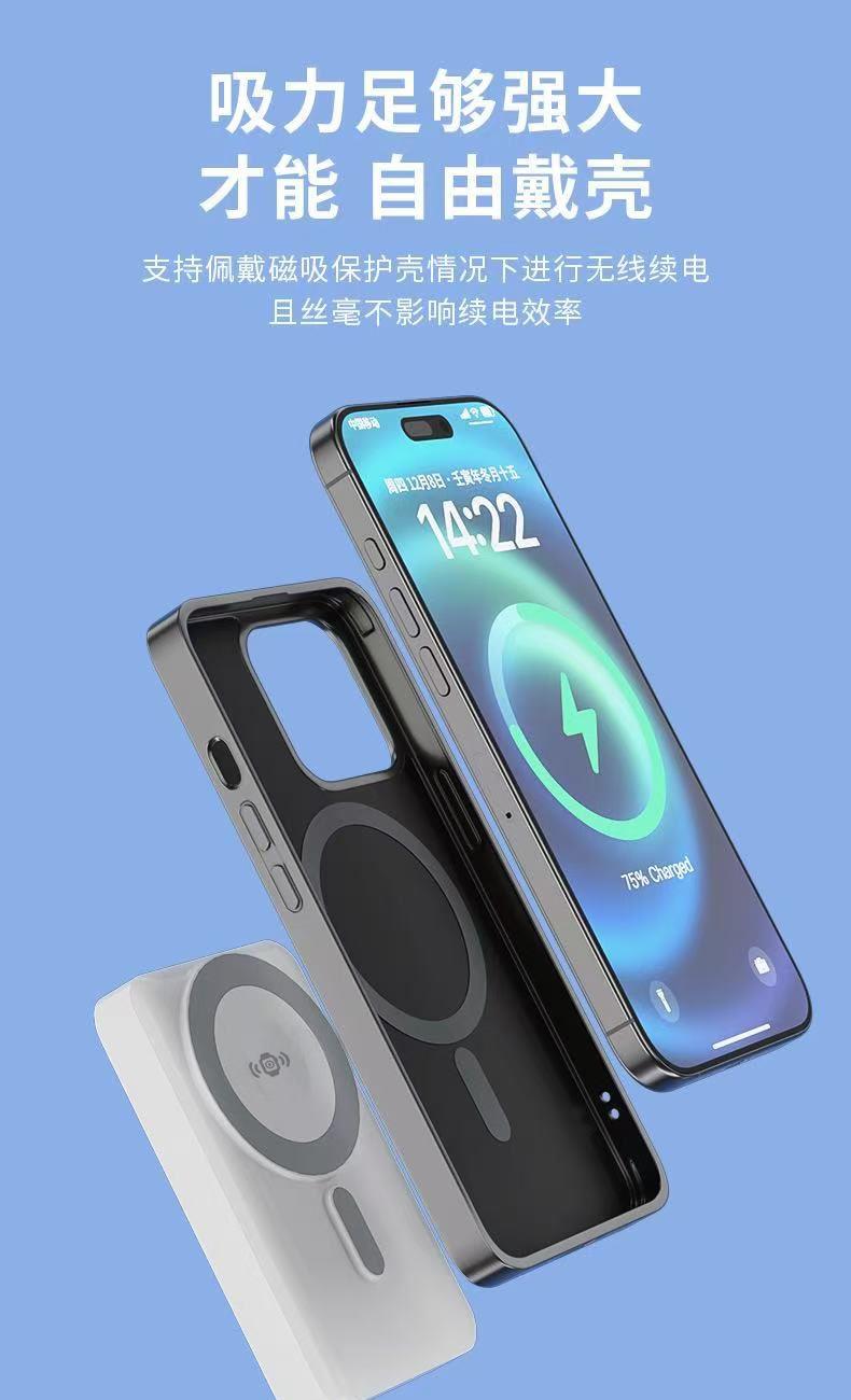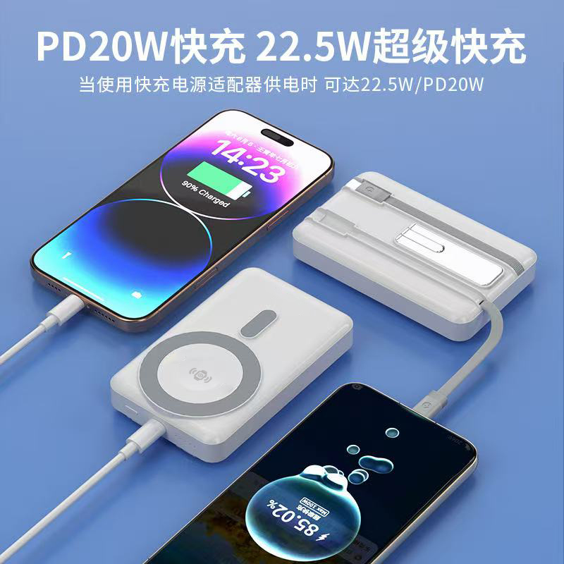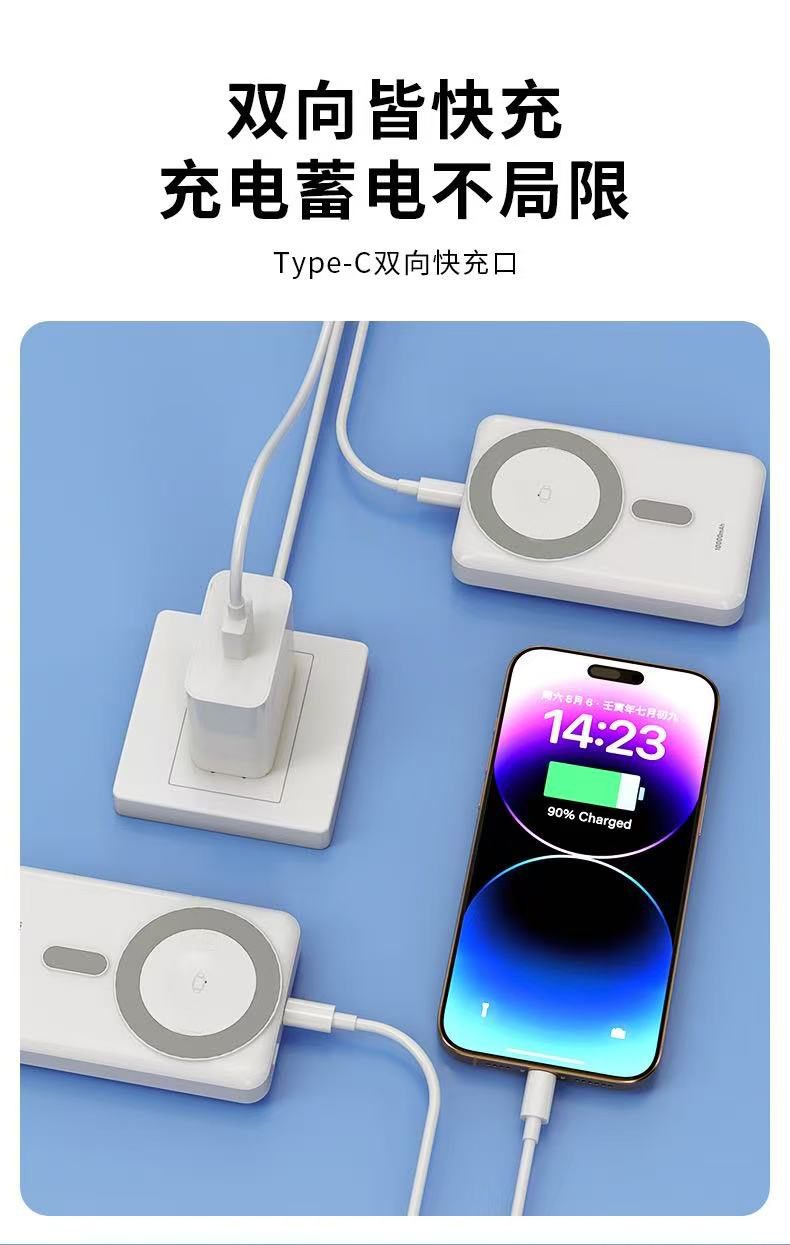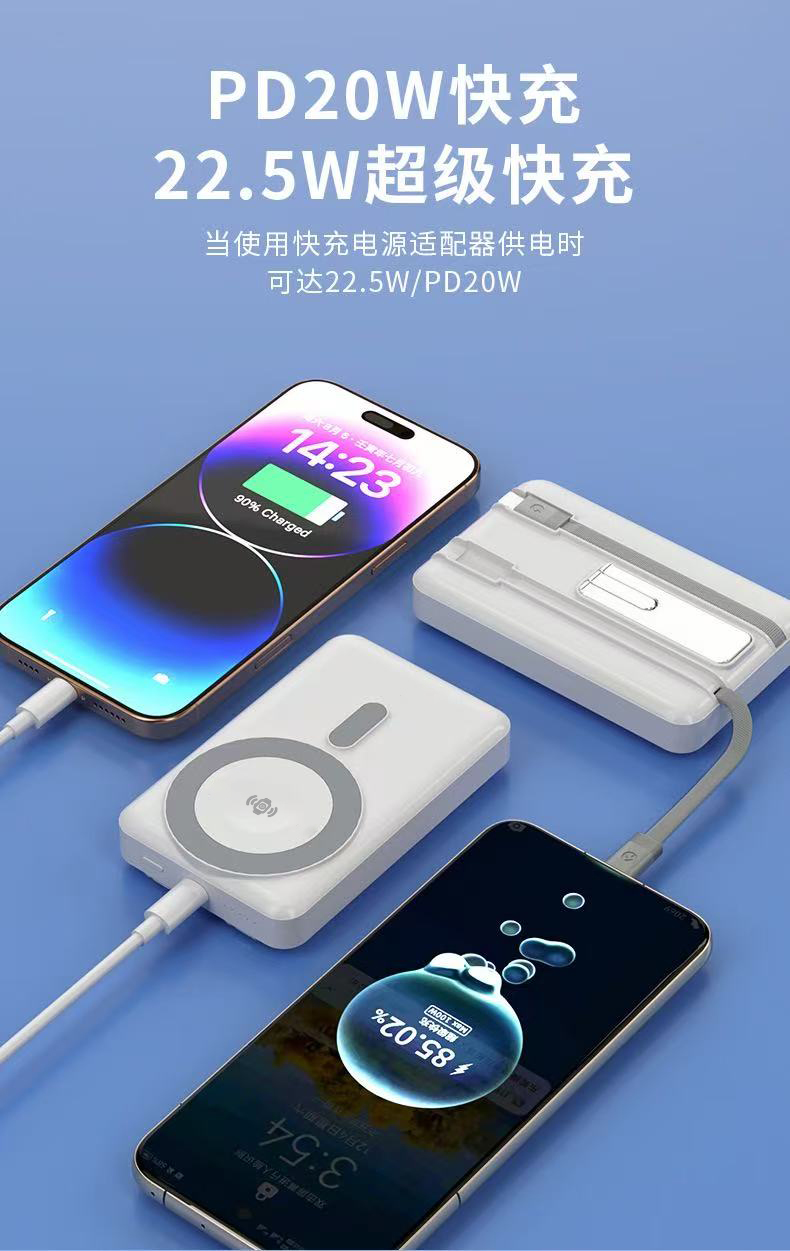 3C认证证书,聚合物电芯,超10000mAh, USB快充22.5W,磁吸无线快充15W, 苹果手表无线充功能, 自带Type-C线,Lightning线输出, 兼容市面上主流大部分机型,秒速过检,直接登机