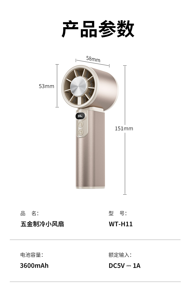 右心新款五金制冷手持风扇便携式小风扇H11
