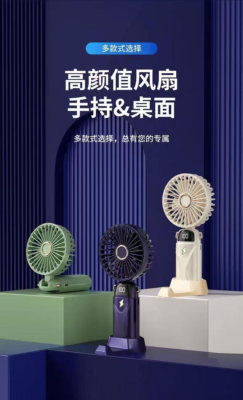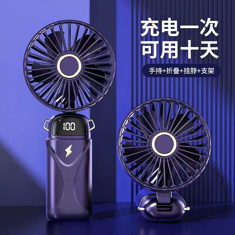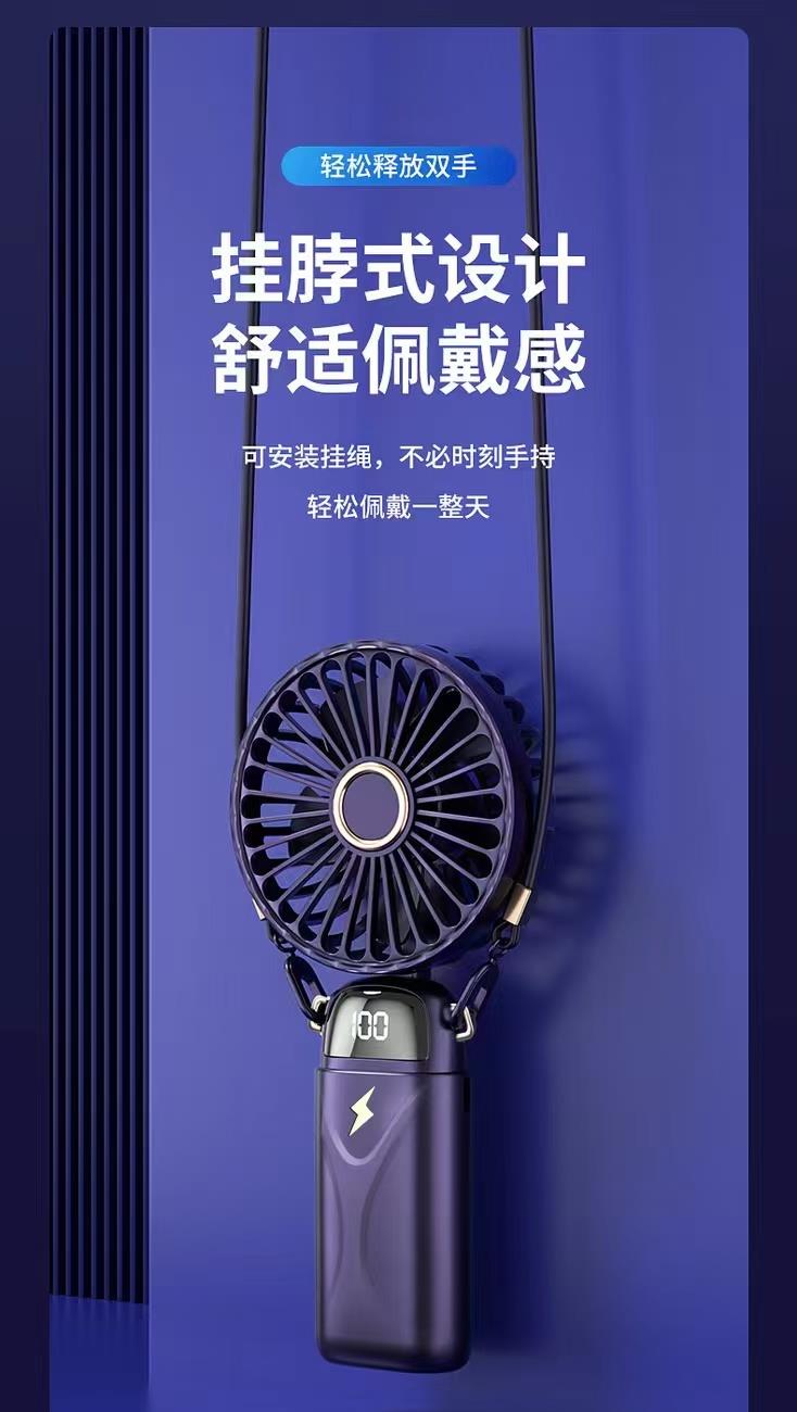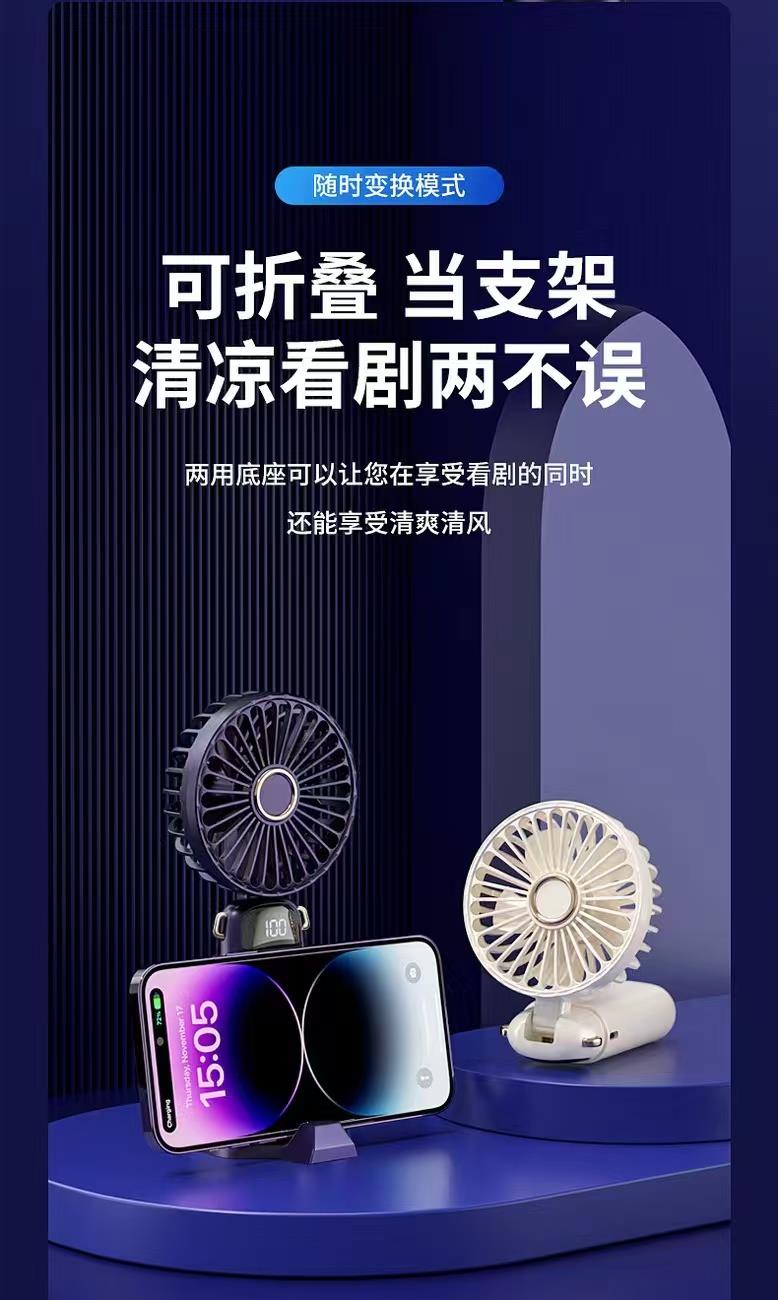 思薇科林多功能手持风扇数显折叠上桌面风扇挂脖风扇