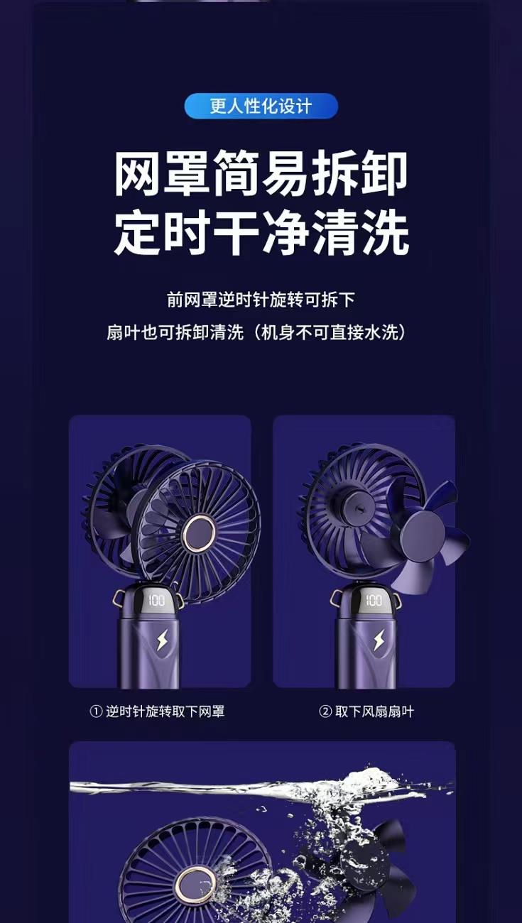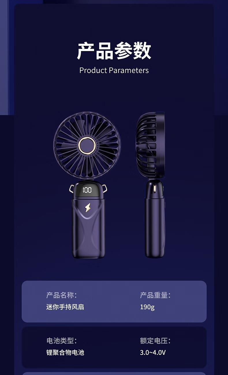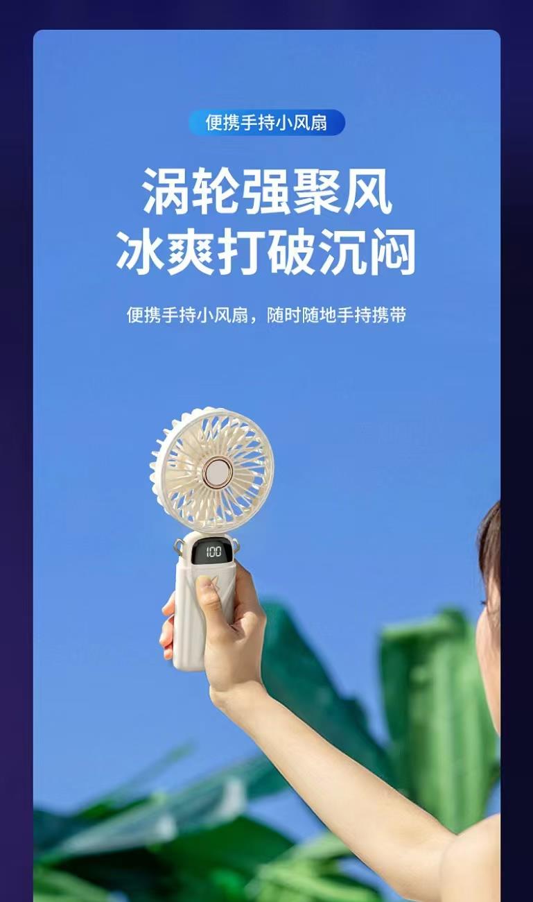 思薇科林多功能手持风扇数显折叠上桌面风扇挂脖风扇