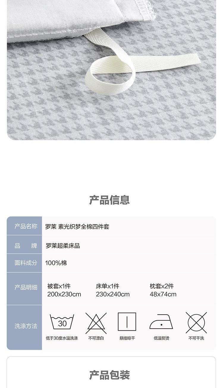 材质:棉 规格:1.5m 被套:200cm*230cm×1 床单:230cm*240cm×1 枕套:48cm*74cm×2