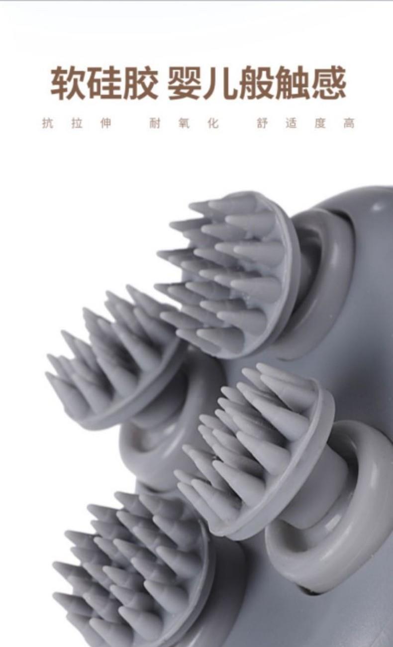 1、舒适仿真按摩;3D硅胶软按摩头,立体触摸头皮解压醒神,不伤头皮不缠头发