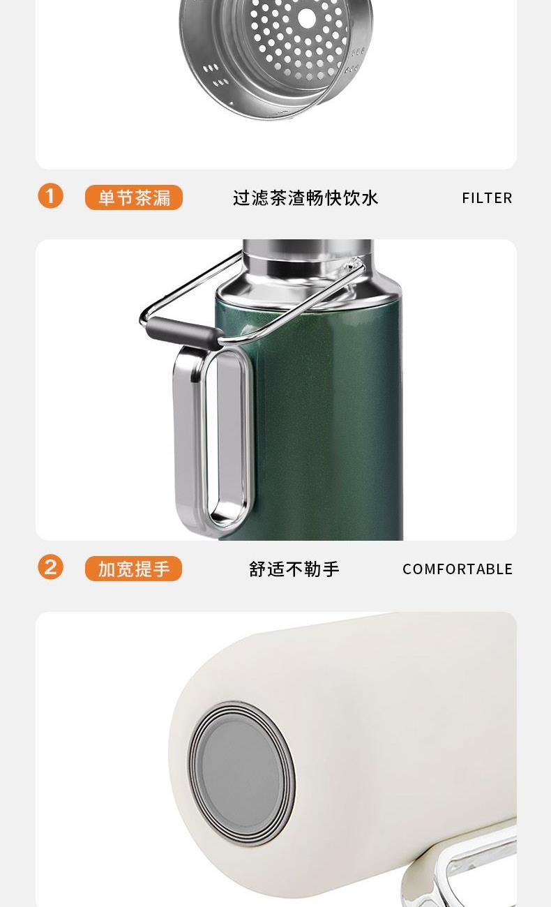材 质:316不锈钢、食品级pp 规 格:1000ml 颜 色:珍耀白/孔雀绿 装 箱 数:20pcs/箱 内胆材质采用316不锈钢,健康环保。 PP材质塑件,热工艺原理结构设计,食品级健康环保。 内壁表面采用电解研磨技术,不生锈不氧化,防止污垢产生,易清洗。 不锈钢盖设计,健康环保,清洗方便。 便携式提手设计,出行更方便,更轻松。 时尚外观设计,高贵大方,质感非凡。