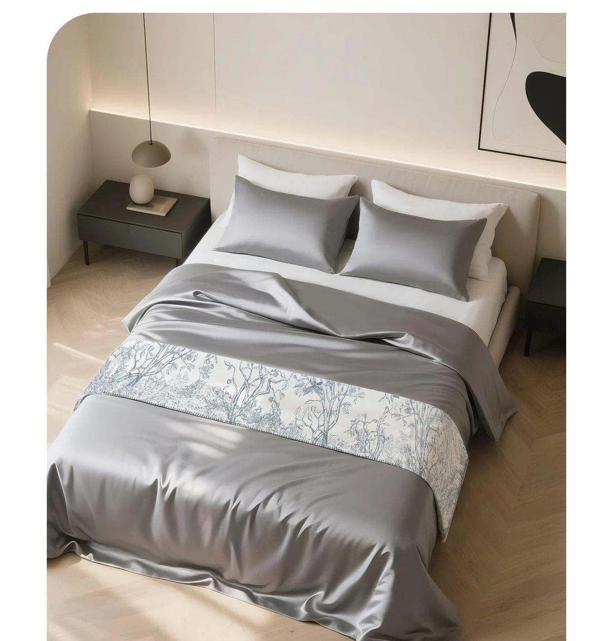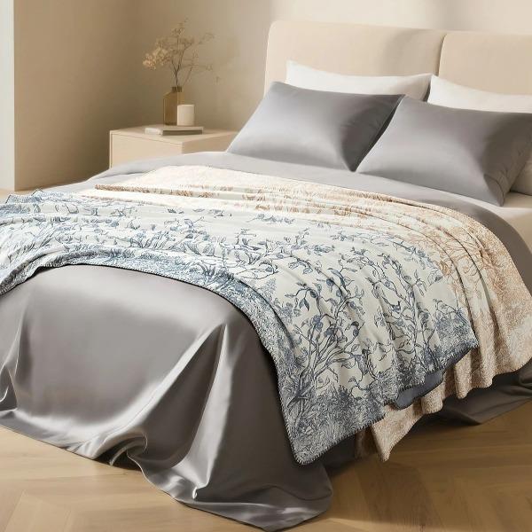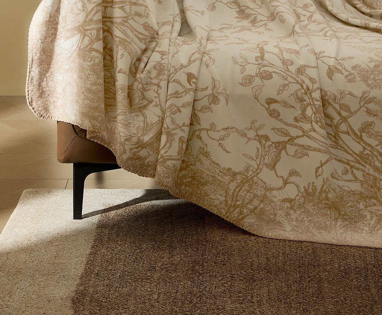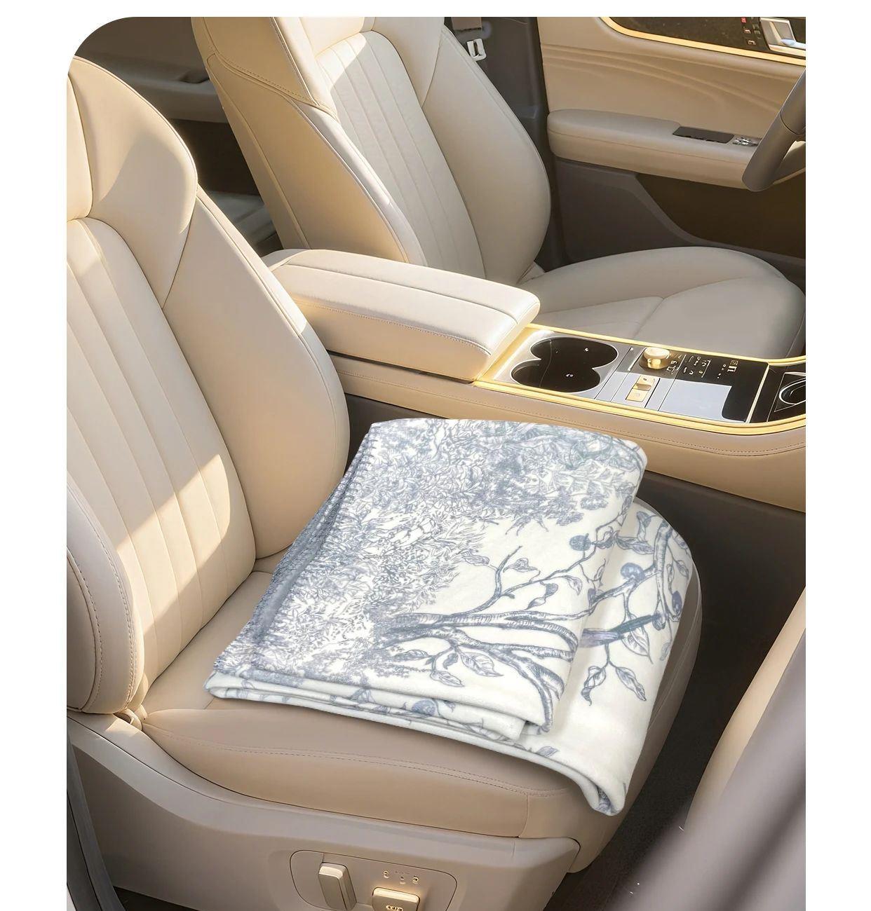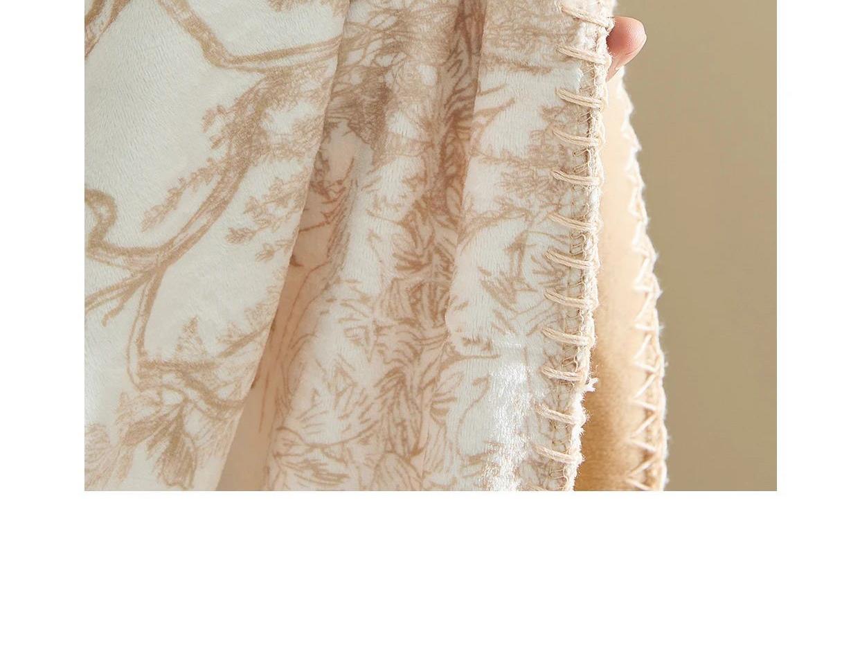 万事利柿柿可期一如意毯 产品规格:120cm×180cm 成分:94%聚酯纤维6%氨纶(辅料除外) 颜色:蓝灰/卡其