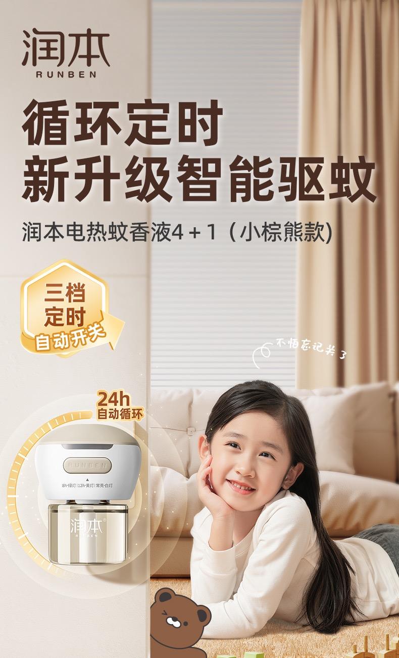 迷你手持风扇、三档调节,手机支架功能,内置1200mAh电池、草绿色,方便定制 润本电热蚊香液: 法国道达尔溶剂,0.6%氯氟醚菊酯,45ml,4+1定时款 润本驱蚊液: 50ml,7%驱蚊酯驱蚊液,0香精0精油配方。温和不刺激, 德国原液。5小时防蚊.