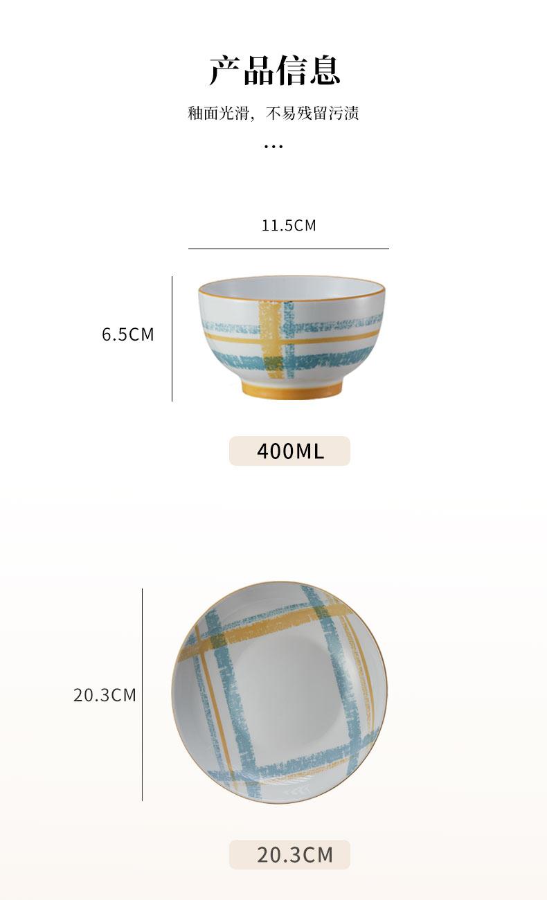 材 质:高温瓷 产品参数:4.5英寸小碗*4、8英寸盘子*2 彩盒尺寸:478*92*234mm 外箱尺寸:49*39*49cm 产品卖点:1.厚实瓷质,隔热防烫,外观色彩清新、光洁透亮、花面细腻。2.适用于洗碗机,消毒碗柜、微波炉、冰箱等。3.釉面光滑细腻,久用不褪色,釉下彩工艺,描边碗沿,田园复古风格,底部不上釉防滑设计,防滑更平稳。4.性价比高,适合福利集采银行保险项目。