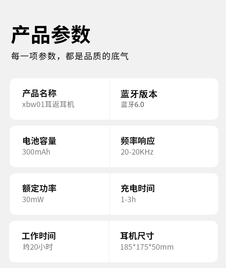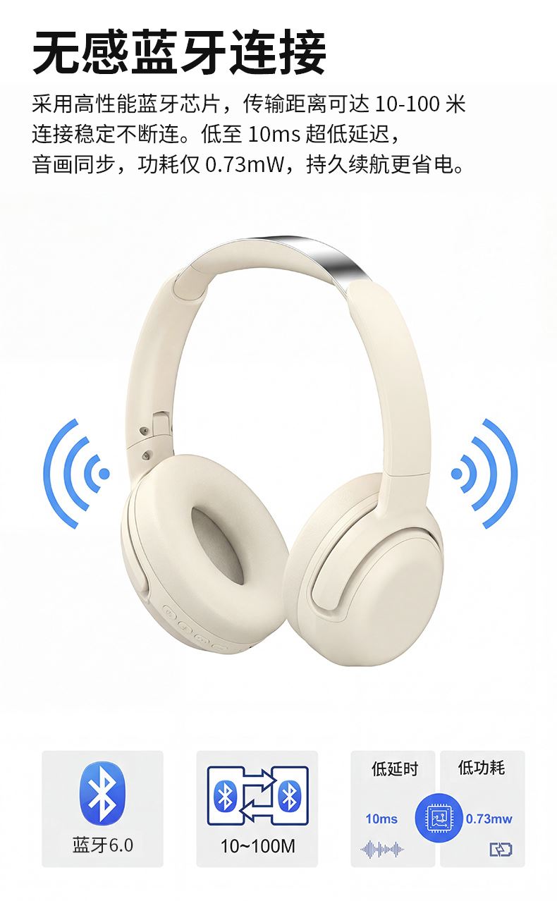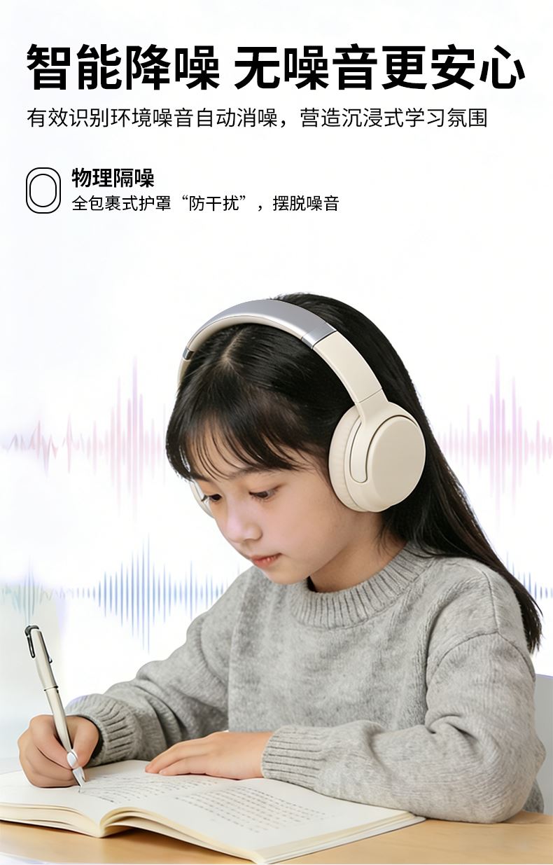 蓝牙版本:蓝牙6.0 电池容量:300mAh 耳机尺寸:185*175*50mm(约) 工作时间:20h(约) 1.全新一代学习耳返耳机,沉浸式诵读,记忆更深刻 2.可同步传输音频、英文背诵听力;录音回放清晰 3.无感蓝牙连接,采用高性能蓝牙芯片,传输距离可达10~100米 4.低至10ms超低延迟,音画同步,功耗仅0.73mW,持久续航省电 5.高保真铜环喇叭,40MM大动圈单元,强化低音质感 6.智能降噪,有效识别环境噪音自动消噪,无噪音更安心