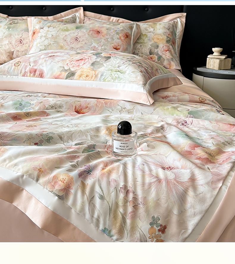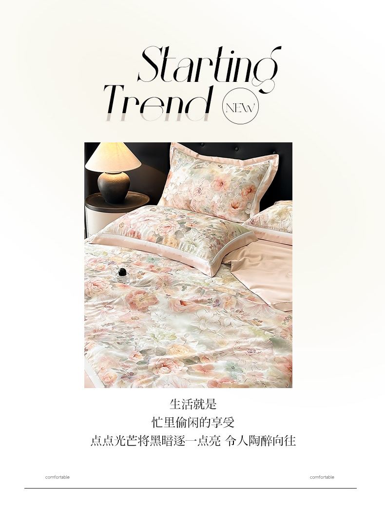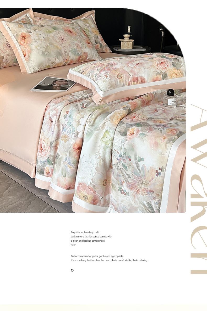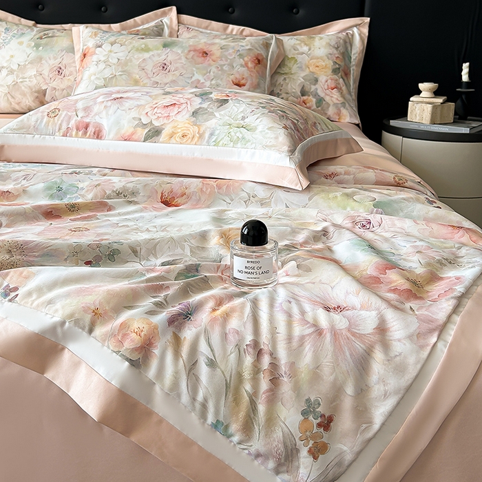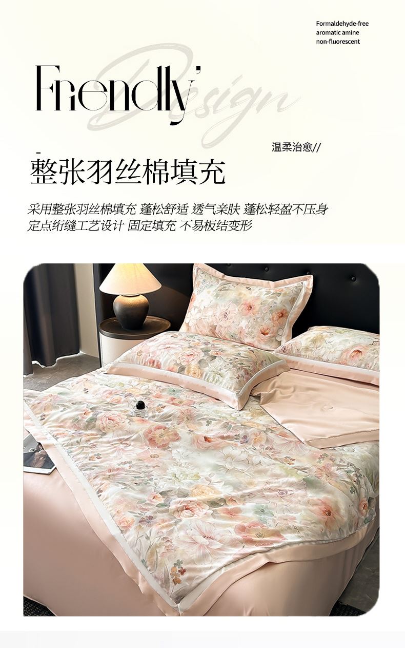 夏被:200*230cm 床单:230*240cm 枕套:48*74cm*2 面料:聚酯纤维 执行标准:GB/T22796-2021 安全类别:GB18401-2010 B类 1.舒适水洗真丝面料,柔软舒适亲肤贴身、不褪色。以再生纤维为原料,经过精梳工艺处理,面料手感柔软如贴身内衣,睡感舒适,透气。凉而不冰,触感舒适不粘身,有着棉的柔软与丝的冰滑,灵感加持,吸湿透气不闷热。 2.面料缩水率低,色牢度高,经洗耐用。