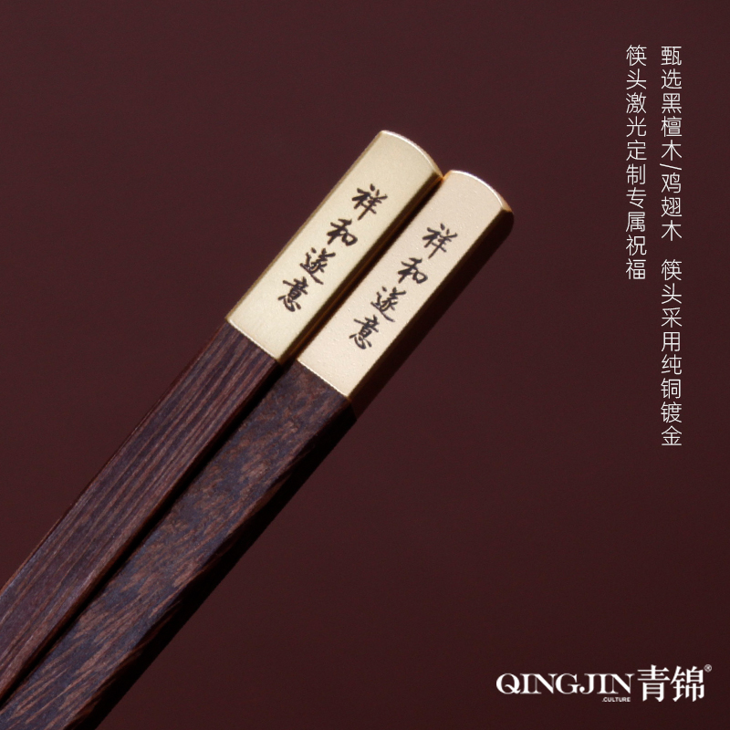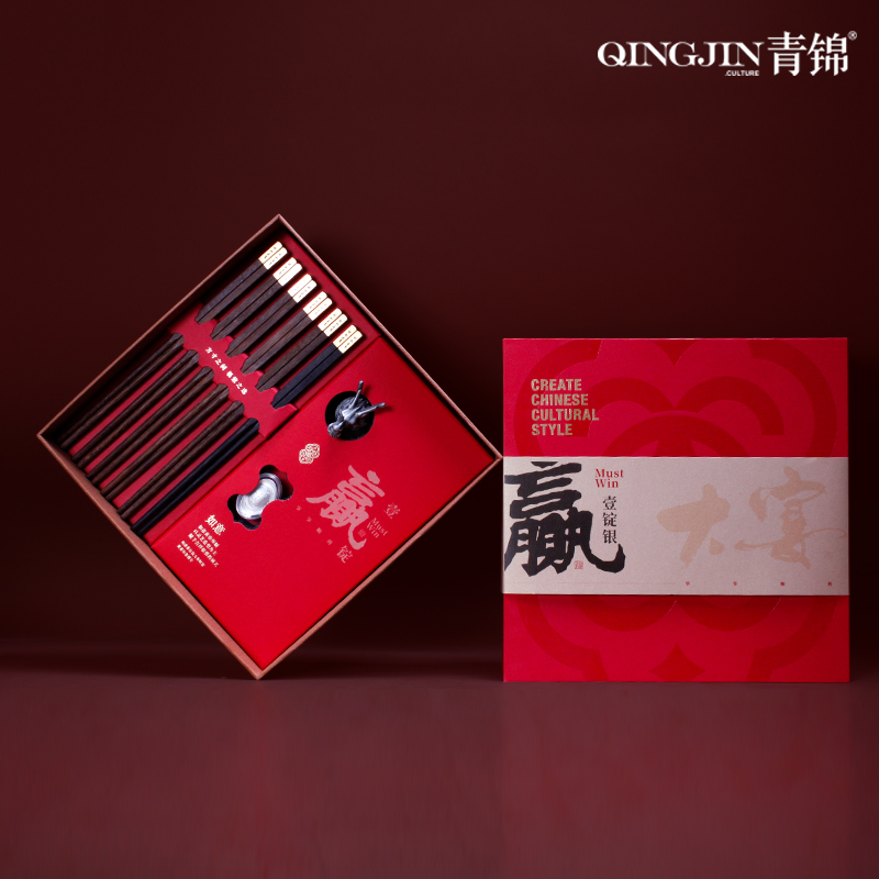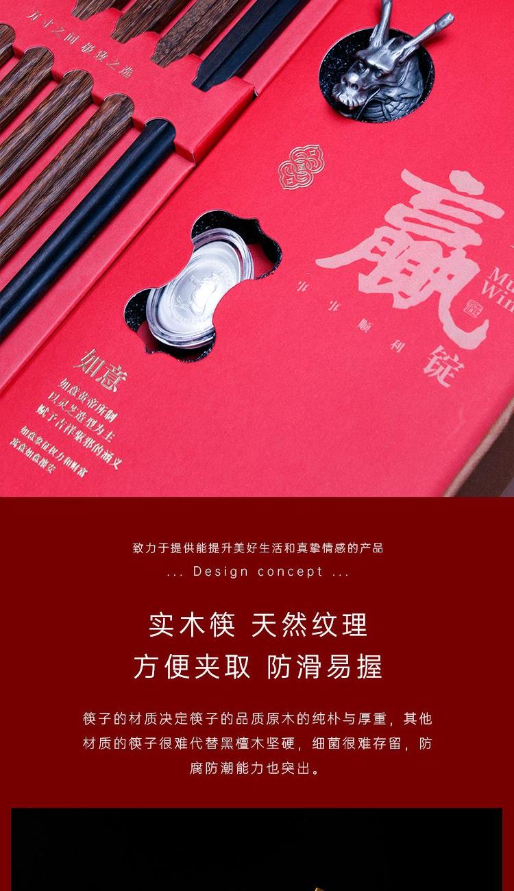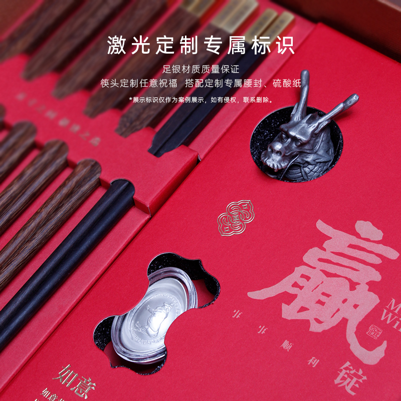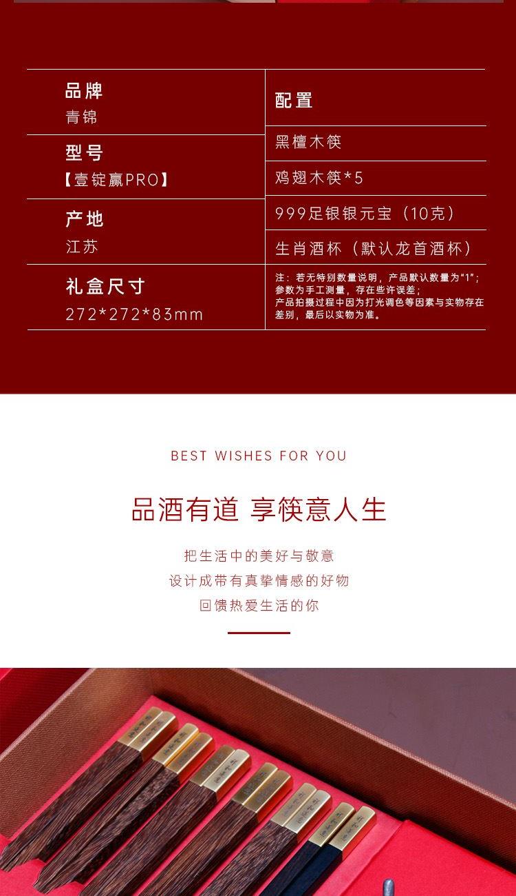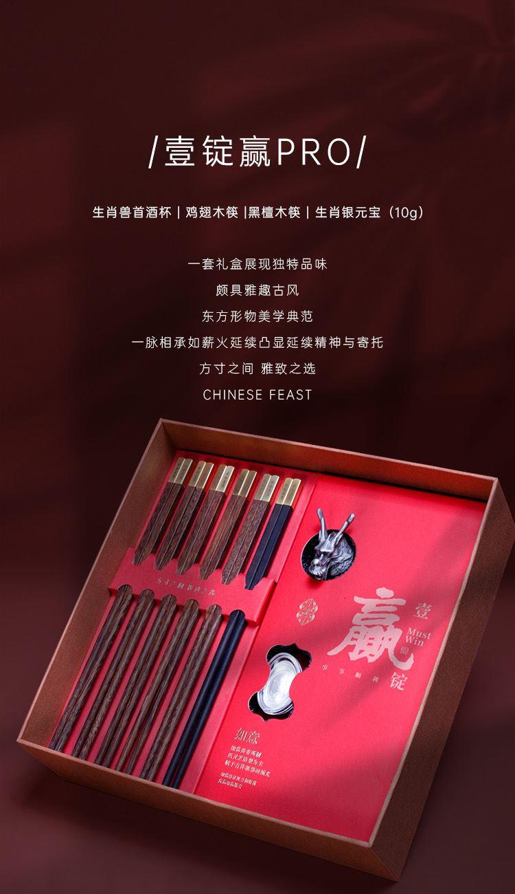 青锦【壹锭赢PRO】鸡翅木筷黑檀木筷生肖酒杯元宝商务定制礼盒