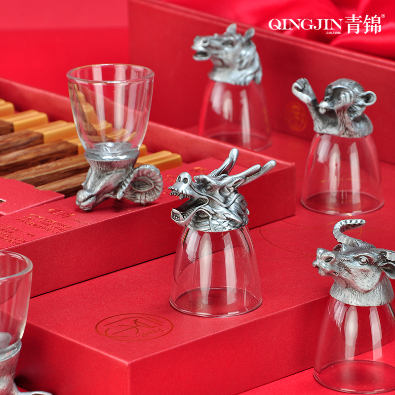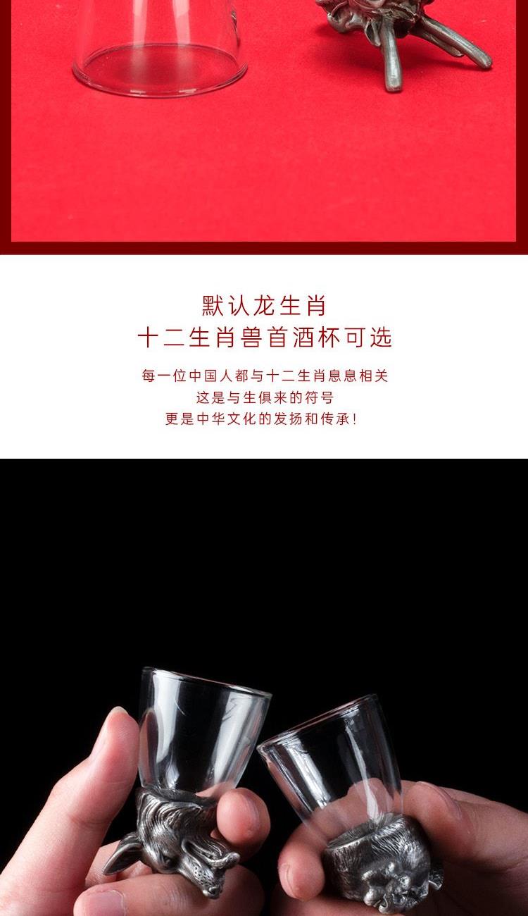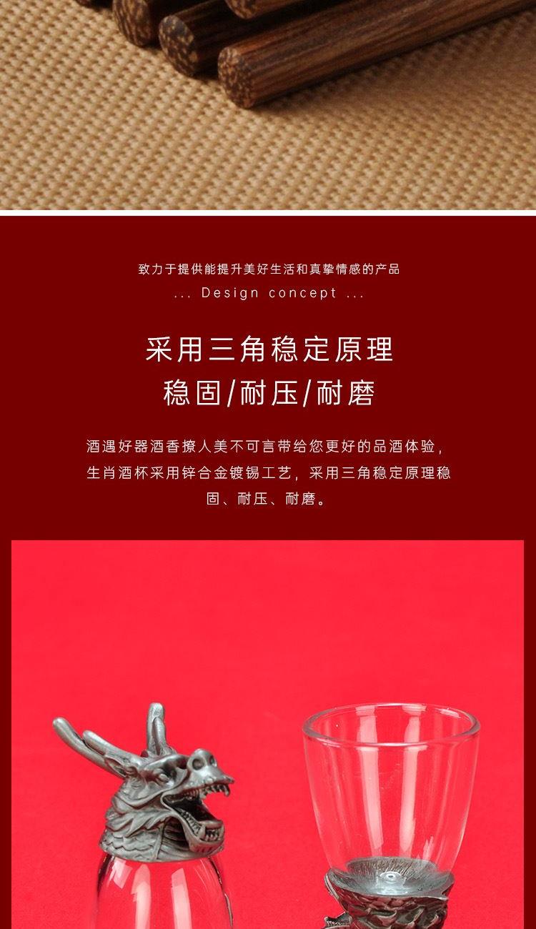 配置 鸡翅木x5 黑檀木*1 酒杯x1 默认生肖龙 999足银银元宝(10克)x1 材质 锌合金 鸡翅木 黑檀 玻璃 尺寸 包装 272*272*83mm