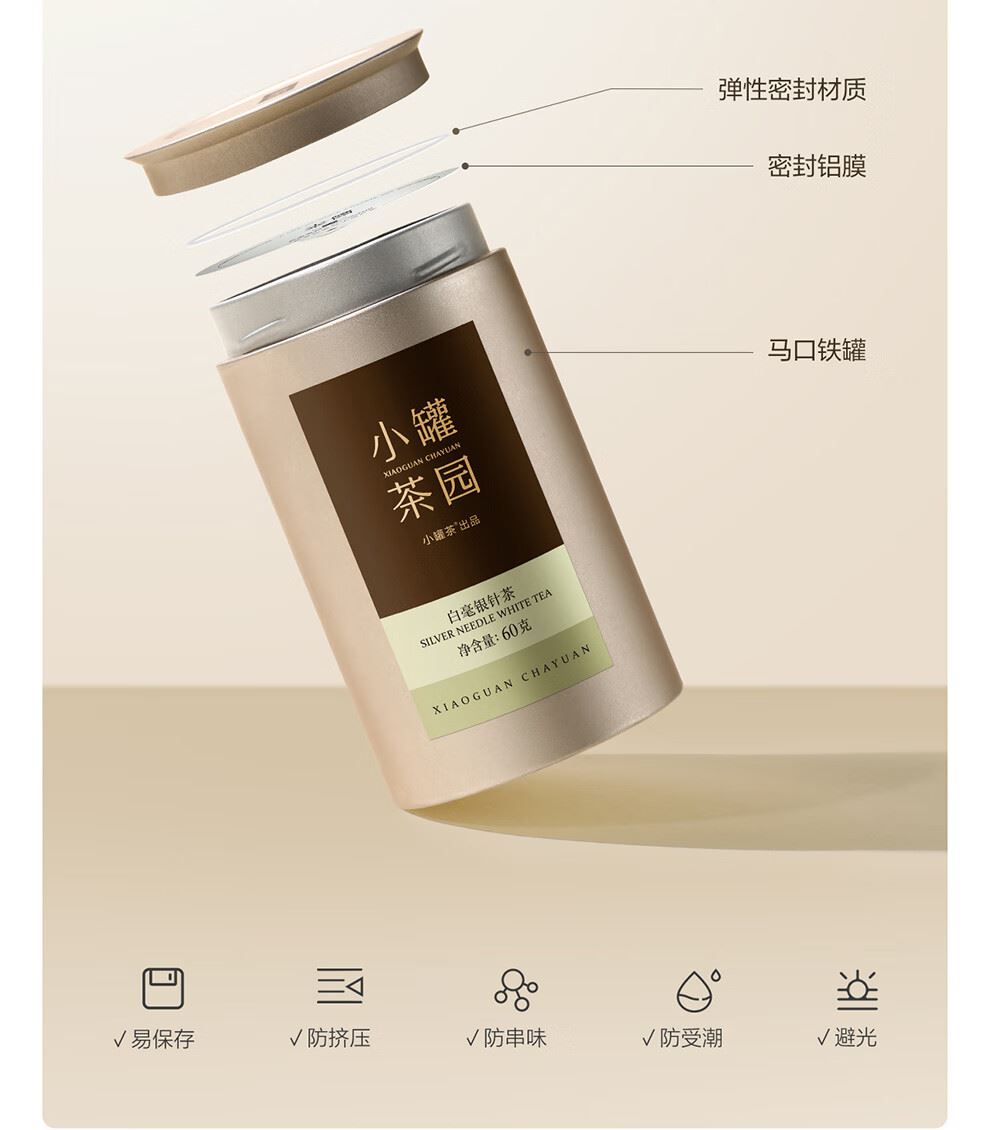 小罐茶园-福鼎产区特级白毫银针60g白茶叶商务自营伴手礼品盒