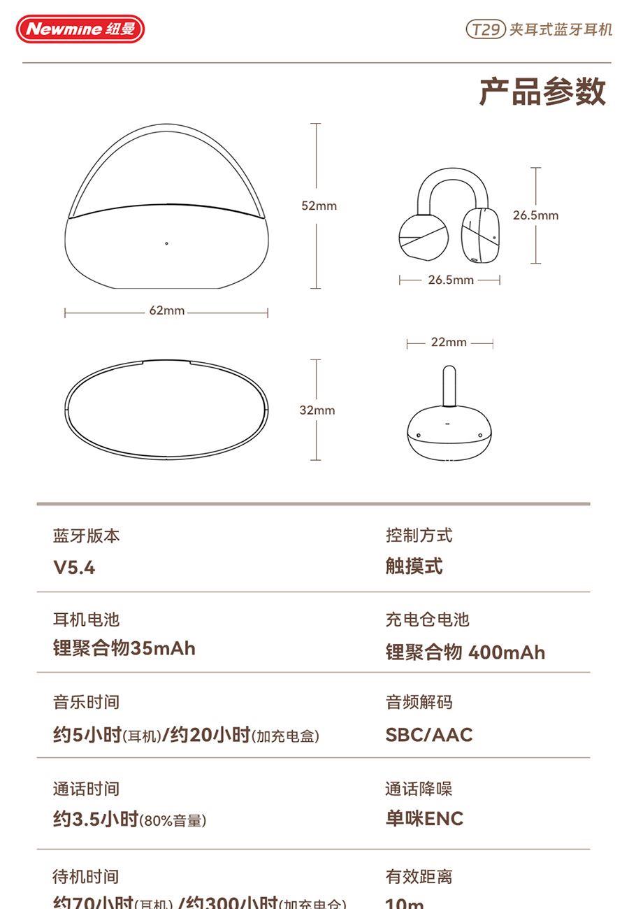 纽曼T29夹耳式OWS蓝牙耳机 纽曼T29夹耳式OWS蓝牙耳机