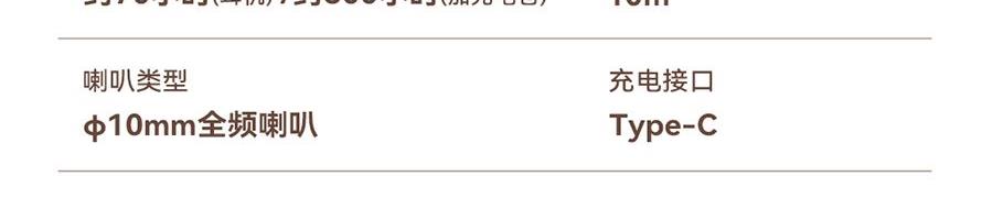 蓝牙版本 :V5.4 传输半径 :15米 电池容量 :35mAh 充电仓容量 :400mAh 蓄电次数 :约5次 待机时间 :约300H 使用时间 :约5H(耳机单次充电) 使用时间 :约20H(配合充电仓使用) 充电时间 :约2H 颜色 :米色/蓝色/紫色 规格 :120个/大箱;20个/小箱 . 稳固挂耳,狂甩不掉,户外运动新体验 · 品质降噪麦克风,HD高清通话,字句清晰 · 蓝牙5.4无线稳定连接,覆盖范围广,功耗低,兼容性强 · 开机配对,取出即连,回连无需多余操作 · 连接稳定不断线,高清视频低延迟 · 续航持久,连续通话/音乐时间满足日常使用频繁人群 · 生活防水,防雨防汗,可边运动边享受音乐 . 触控按键,激活语音助手/接听电话/音量调节/歌曲切换轻松操作 . 专为运动而生,人体工学适配耳廓