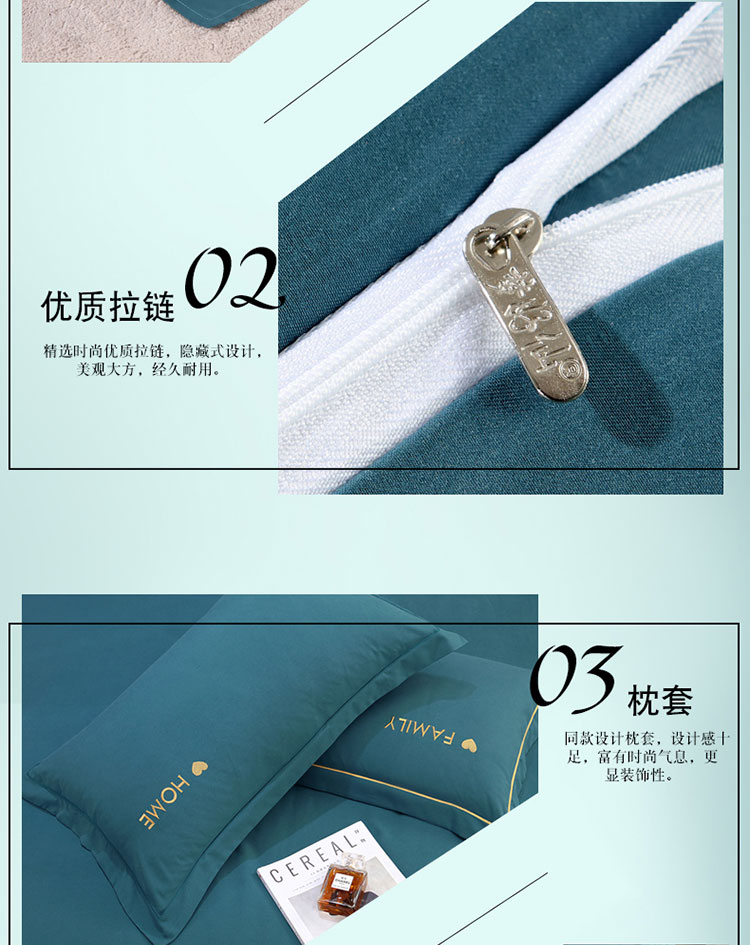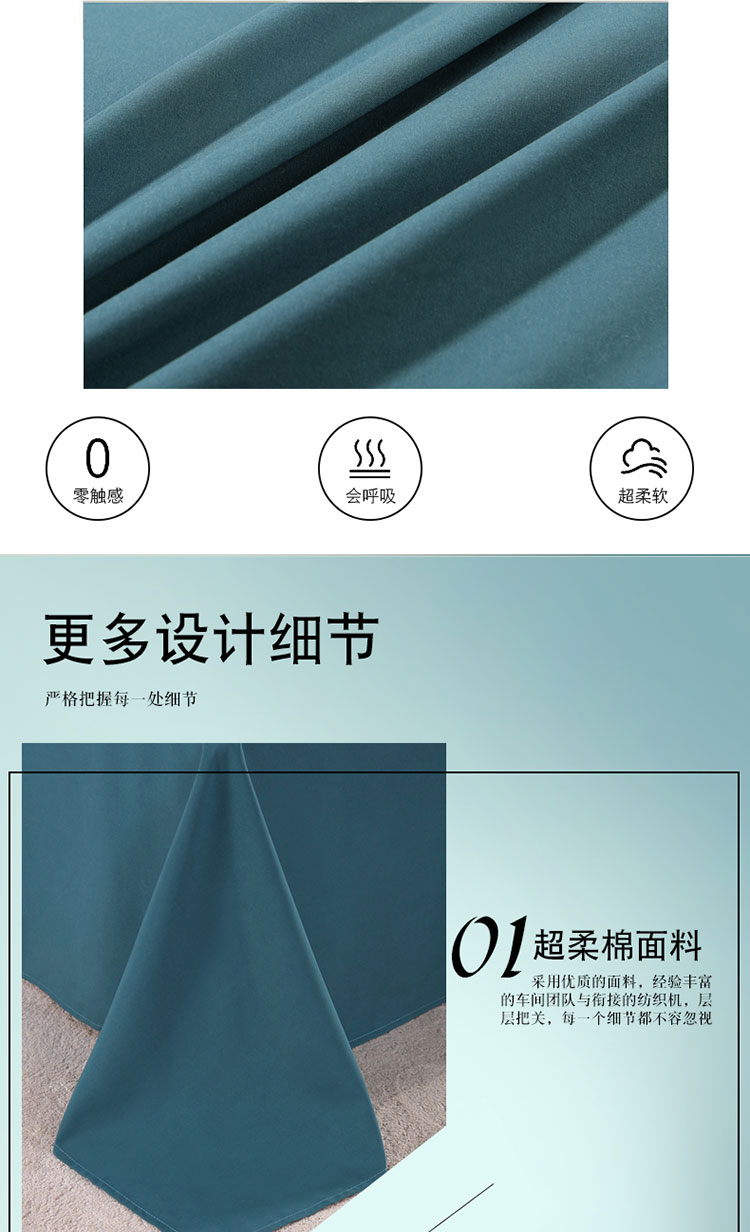 1:理想生活系列 超来棉纯色轻舍四件套 2:超柔棉 经营者注重棉花品质改良,并在一整套供应链上加强了质量控制和管理 3:超柔棉面料 采用优质的面料,经验丰富的车间团队与衔接的纺织机,房层把关,每一个细节都不容忽视 尺寸:被套200*230cm*1 床单250*250cm*1 枕套48*74cm*2 面料:超柔棉(混纺) 包装:彩盒
