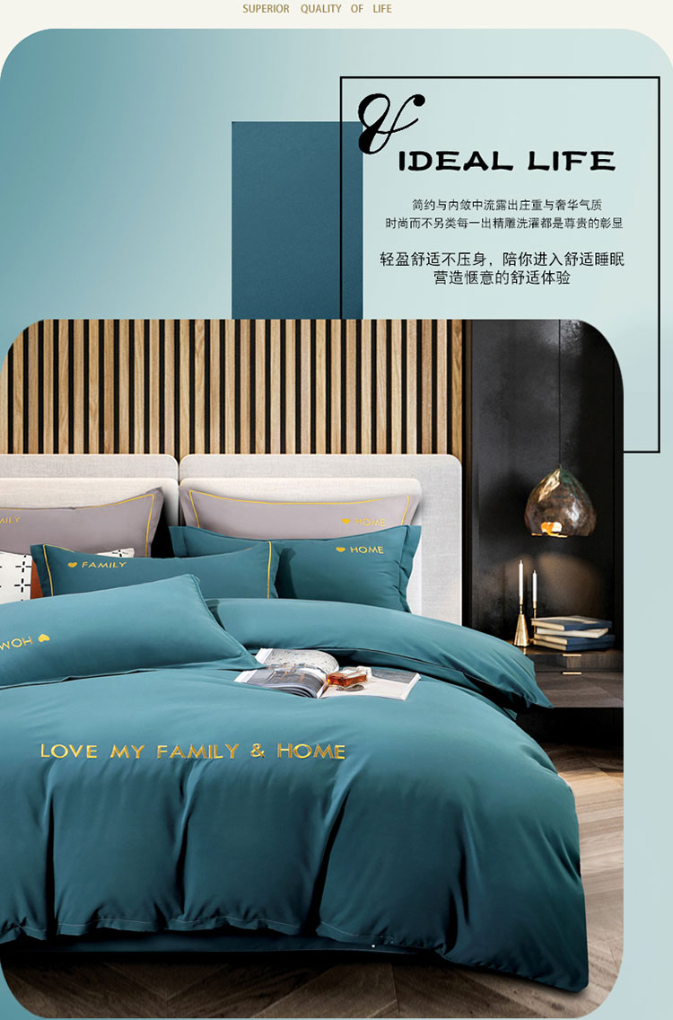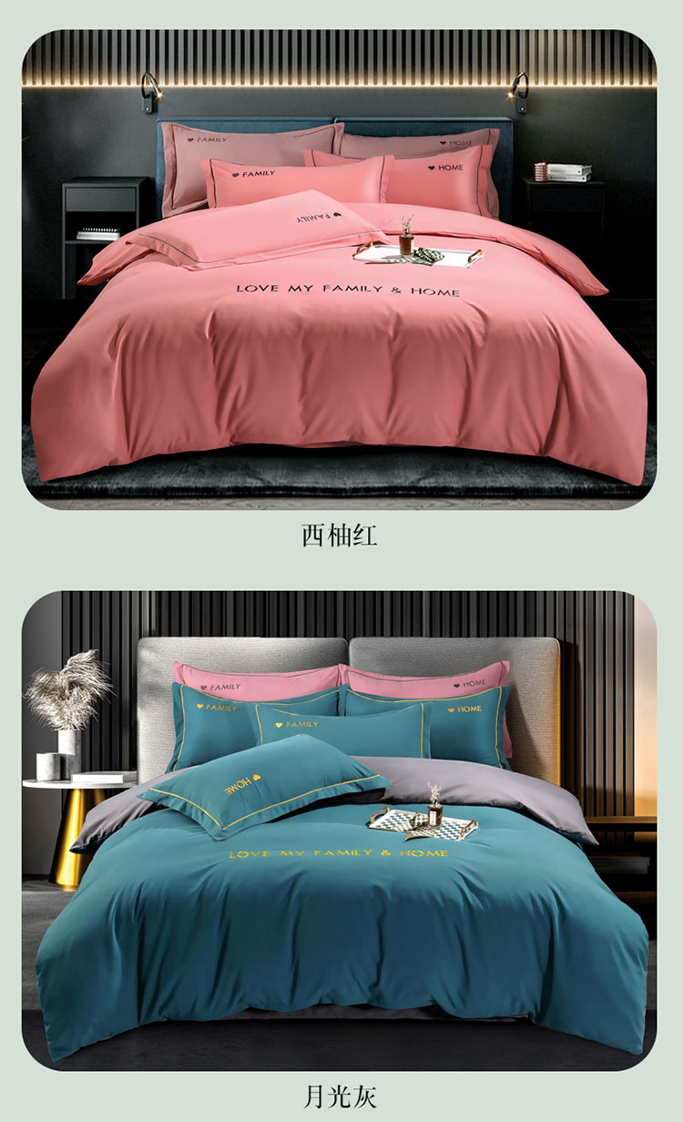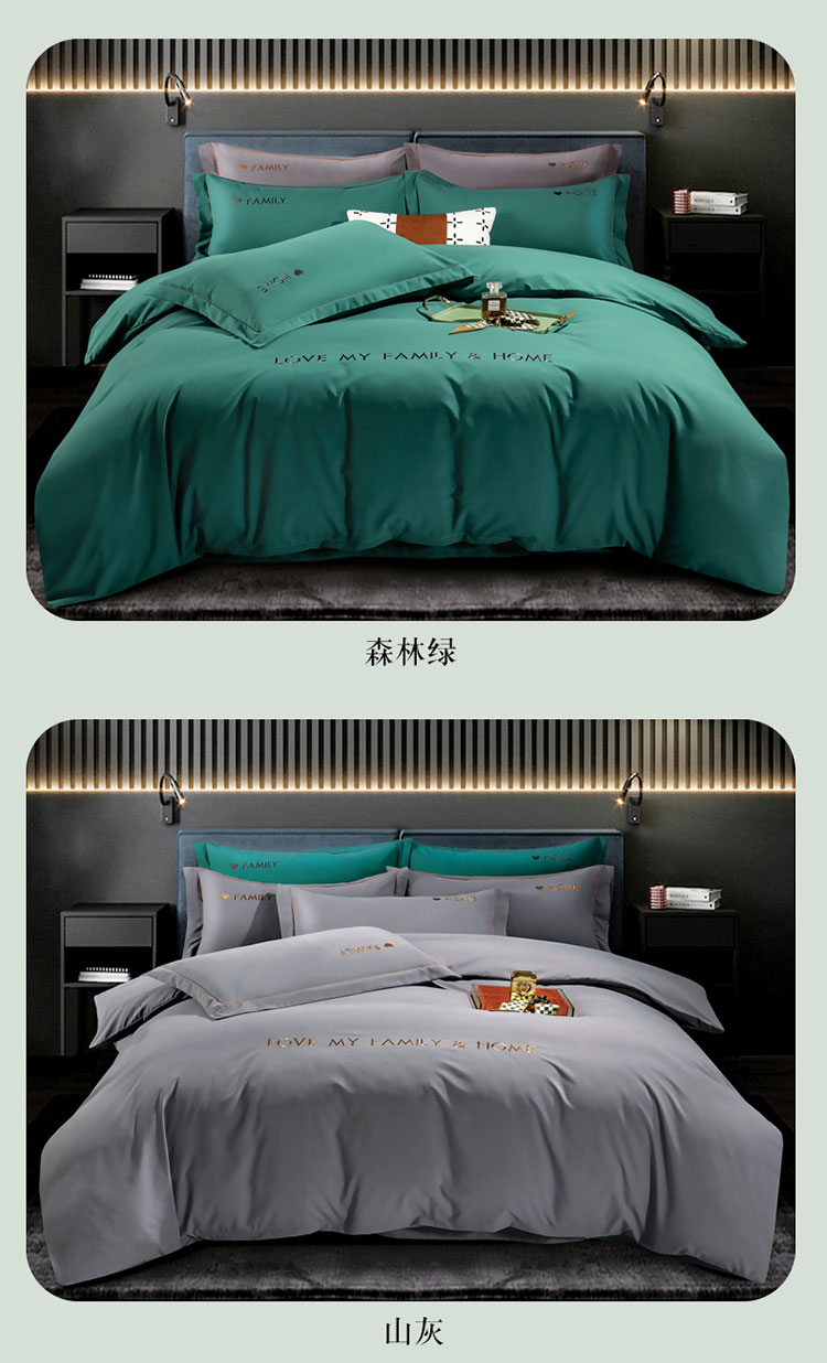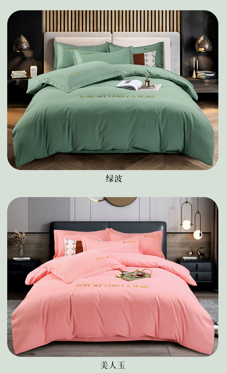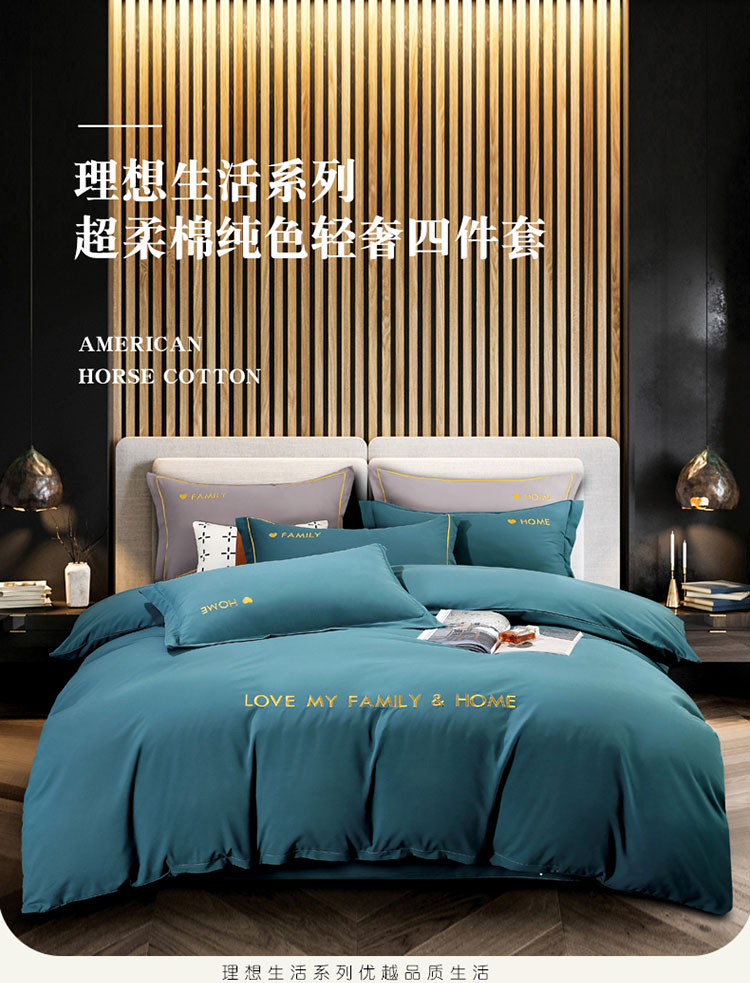 花花公子-家纺-超柔棉轻奢纯色刺绣四件套(四季款)