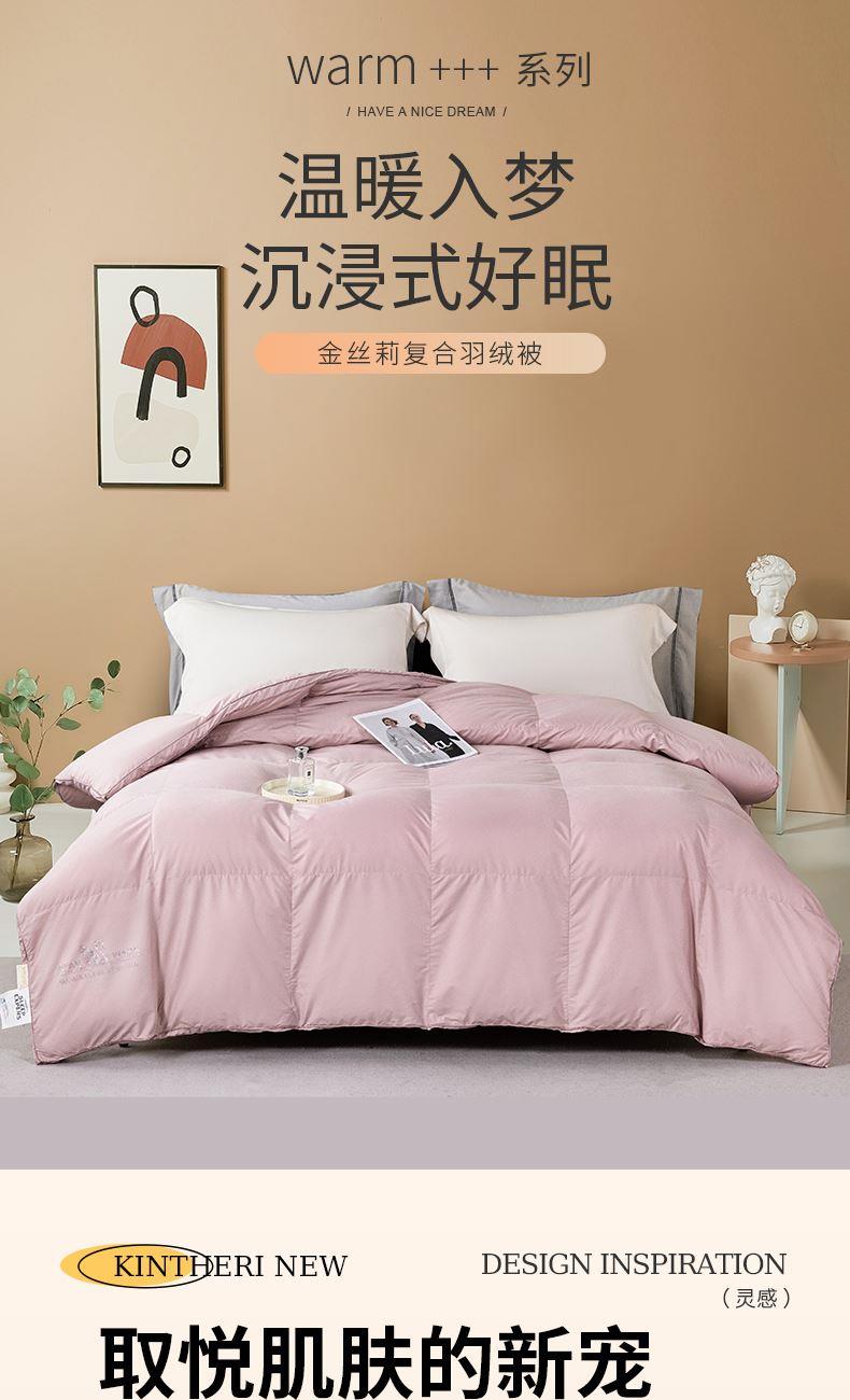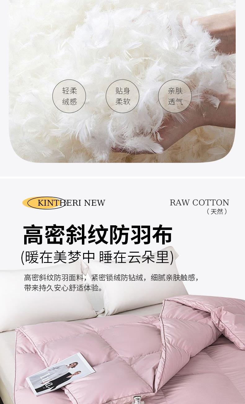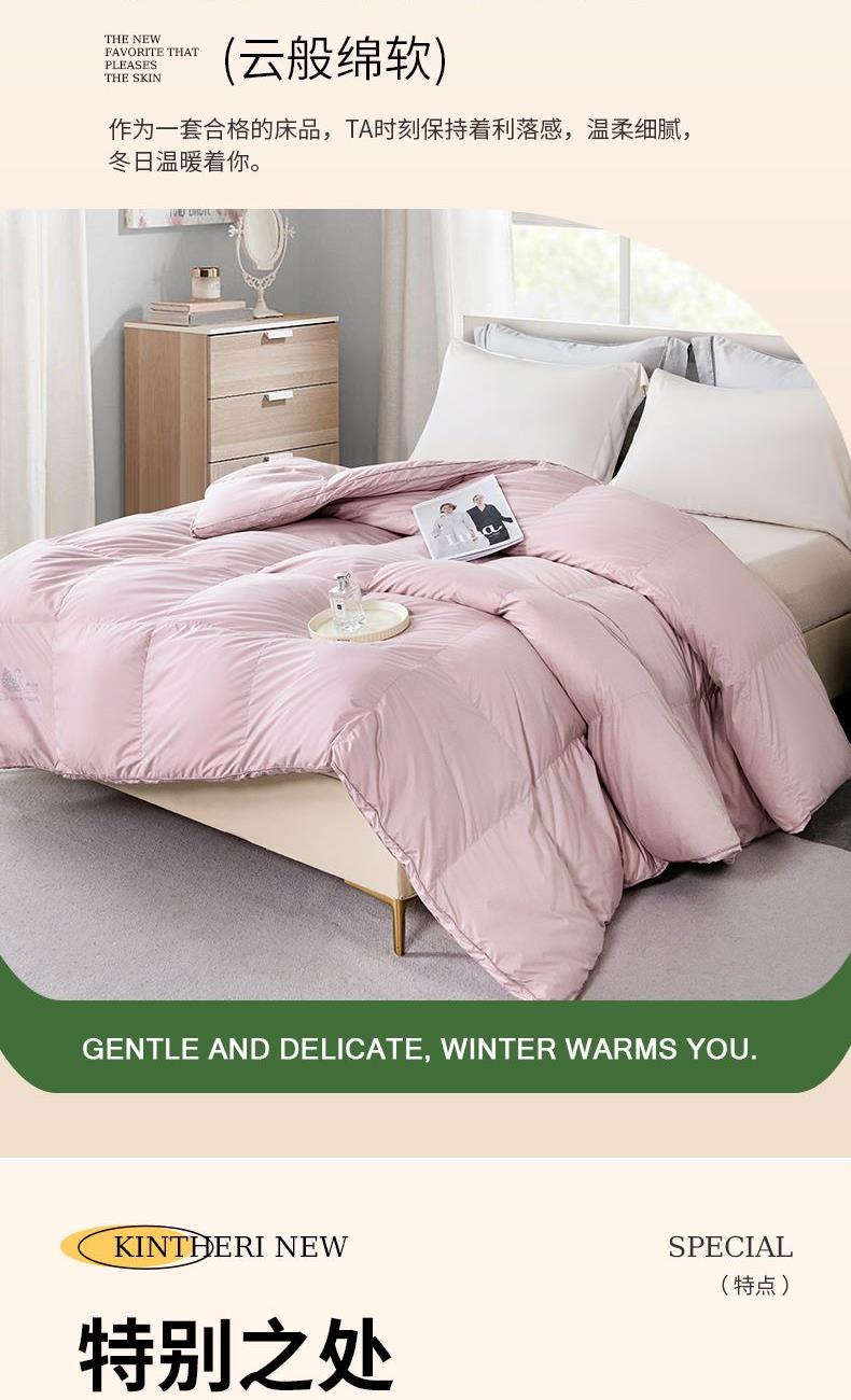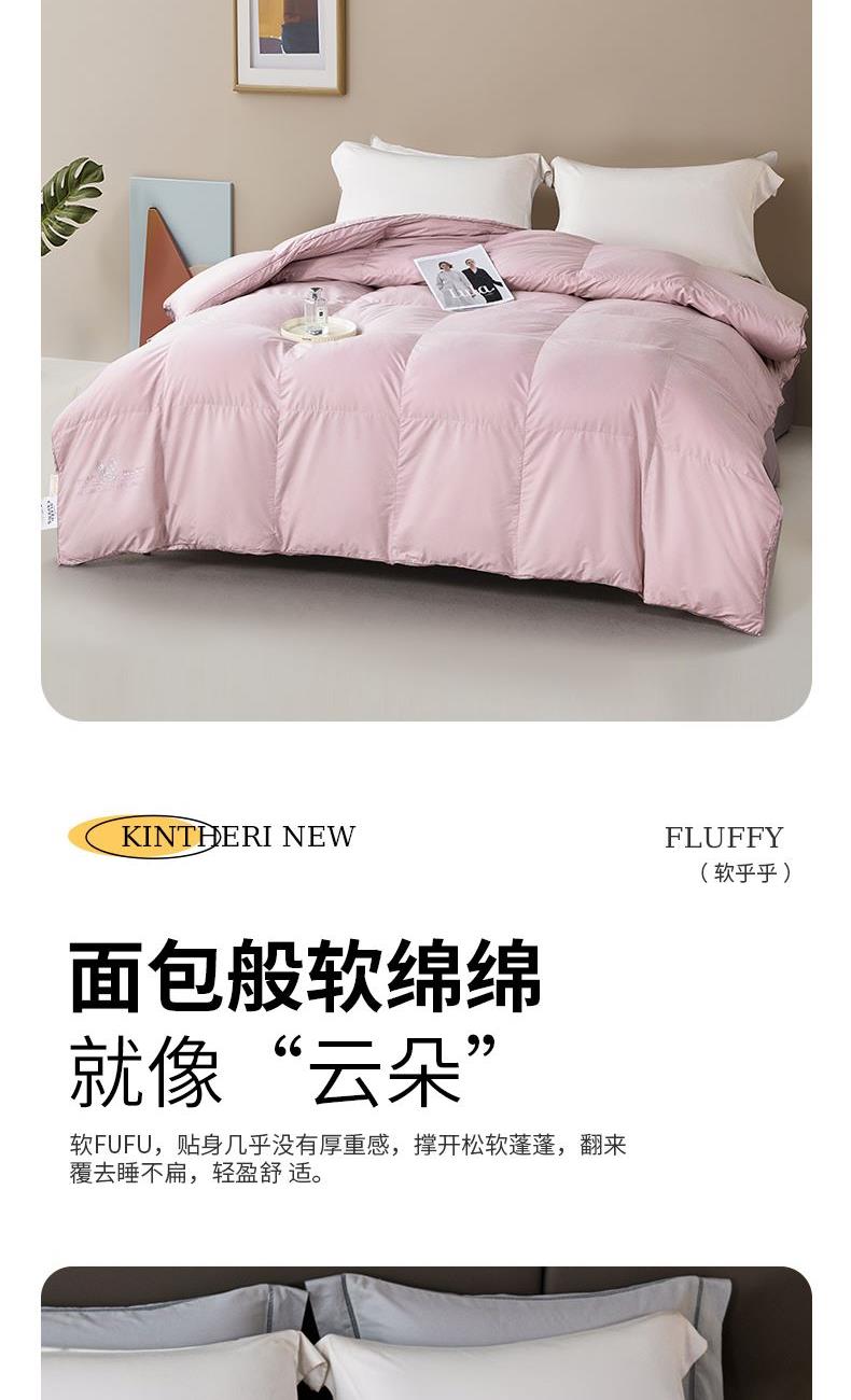 货 号:JB-1512 规 格:200*230cm 面 料:高密斜纹防羽布 填 充:四周围22格羽丝绒(聚酯纤维) 中间20格白鸭绒(绒子含量55%) 填充克重:615G羽丝绒(聚酯纤维)+ 635G白鸭绒(绒子含量55%) 1.高密斜纹防羽面料,紧密锁绒防钻绒,细腻亲肤触感,带来持久安心舒适体验。 2.精选羽丝绒和白鸭绒分区域填充,轻盈蓬松蓄热强,寒冬保暖加倍不失透气清爽。 3.立体立衬工艺,保暖更均匀,双层立衬设计避免冷点,锁温效果升级,全身持续暖意环绕