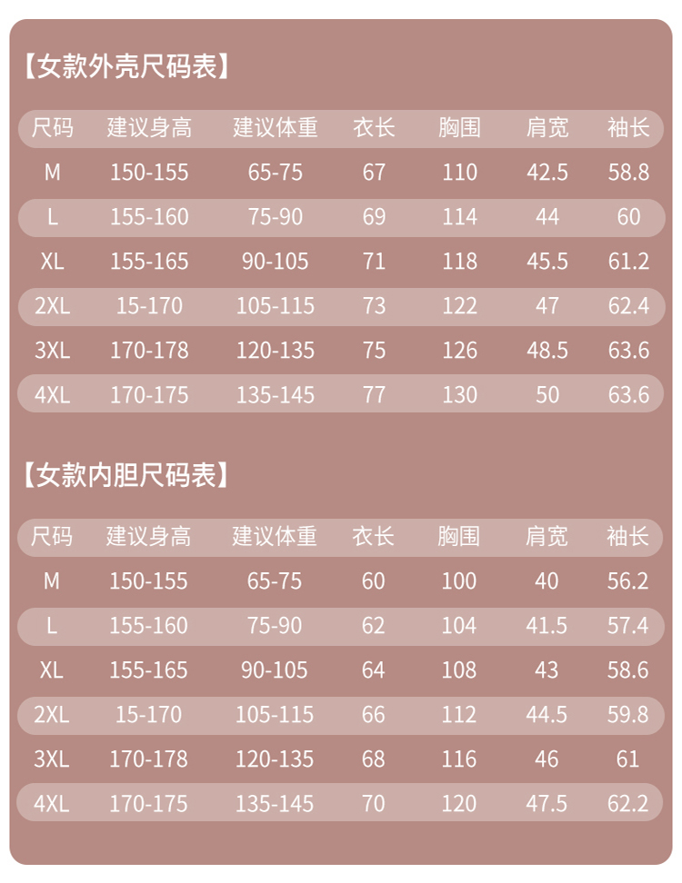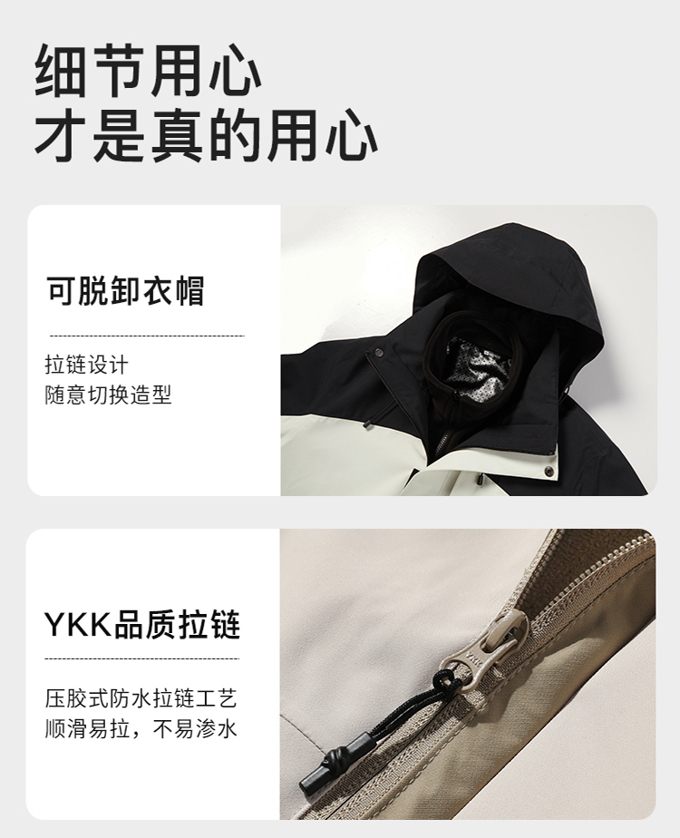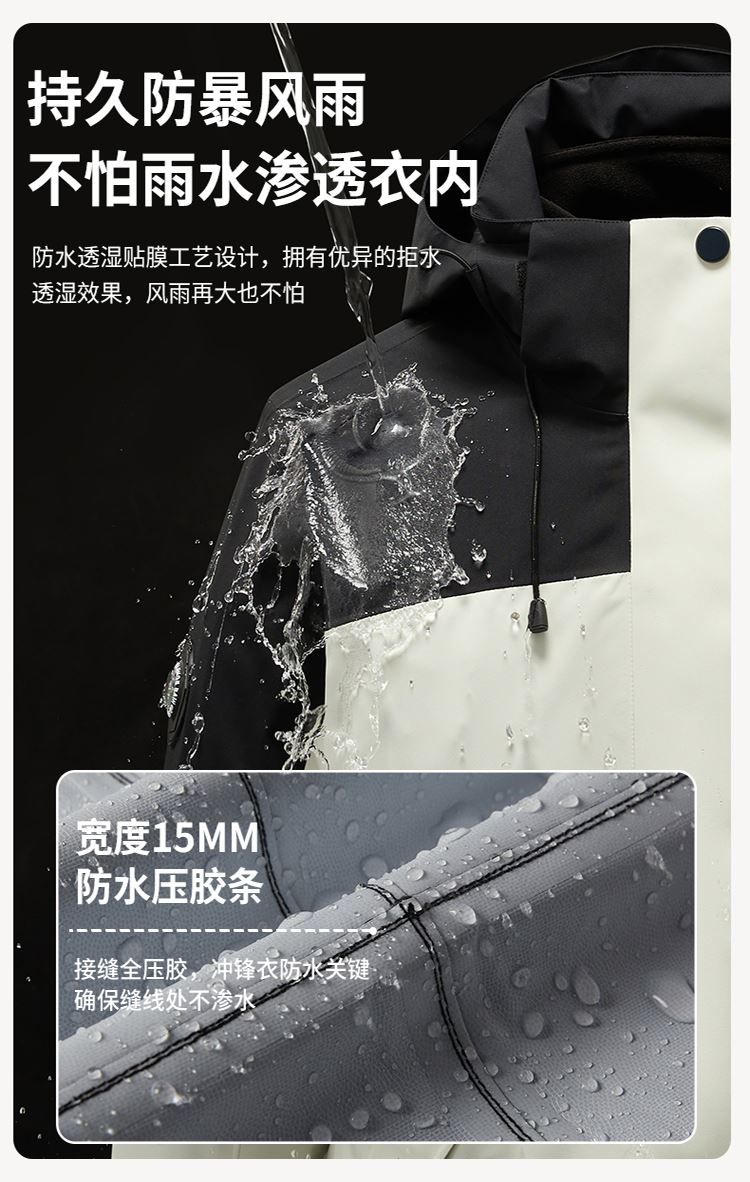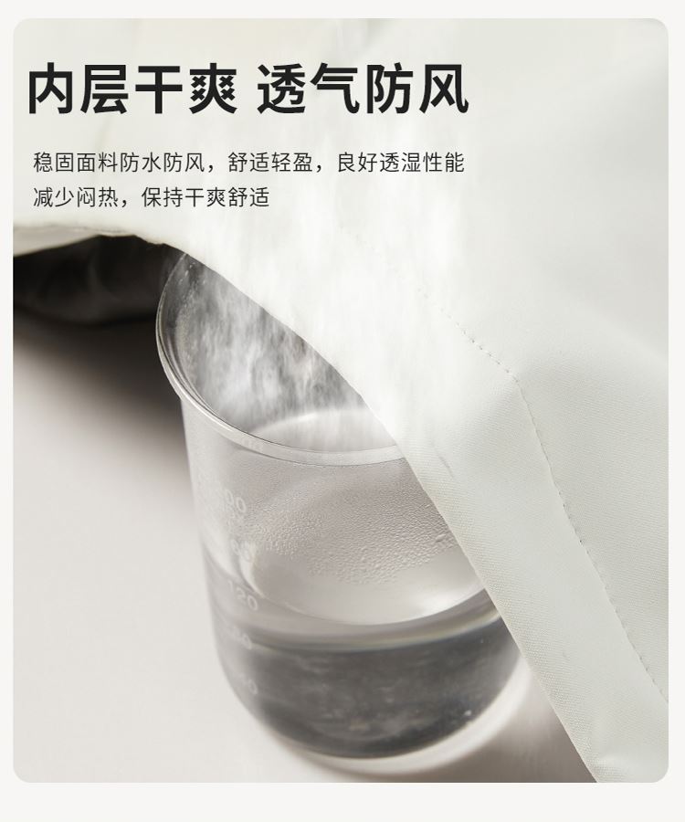 》面料:石墨烯科技面料 》功能:多功能性 》面料成分:聚酯纤维 》颜色:11色 》尺码:M-4XL 》里料成分:聚酯纤维 》内胆成分:聚酯纤维 》版型:分男女款 卖点说明: 采用立体压胶技术 防暴风雨抗脏耐脏 日常打理轻松循环透气 干爽不闷热高克重抓绒内胆 保暖舒适石墨烯循环导热 蓄温保暖