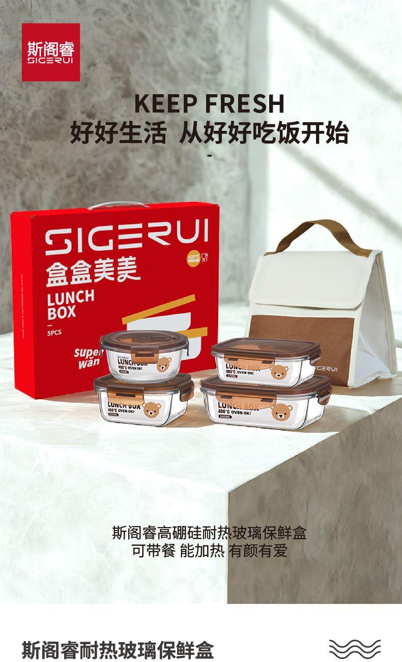 斯阁睿耐热玻璃保鲜盒五件套装SGR-25-2 斯阁睿耐热玻璃保鲜盒五件套装SGR-25-2