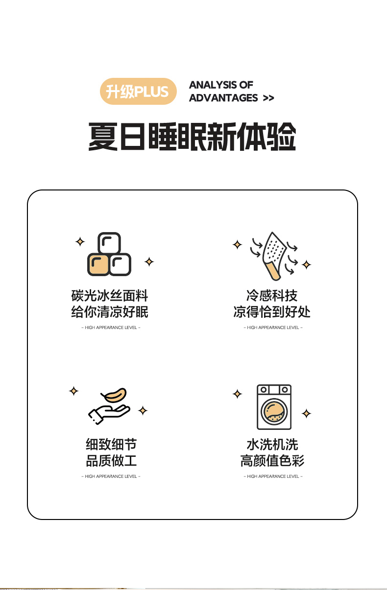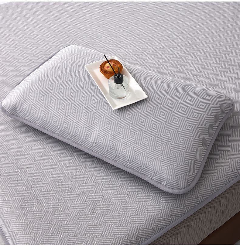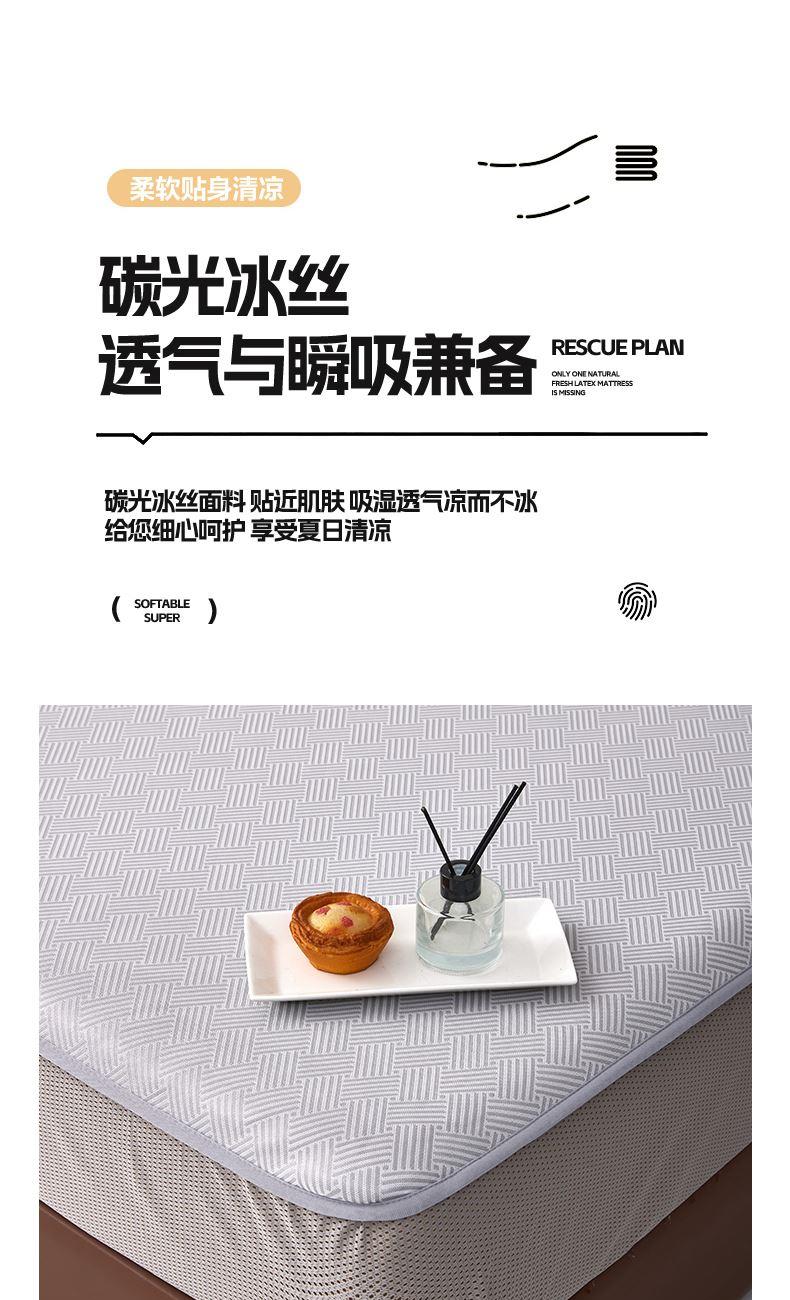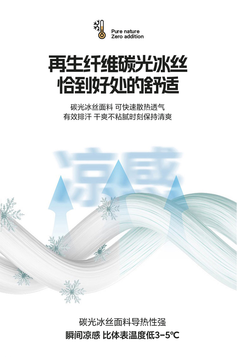 规格:180*200cm 枕套:48*74cm*2 面料:碳光冰丝 复合料:无纺布 执行标准:Q/TDY 01-2016 安全类别:GB18401-2010 B类 1.高密碳光冰丝席,自然清凉,凉而不冰,久睡不粘。 2.碳光凉感冰丝纤维织物本身经过处理,可以破坏细菌的寄生环境,有效防止细菌滋生进入,切断它们的食物链,洁净卫生,适合裸睡。