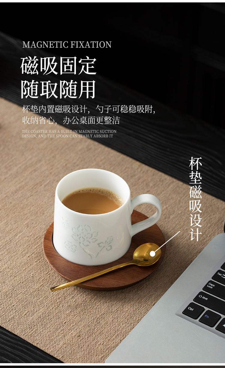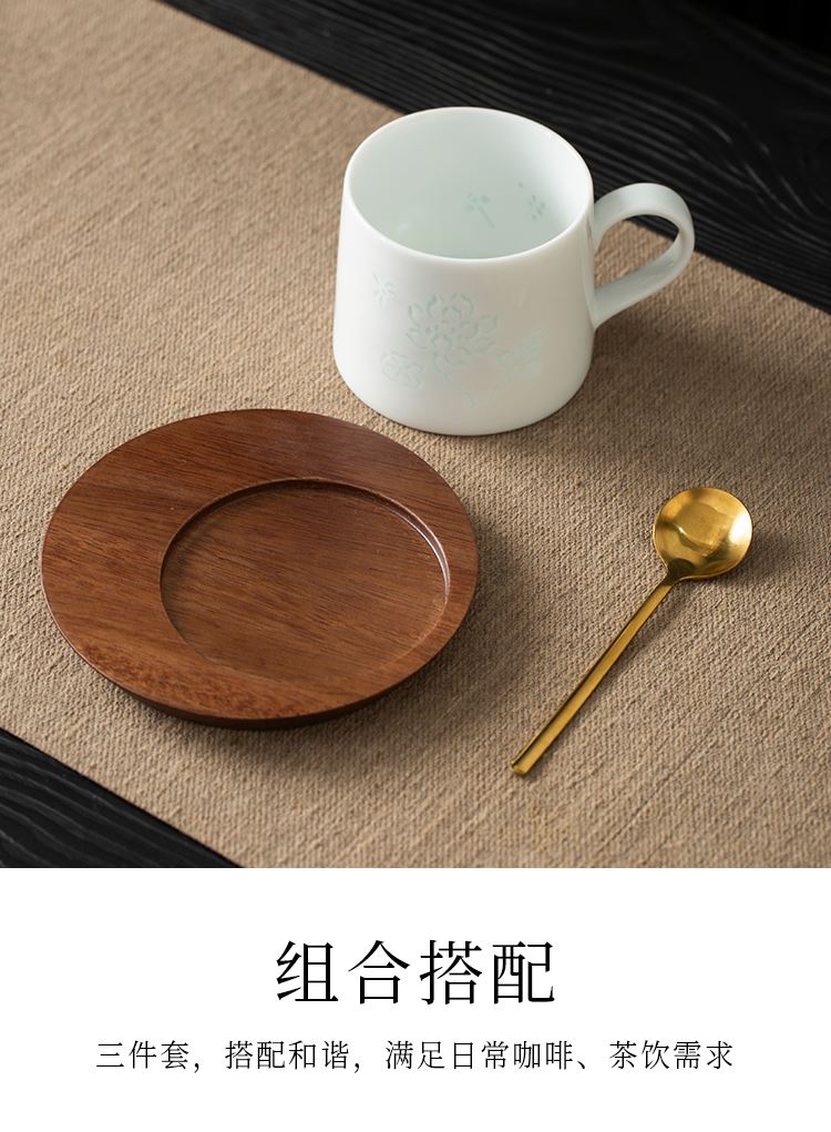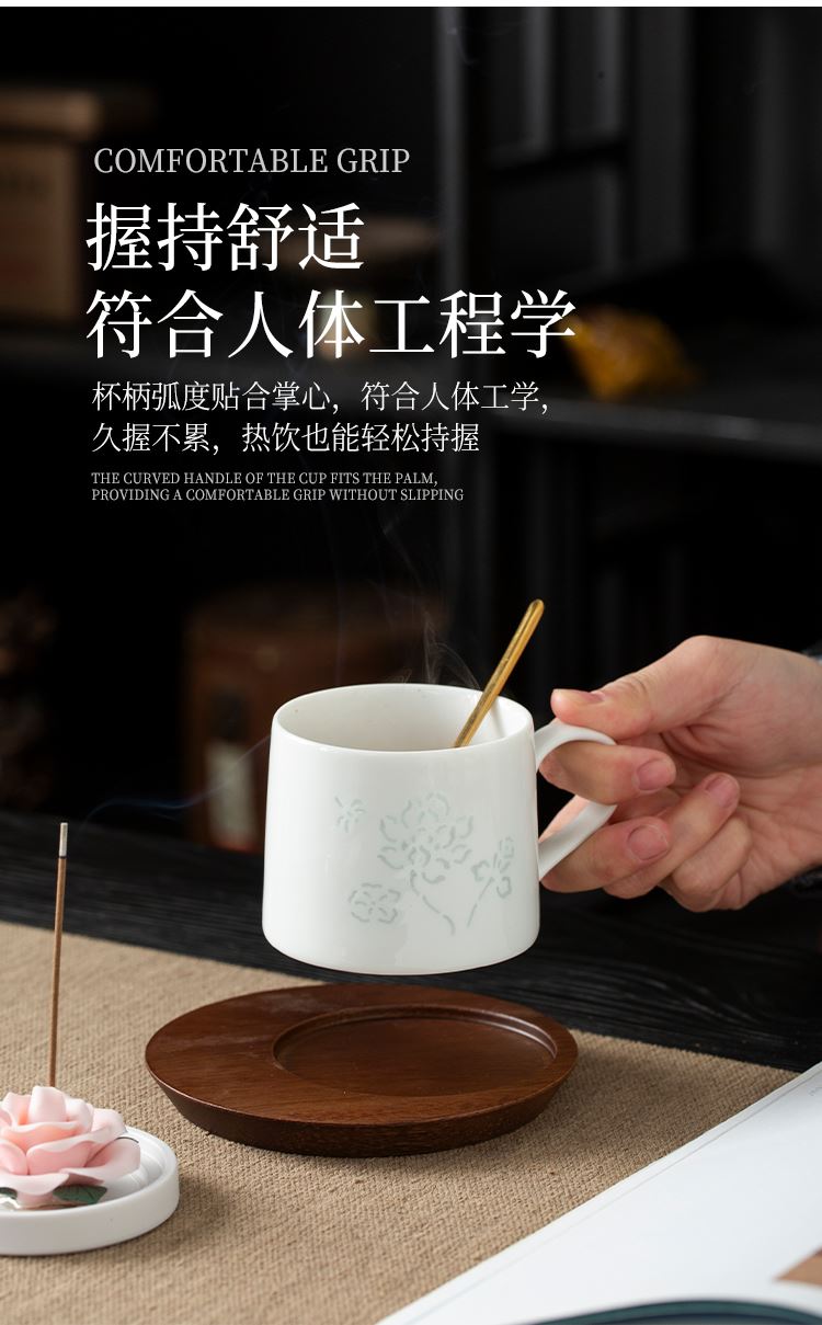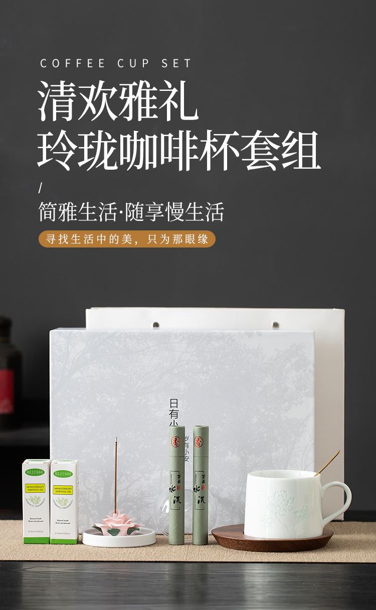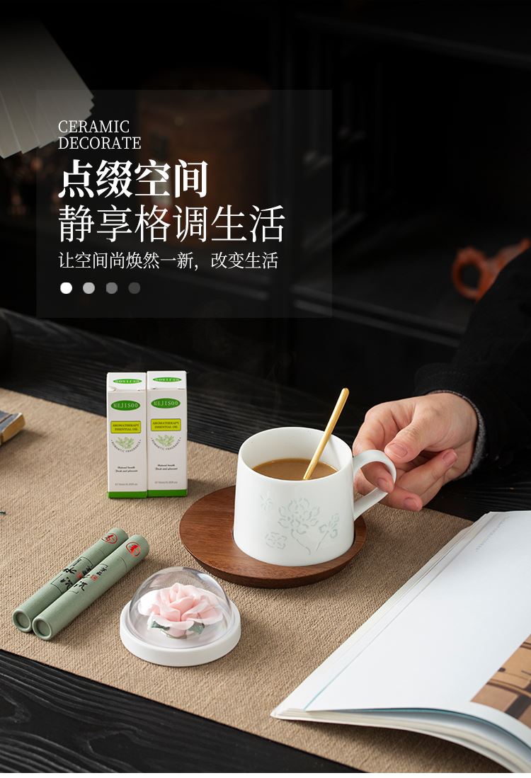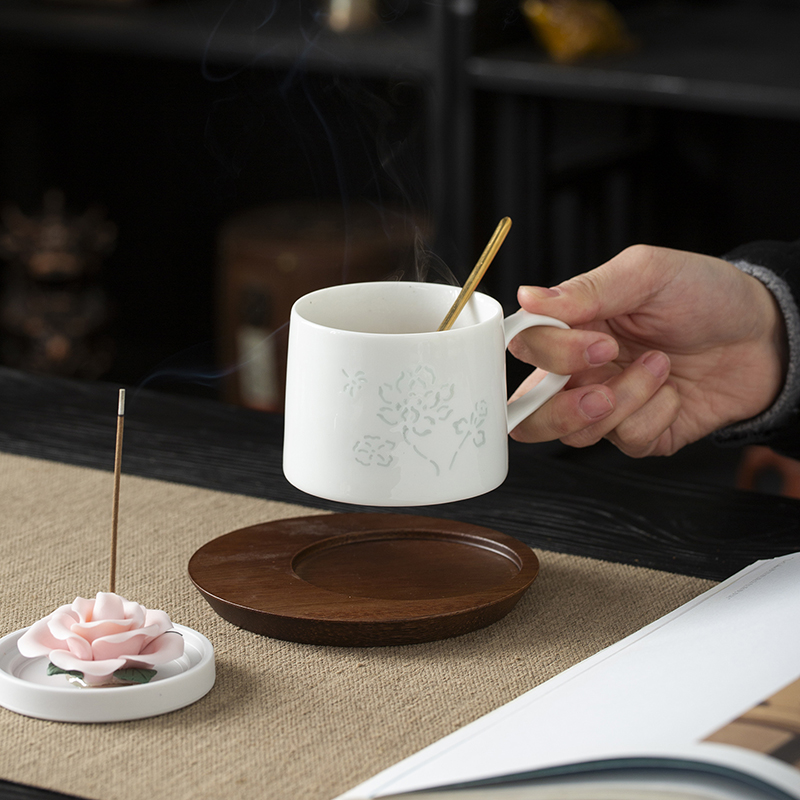 云博陶瓷羊脂玉玲珑咖啡杯胡桃木杯垫陶瓷花香薰线香插套装伴手礼