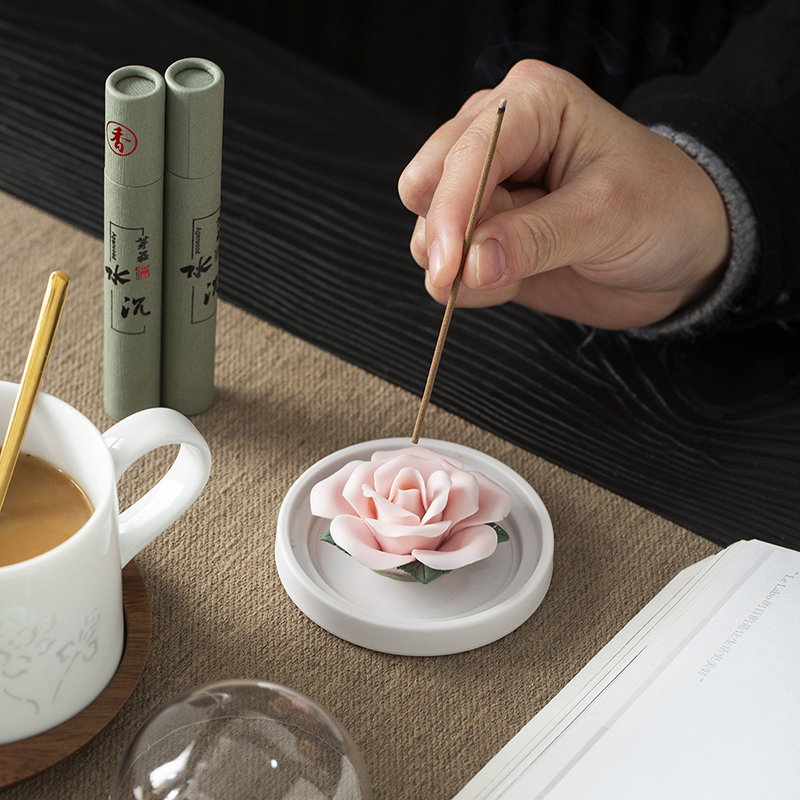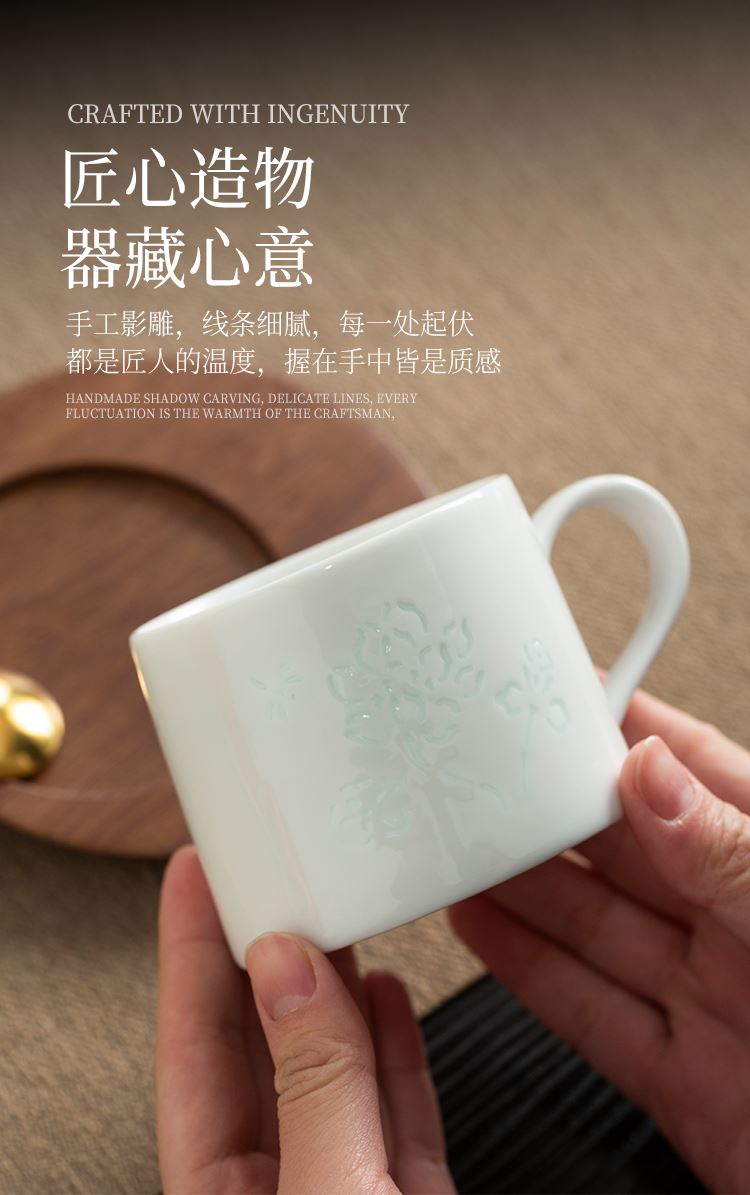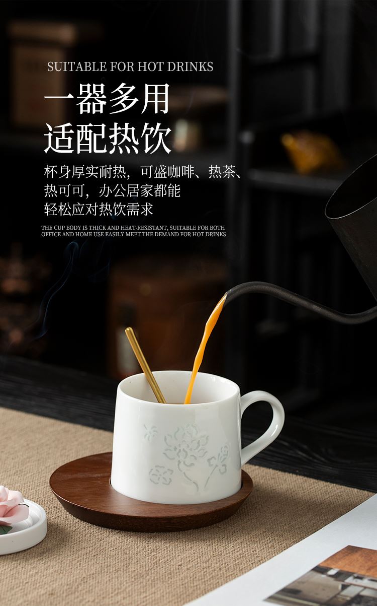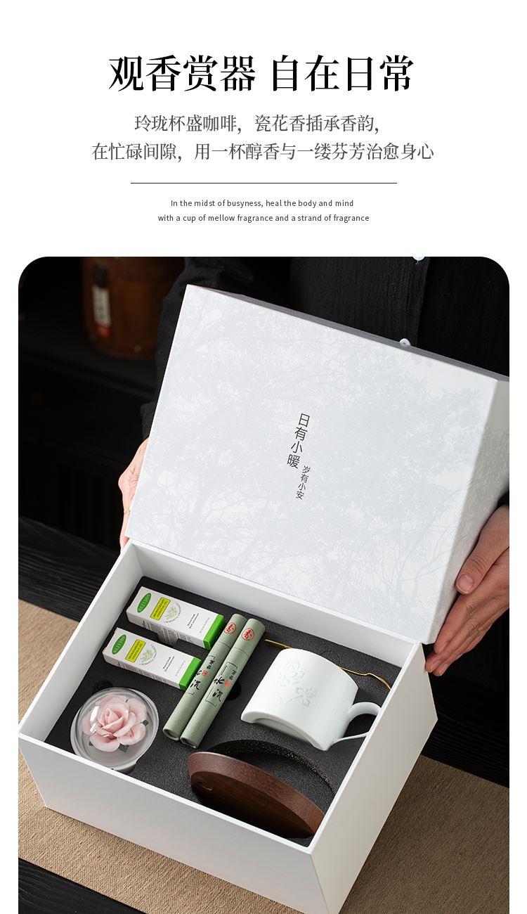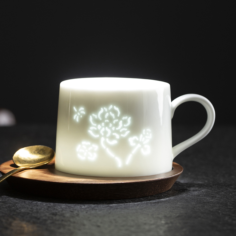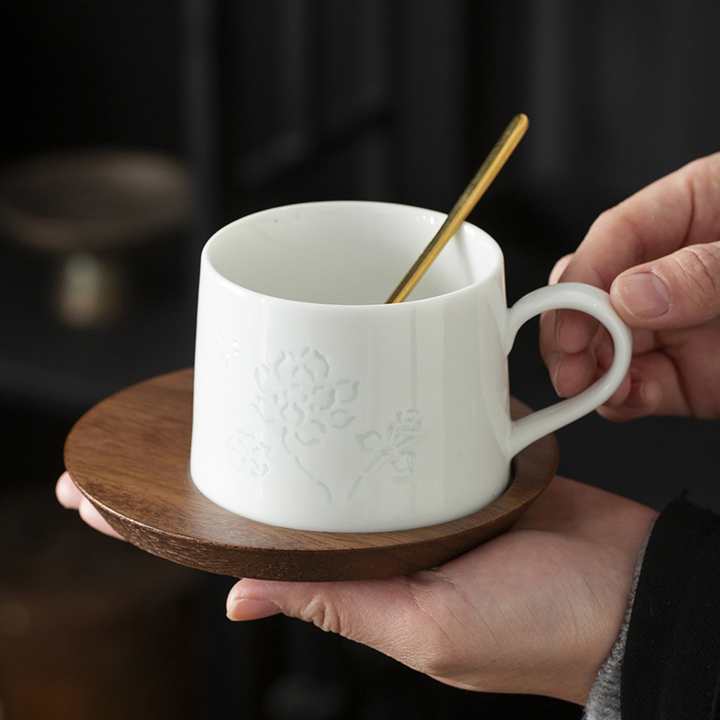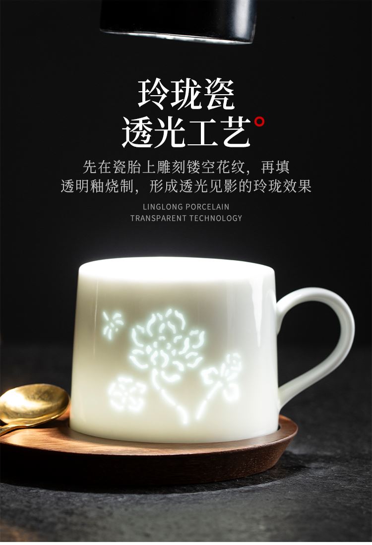 云博陶瓷羊脂玉玲珑咖啡杯胡桃木杯垫陶瓷花香薰线香插套装伴手礼