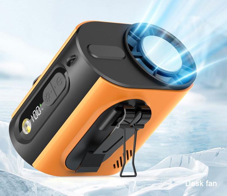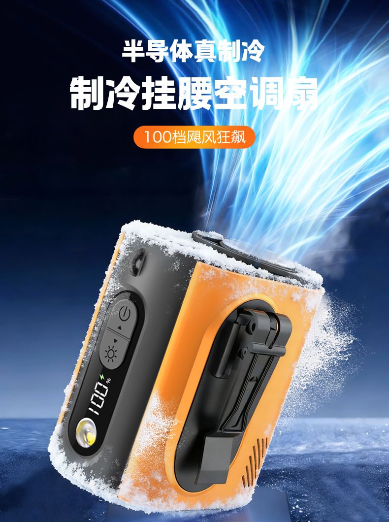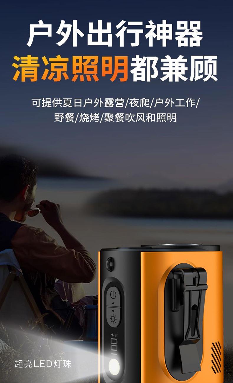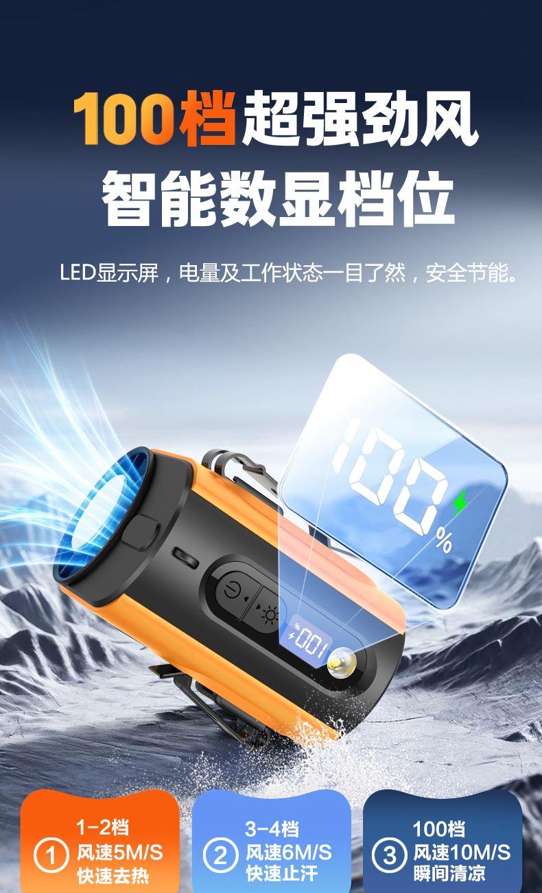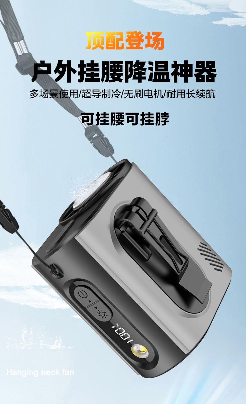 *半导体制冷冰敷降温,3600毫安 *智能数显,100档涡轮强劲动力 *桌面手持挂脖挂腰风扇,带照明灯