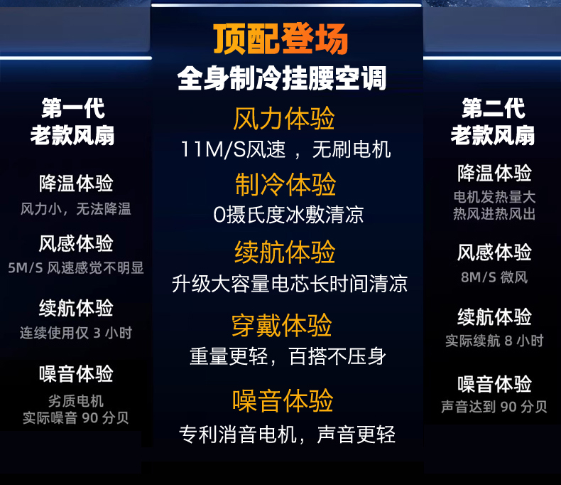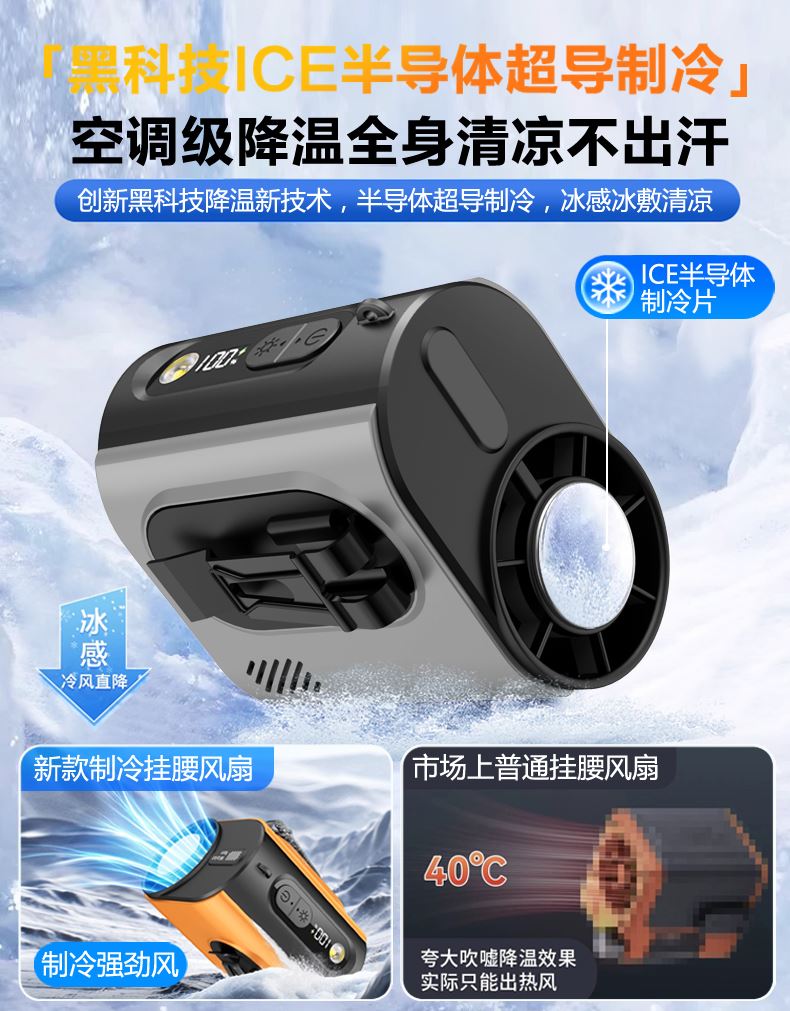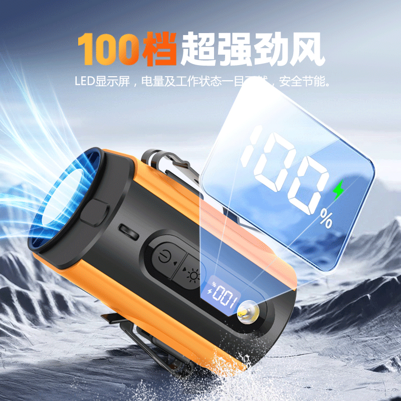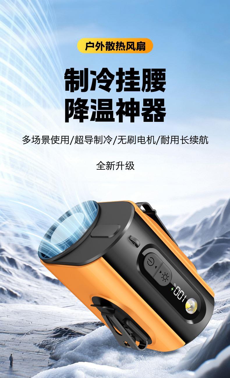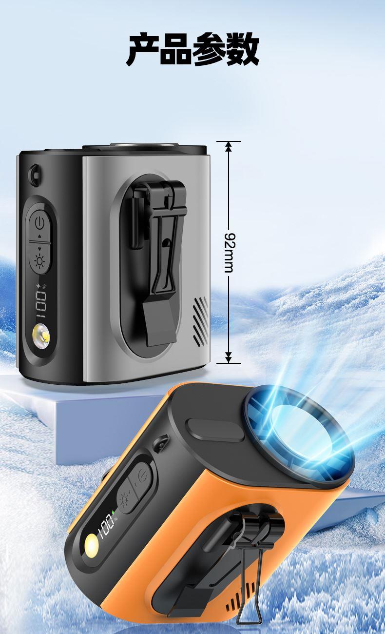 *半导体制冷冰敷降温,3600毫安 *智能数显,100档涡轮强劲动力 *桌面手持挂脖挂腰风扇,带照明灯