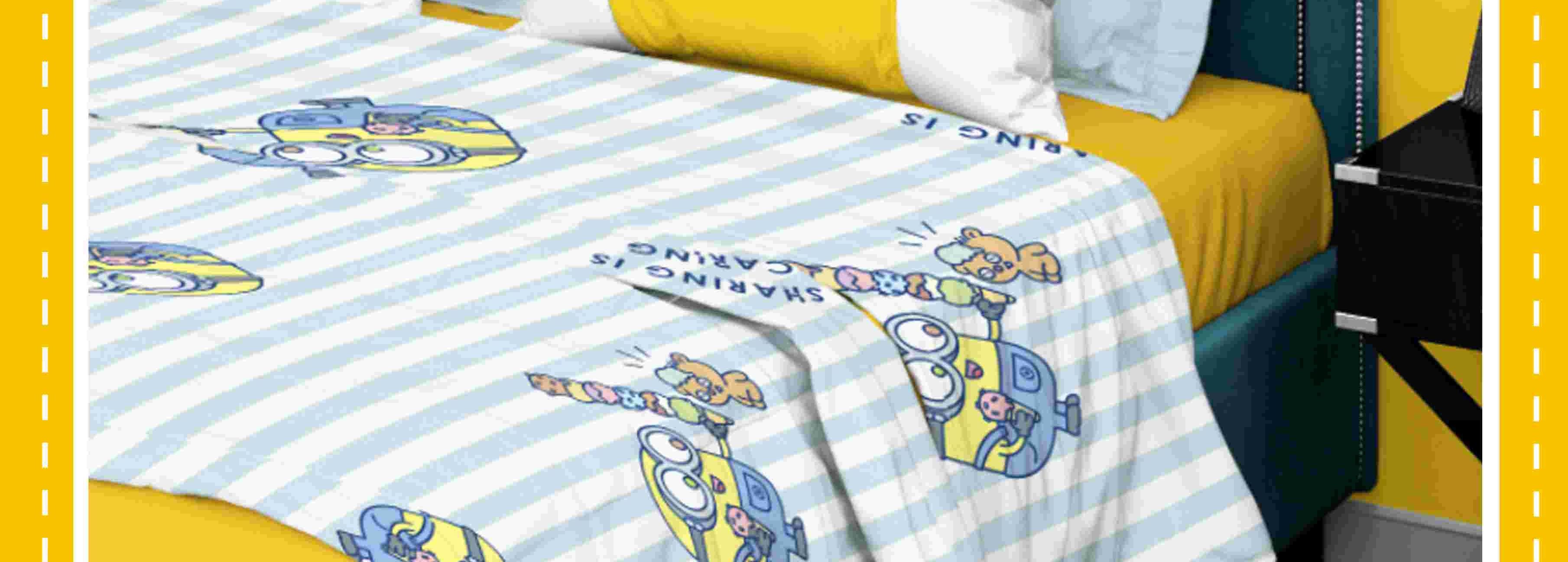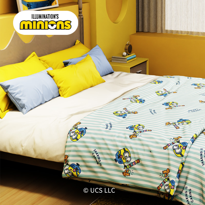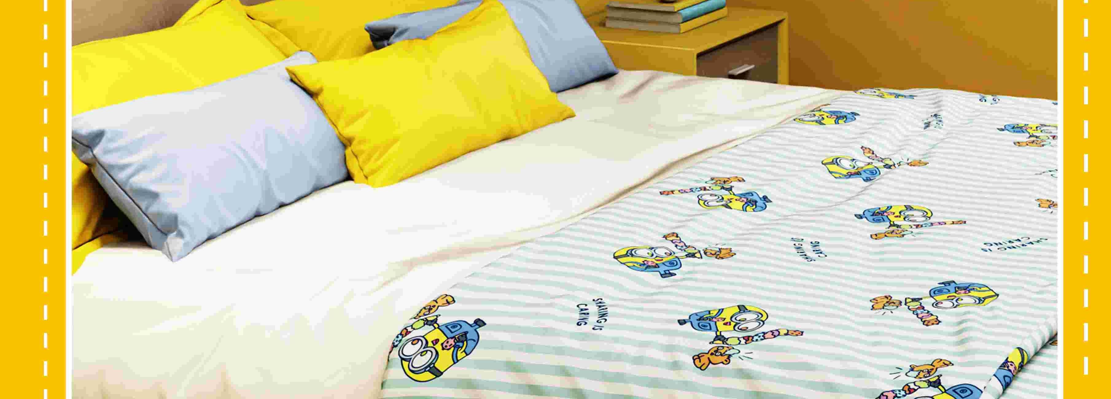 材 质:聚酯纤维 规格尺寸:150*200cm 配件明细:无纺布袋*1 吊牌*1 无纺布袋尺寸:450*350*100mm 产品净重:850g 产品毛重:930g 外箱尺寸:72*50*80cm 轻盈柔软,易于携带 当夏日的阳光变得炽热,小黄人双面夏凉被,将是你清凉入睡的好伙伴。 透气性好,能够迅速排出湿气,保持被窝内的干爽和舒适。 可直接水洗的面料和填充物,使得清洗和保养变得简单方便。