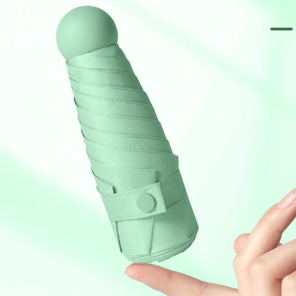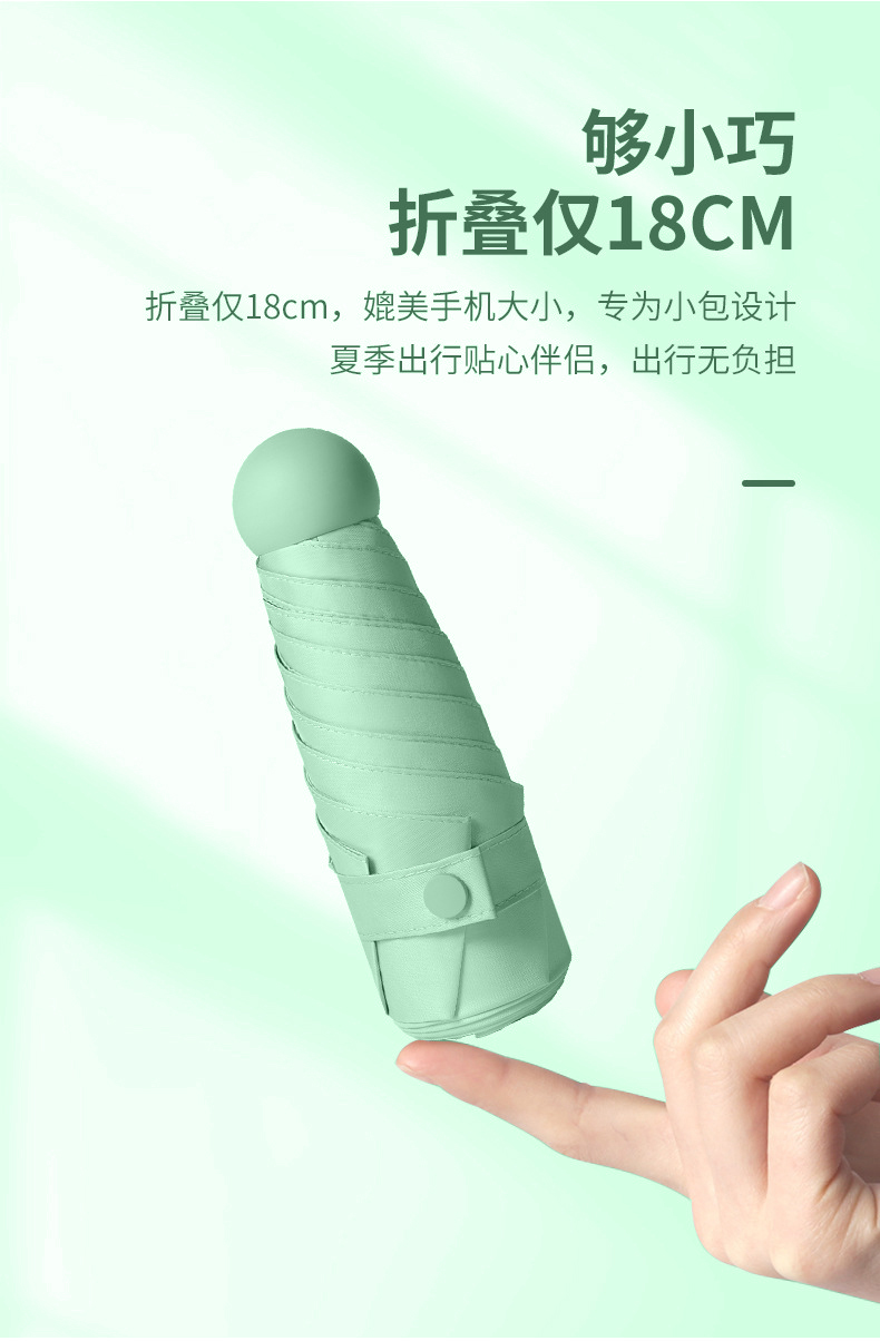 迷你便携防紫外线雨伞:21寸5折6骨,加厚6骨抗风伞架,伞内高密度纤维碰击黑胶布,防紫外线,高效隔热,冰凉降温,速干透气,小巧便携