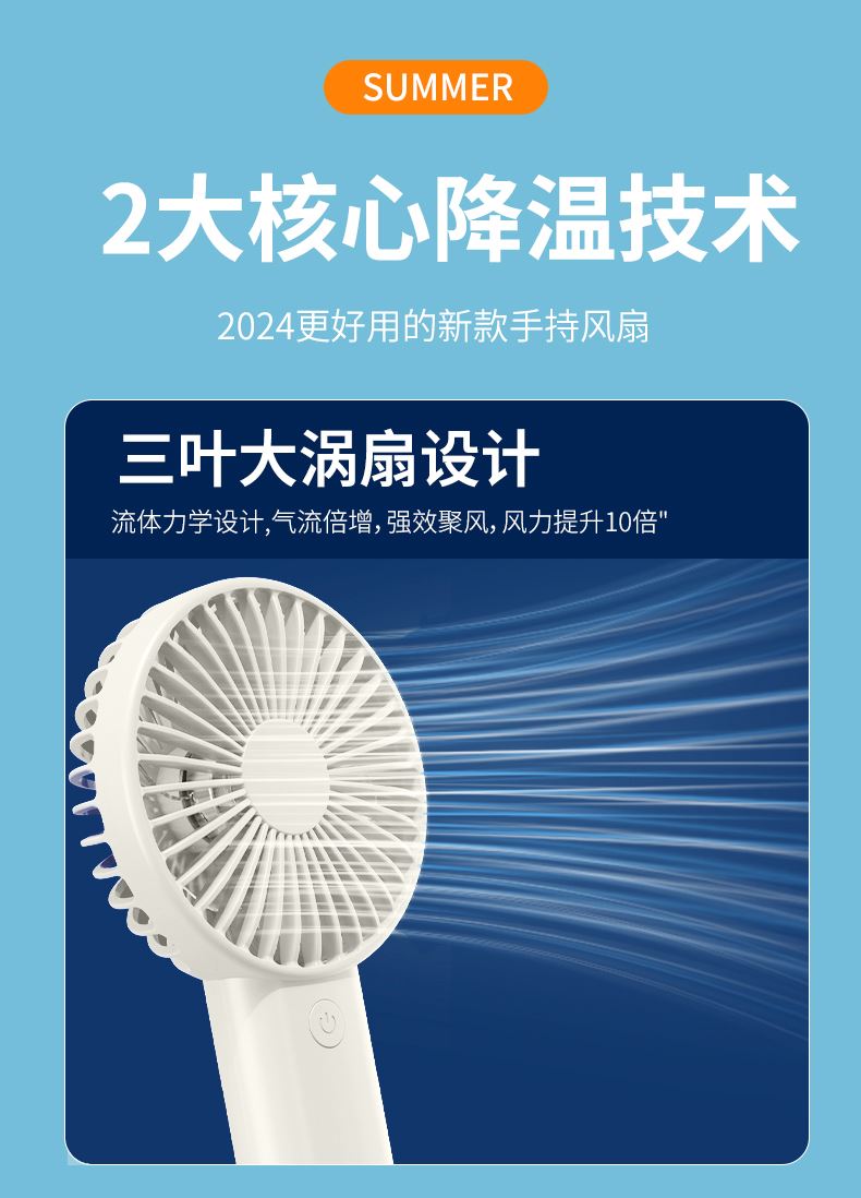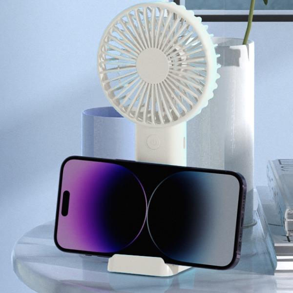 迷你手持风扇、三档调节,手机支架功能,内置1200mAh电池、草绿色,方便定制