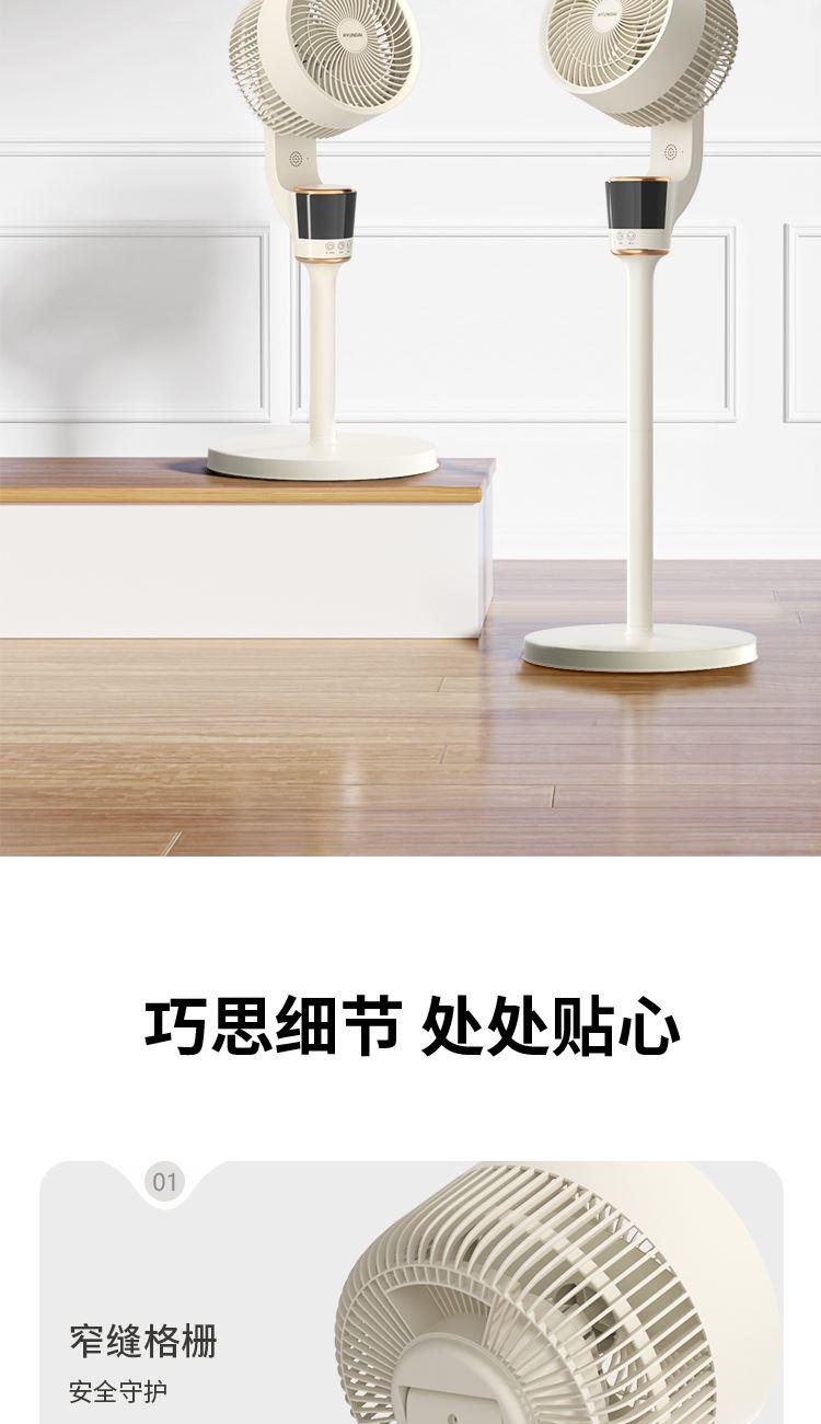 产品尺寸:330*330*1000mm 外箱尺寸:357*237*405mm 单台净重:2.33kg 单台毛重:2.9kg 操作模式:遥控+语音 69码:6975975071598 额定电压:220V~ 额定频率:50Hz 额定功率:30W 材质:PP+ABS 包装材料:邮购盒 > 多档风速设计, 节能降噪,满足不同清凉需求 > 一机拆两机,台地、台式随意切换 > 120°左右自动摇头,上下90°手动调节 > 高清触摸大屏,AI语音,声音指令轻松控制 > 轻音电机动力十足运转平稳 > 12小时定时,随心随用