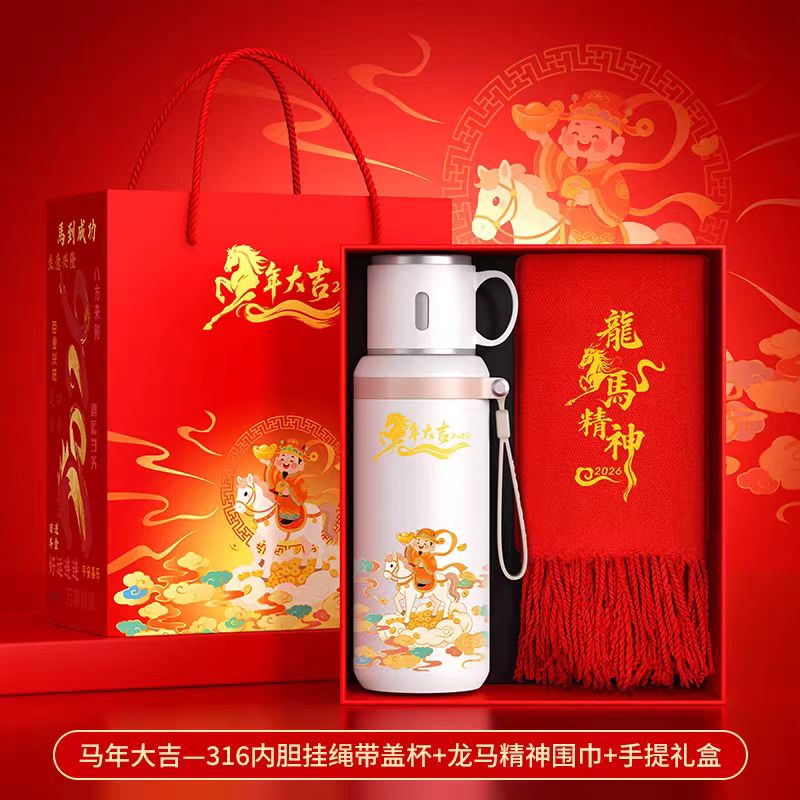 【产品配置】马年316小碗盖杯+围巾+手提盒 【产品型号】XWG-02 【产品颜色】 红色 白色 【包装尺寸】40*29.5*7.8cm(配套礼盒尺寸)